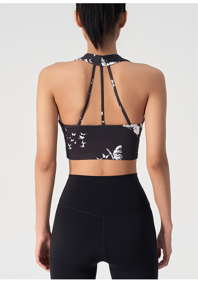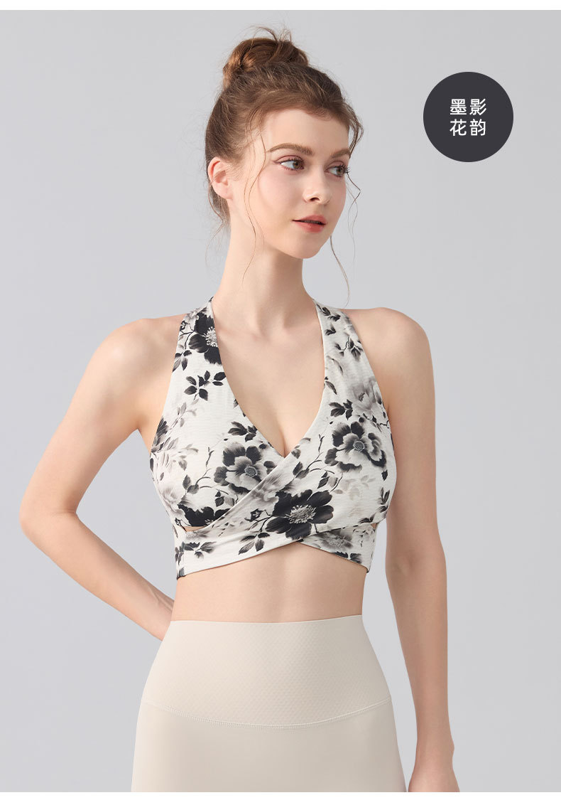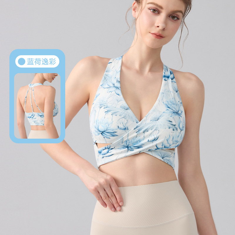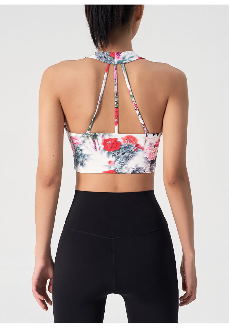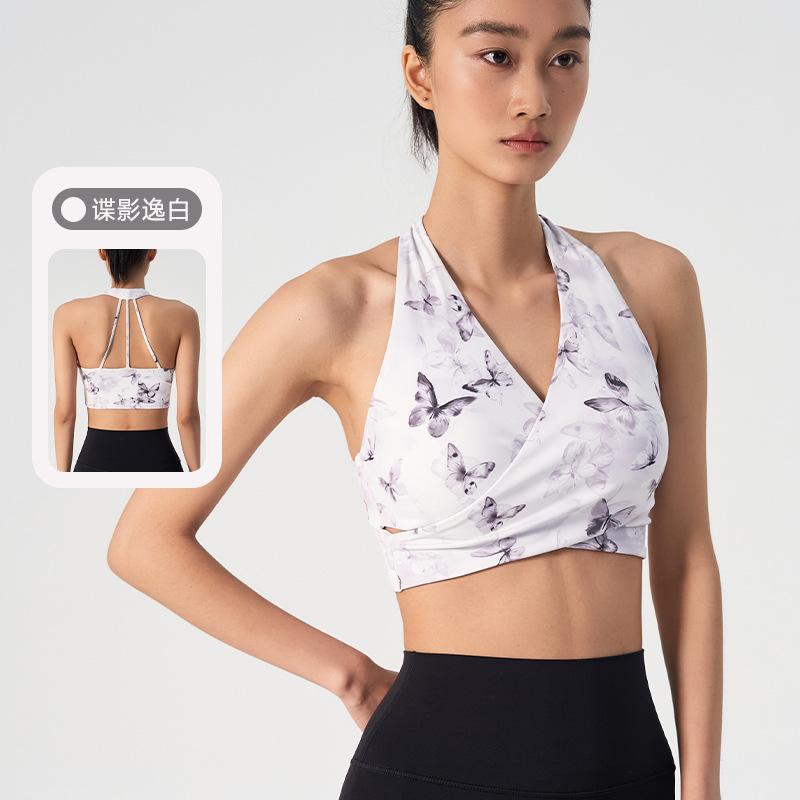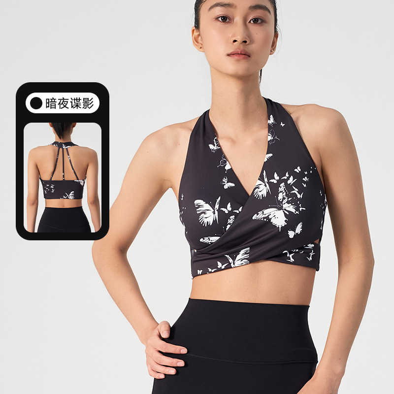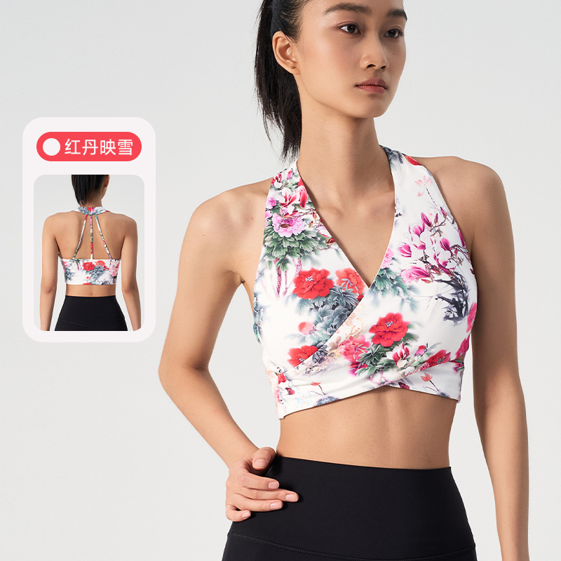 새로운 인쇄 스포츠 속옷 여성의 우아한 패션 요가 의류 교수형 목 뷰티 백 조끼 탑 외부 착용 피트니스 브래지어