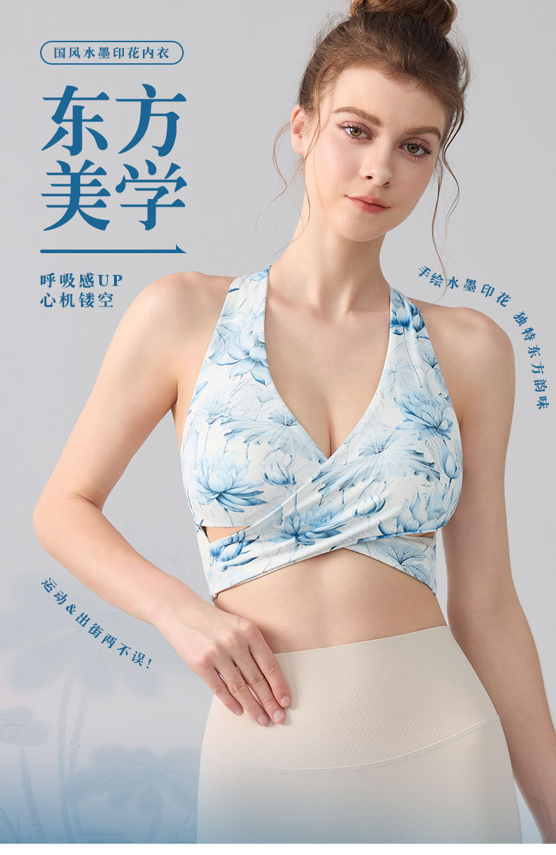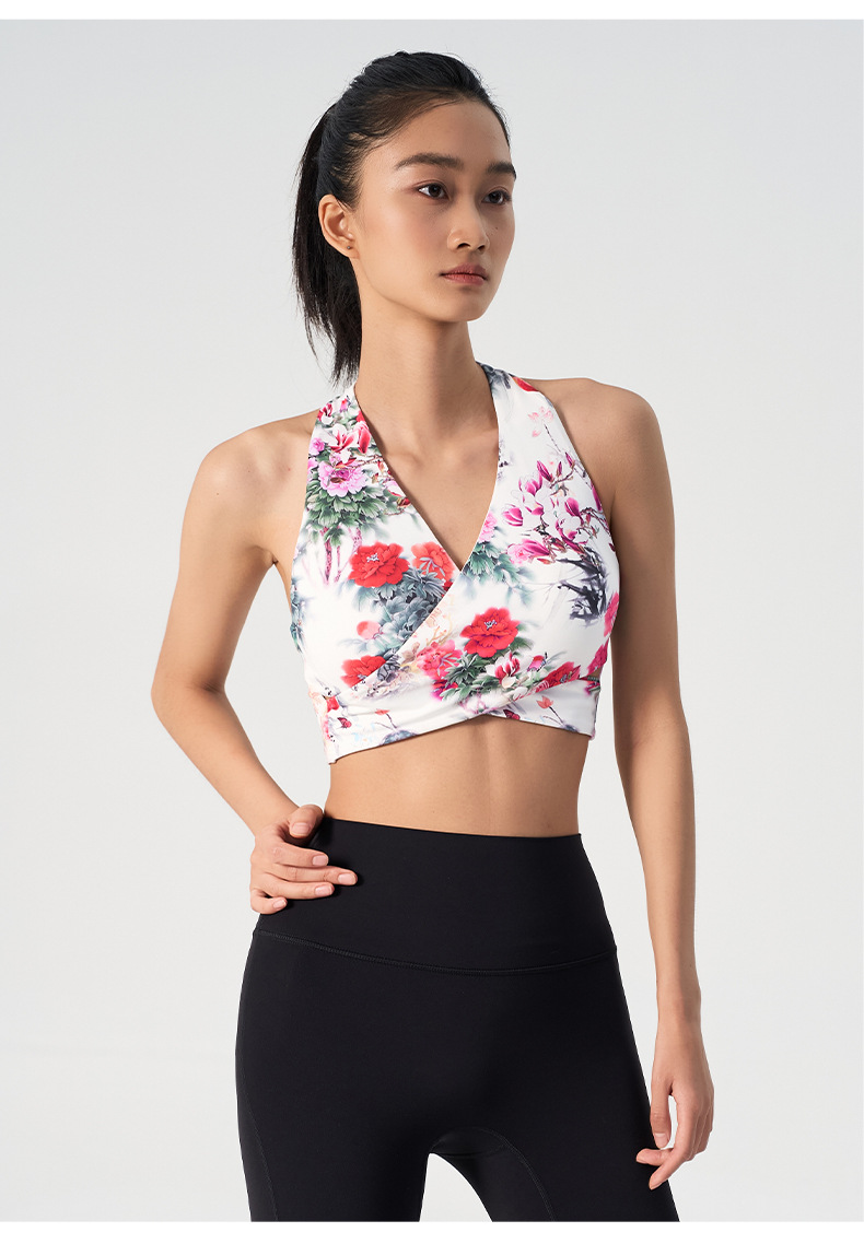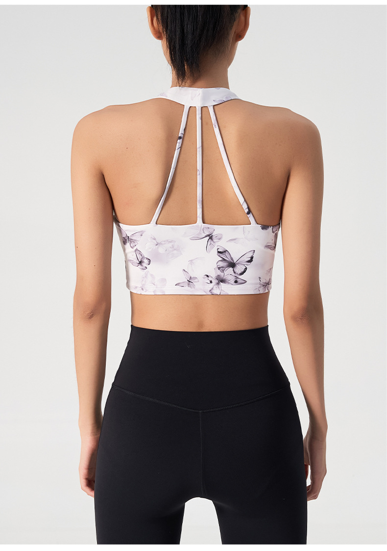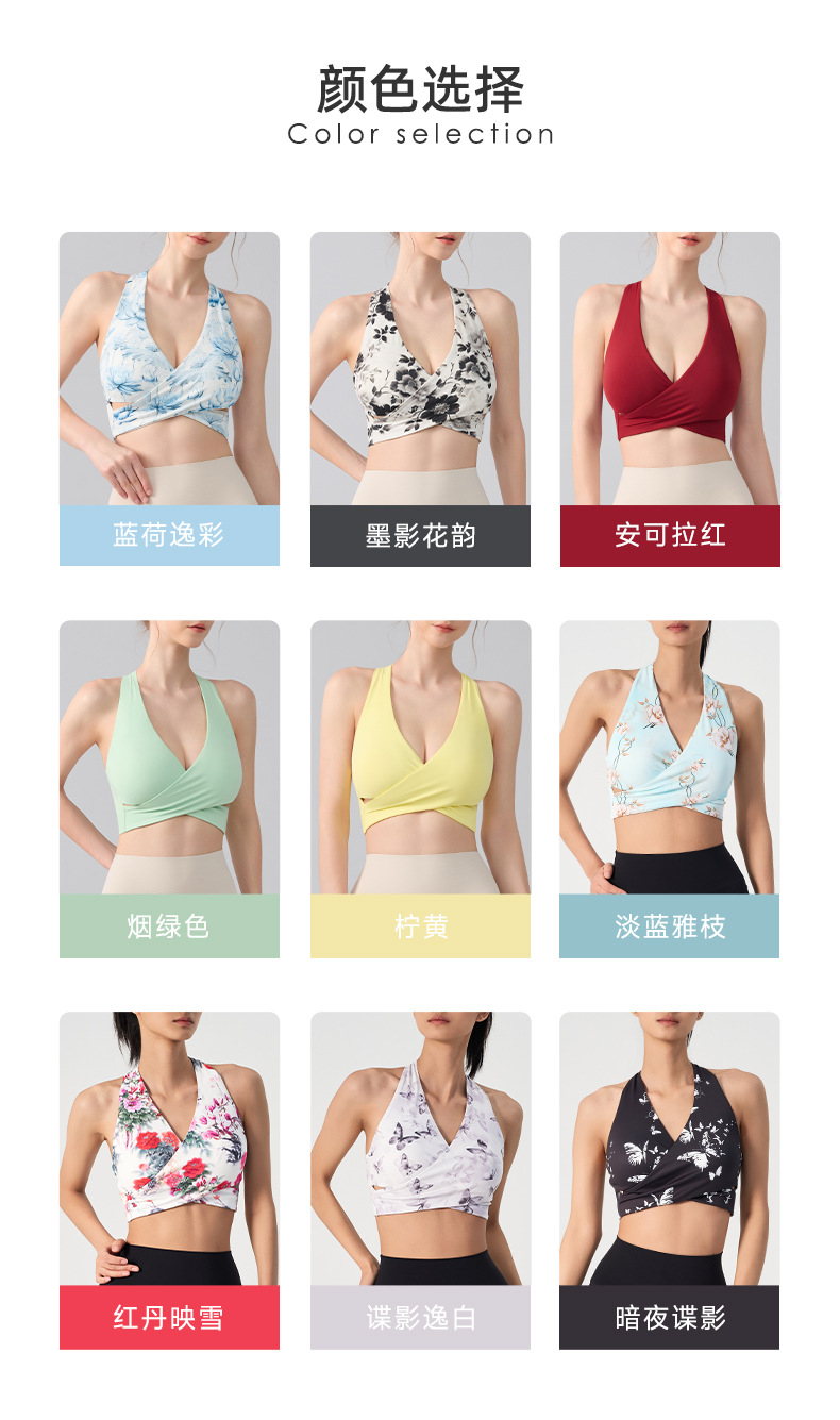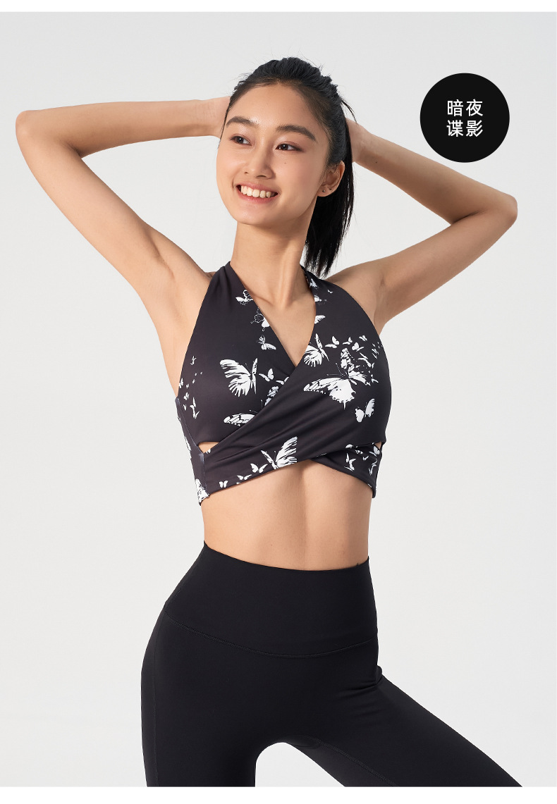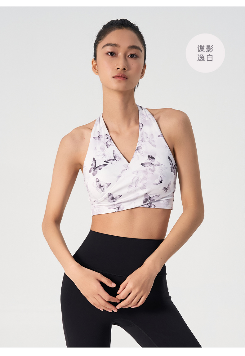 새로운 인쇄 스포츠 속옷 여성의 우아한 패션 요가 의류 교수형 목 뷰티 백 조끼 탑 외부 착용 피트니스 브래지어