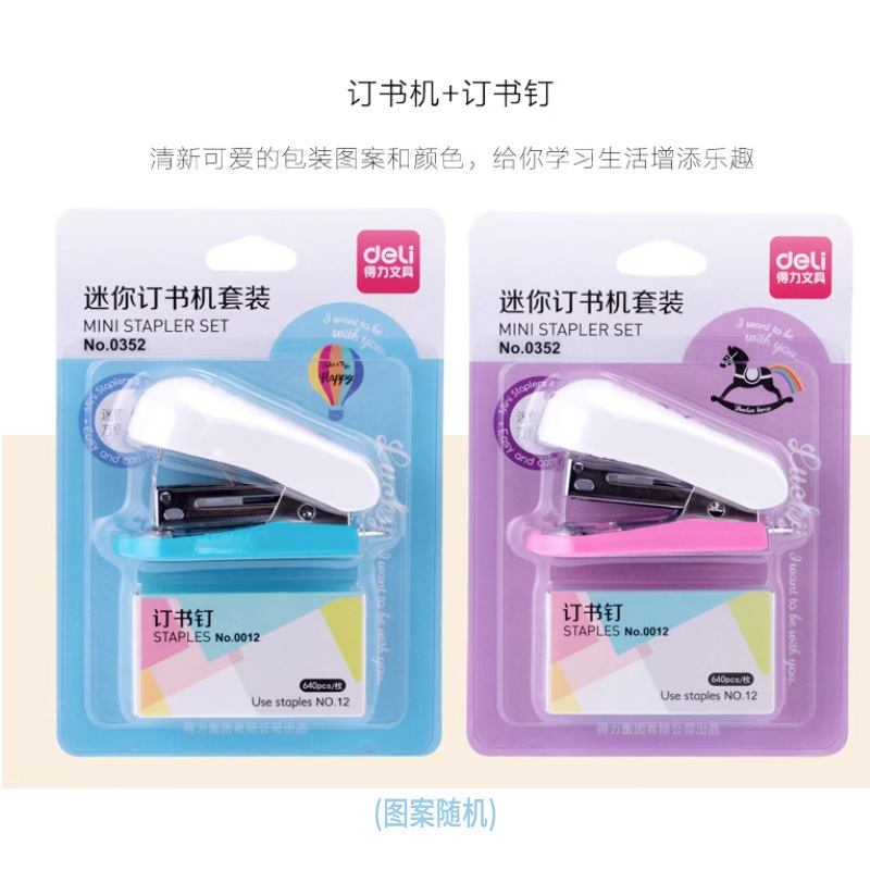 델리 스테이플러 미니 컬러풀 패션 세트 학생용 소형 스테이플러 스테이플 포함 휴대용 스테이플러 배치