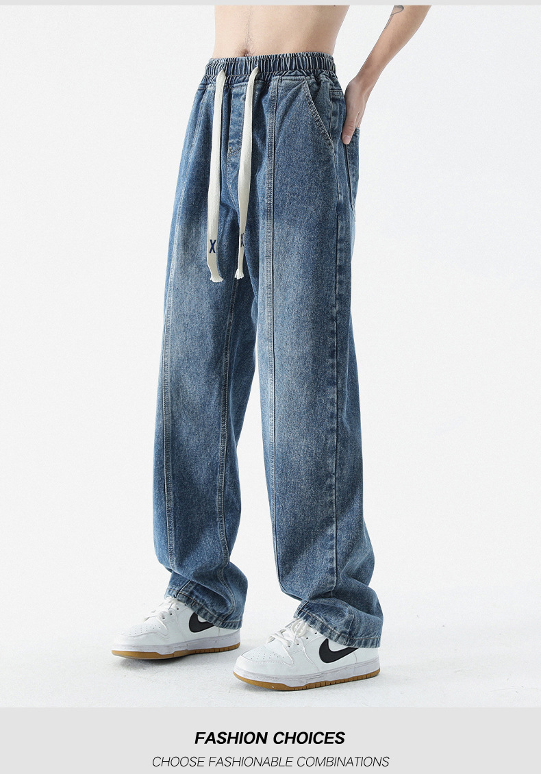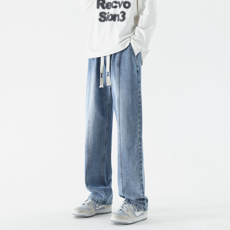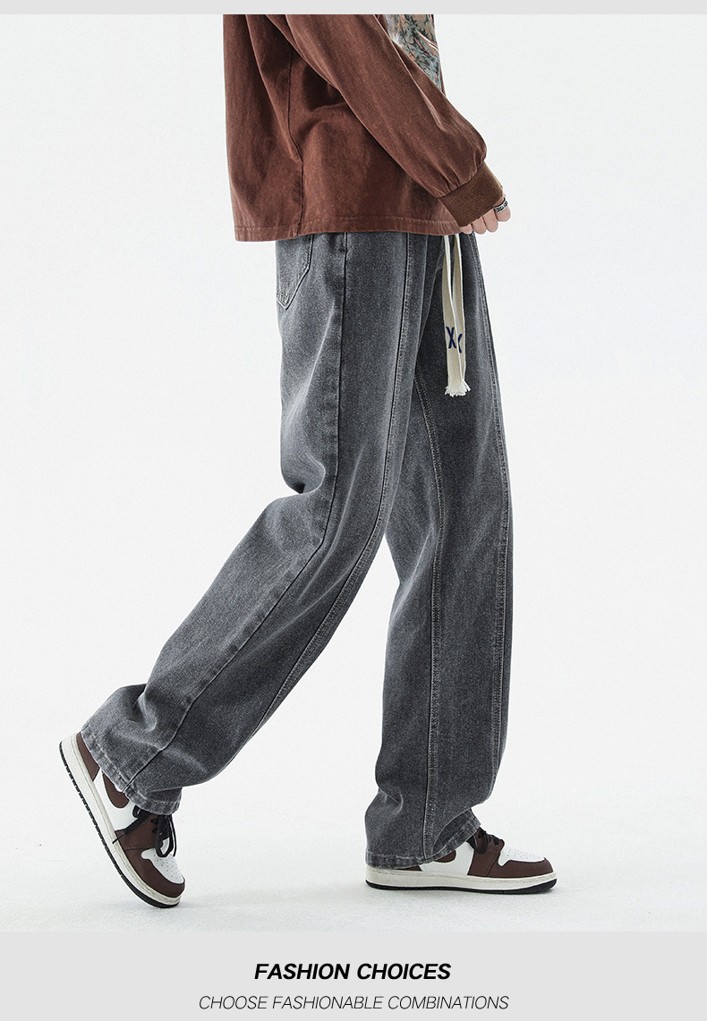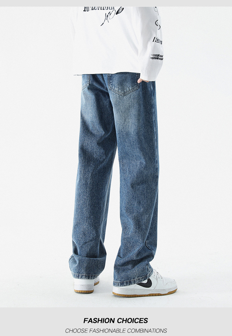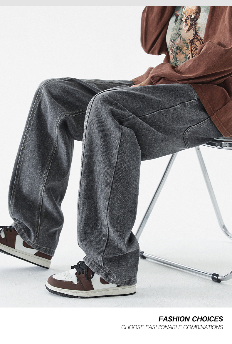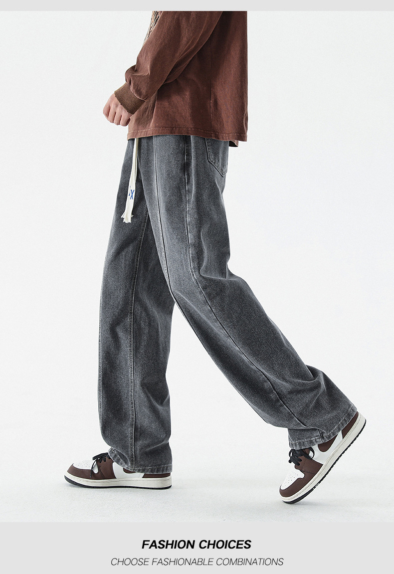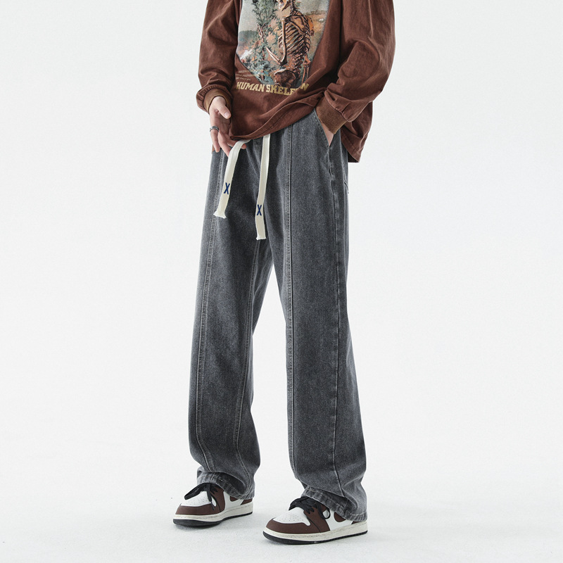 남성 봄, 가을 새로운 루즈 스트레이트 청바지 남성 아메리칸 하이 스트리트 패션 브랜드 남성용 와이드 레그 캐주얼 롱 팬츠스토어 가기