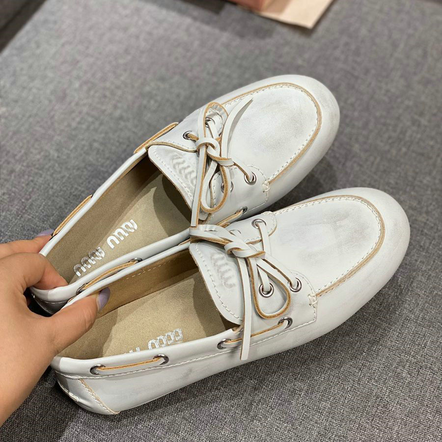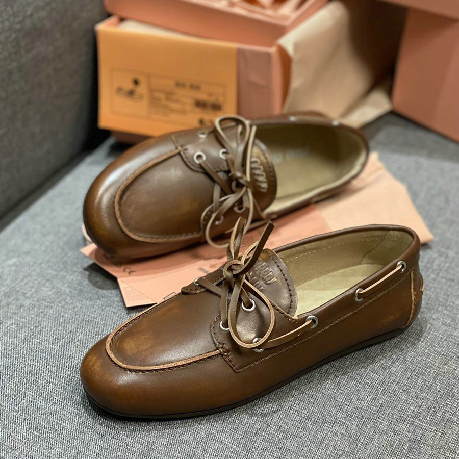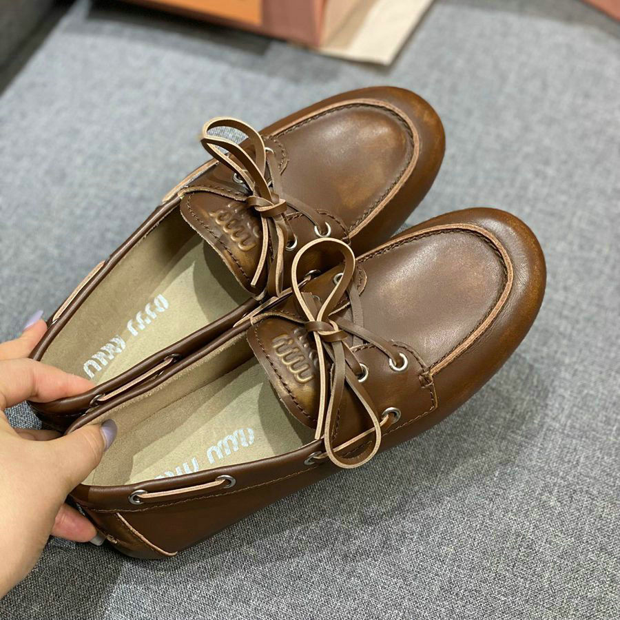 Miaojia 25 봄 여름 새로운 스타일의 오래된 가죽 레이스 업 라운드 발가락 플랫 작은 가죽 신발 여성의 편안한 복고풍 로퍼스토어 가기