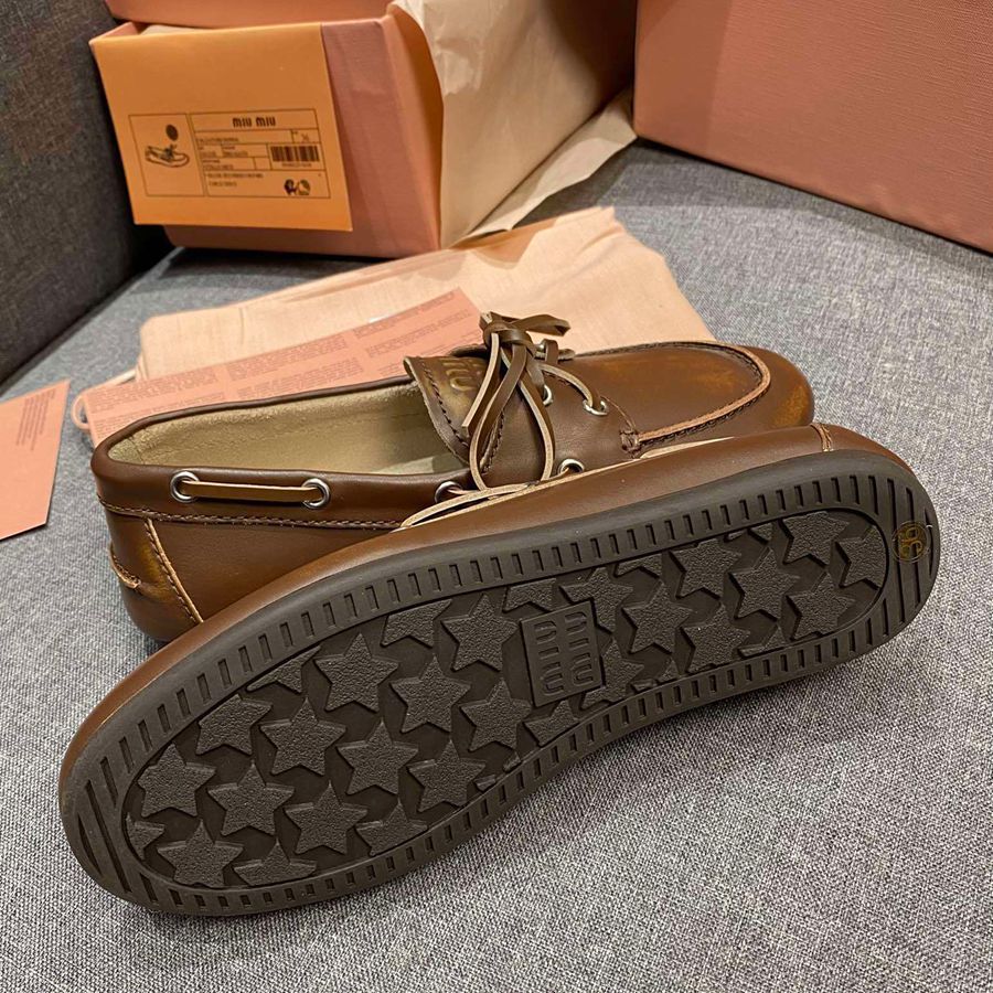 Miaojia 25 봄 여름 새로운 스타일의 오래된 가죽 레이스 업 라운드 발가락 플랫 작은 가죽 신발 여성의 편안한 복고풍 로퍼