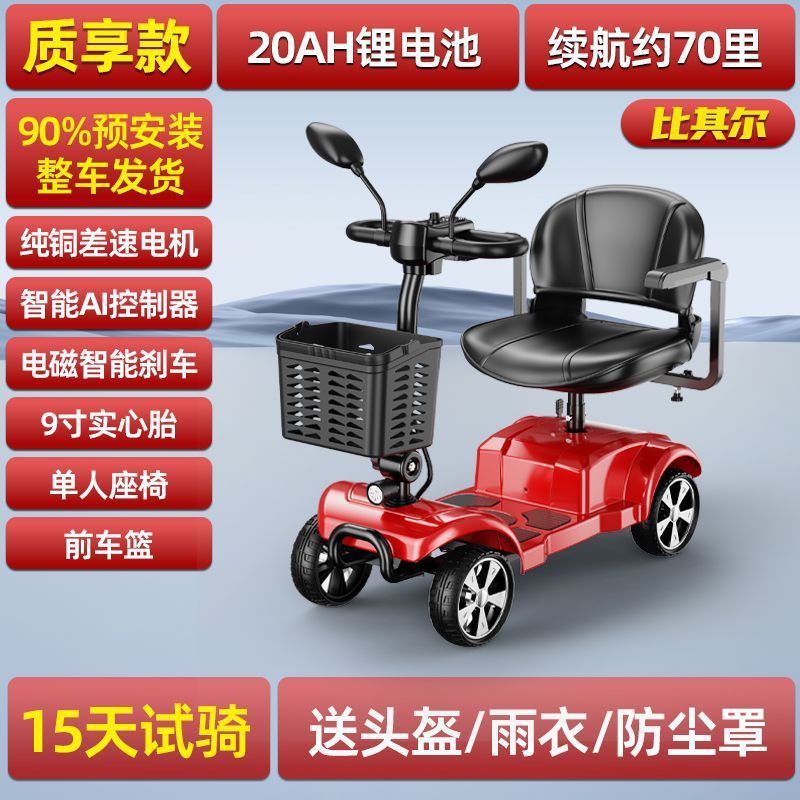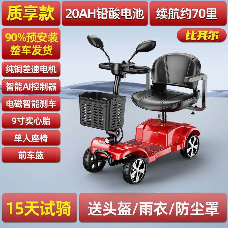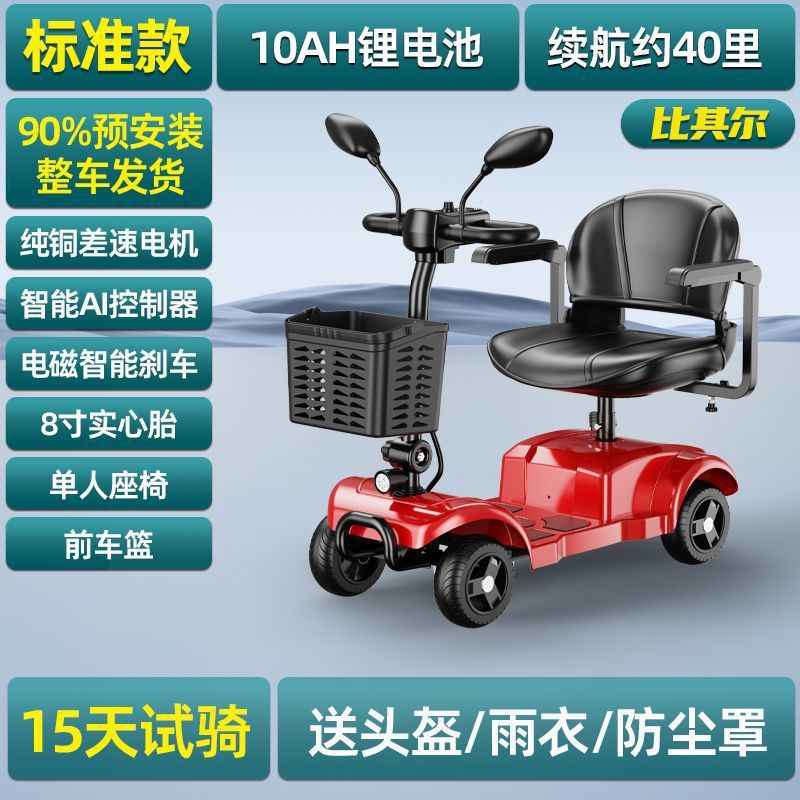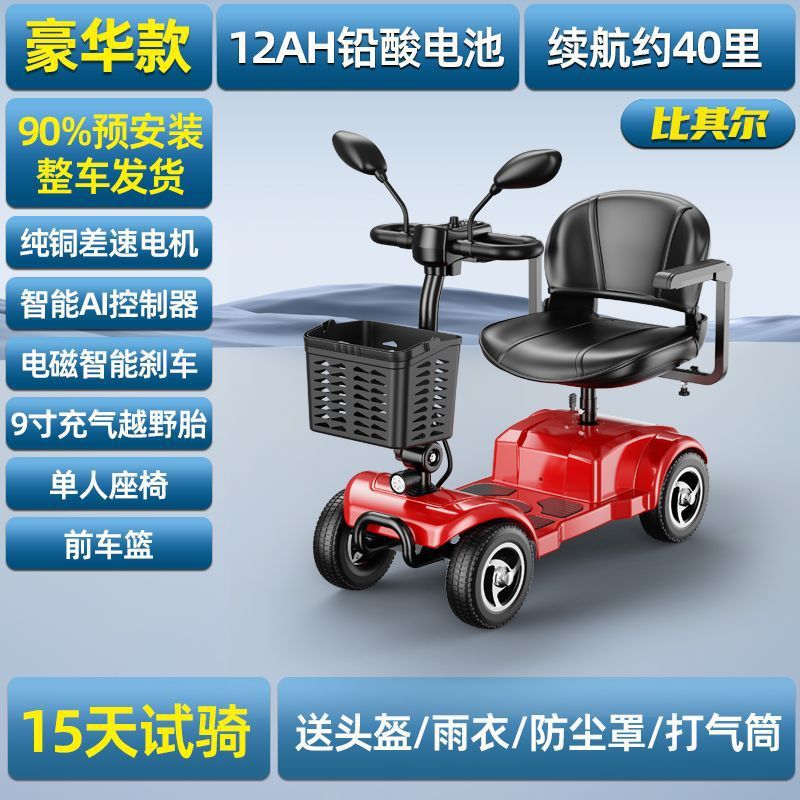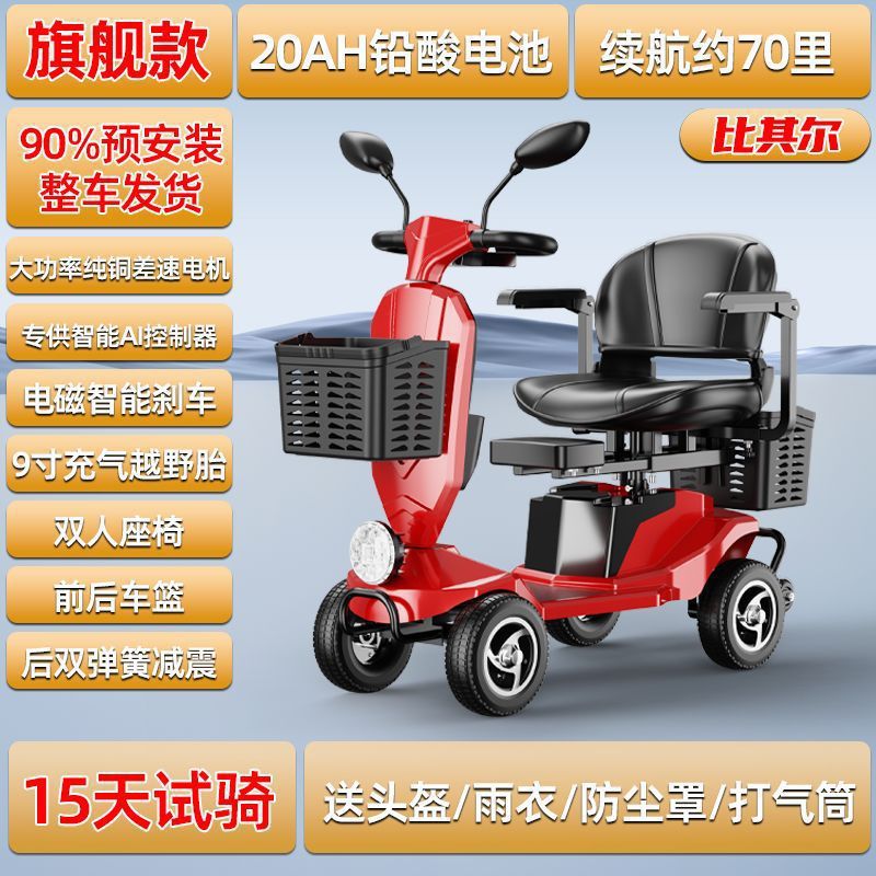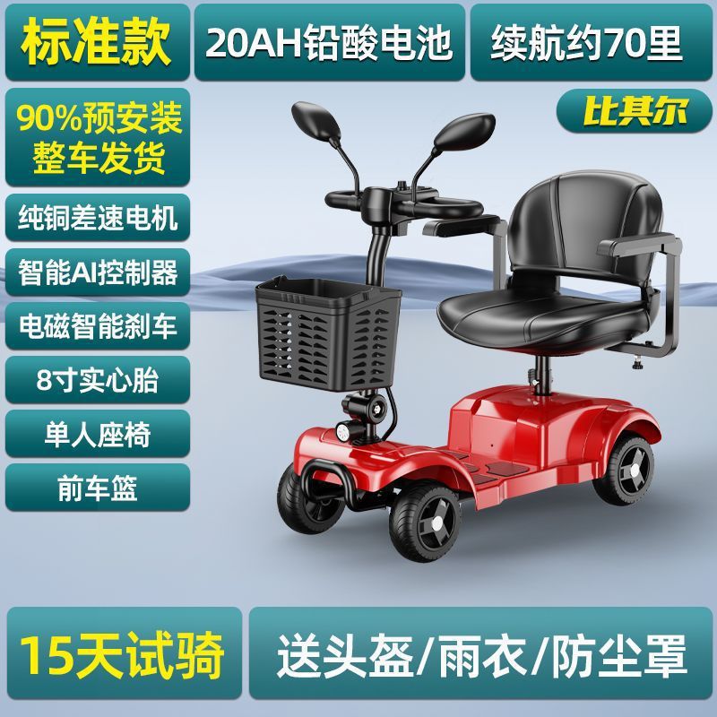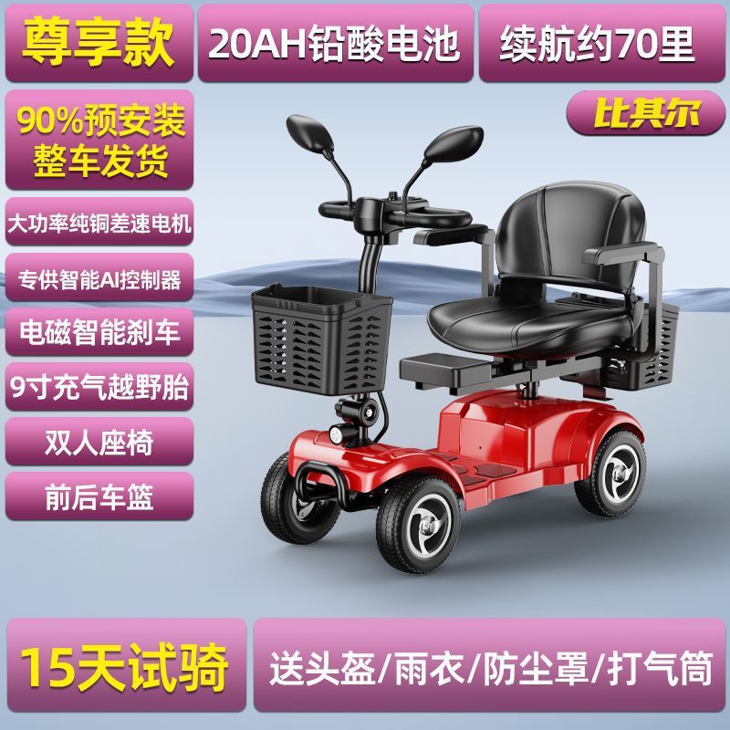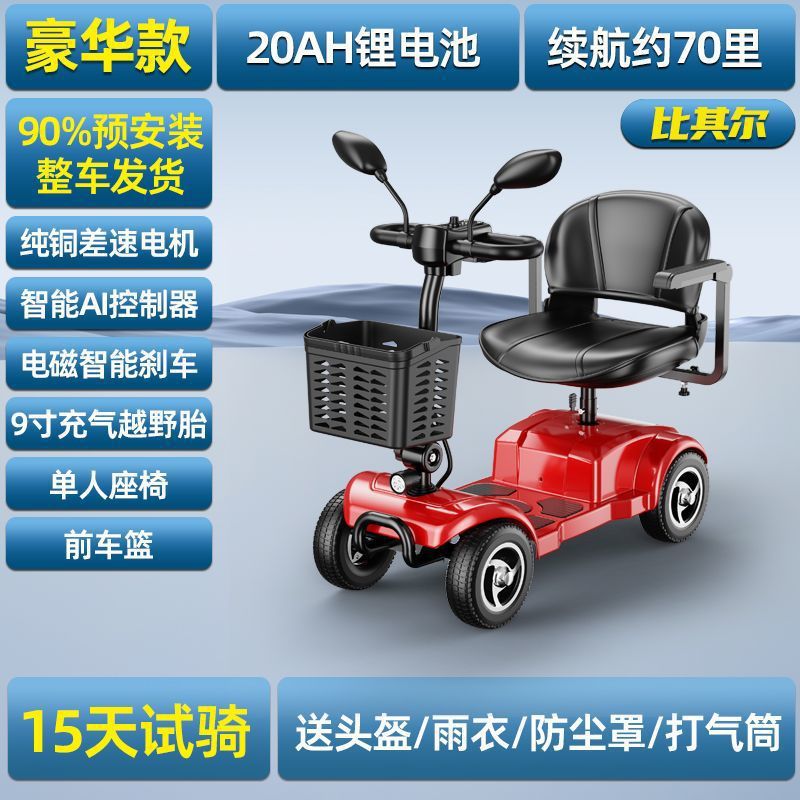 두 배 노인 장애인 저속 스쿠터 4 륜 전기 홈 오토바이 노인 접이식 소형 배터리 자동차