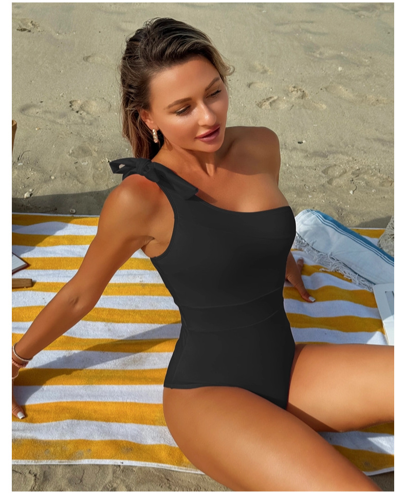유럽과 미국의 대외 무역 새로운 섹시한 원피스 솔리드 컬러 수영복 여성 원 숄더 수영복 아마존 크로스 보더 비키니 비키니