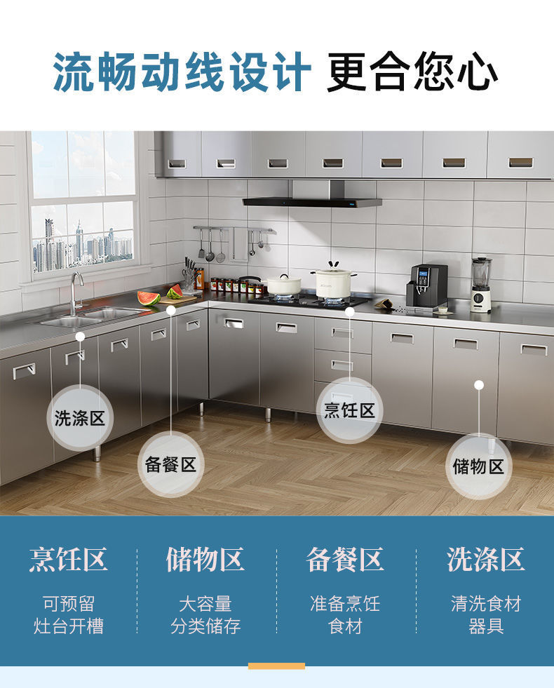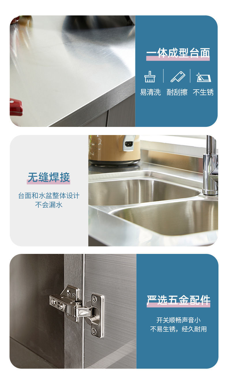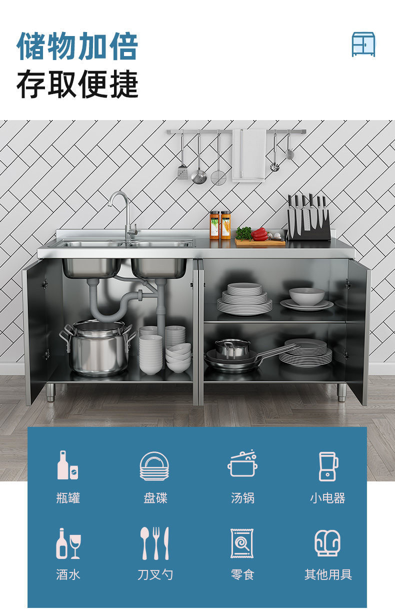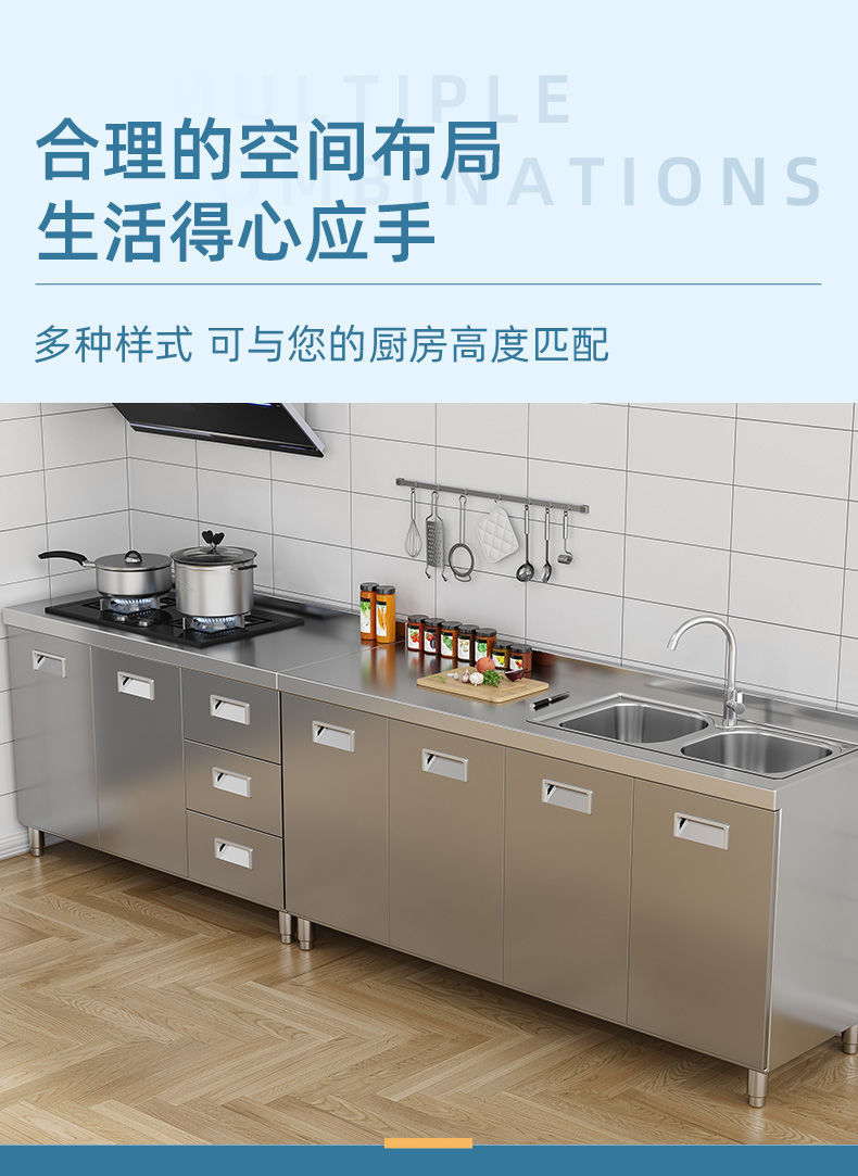 304 일체형 스테인레스 스틸 주방 캐비닛 간단한 스토브 일체형 농촌 보관 보관 찬장 가정용 소형 아파트
