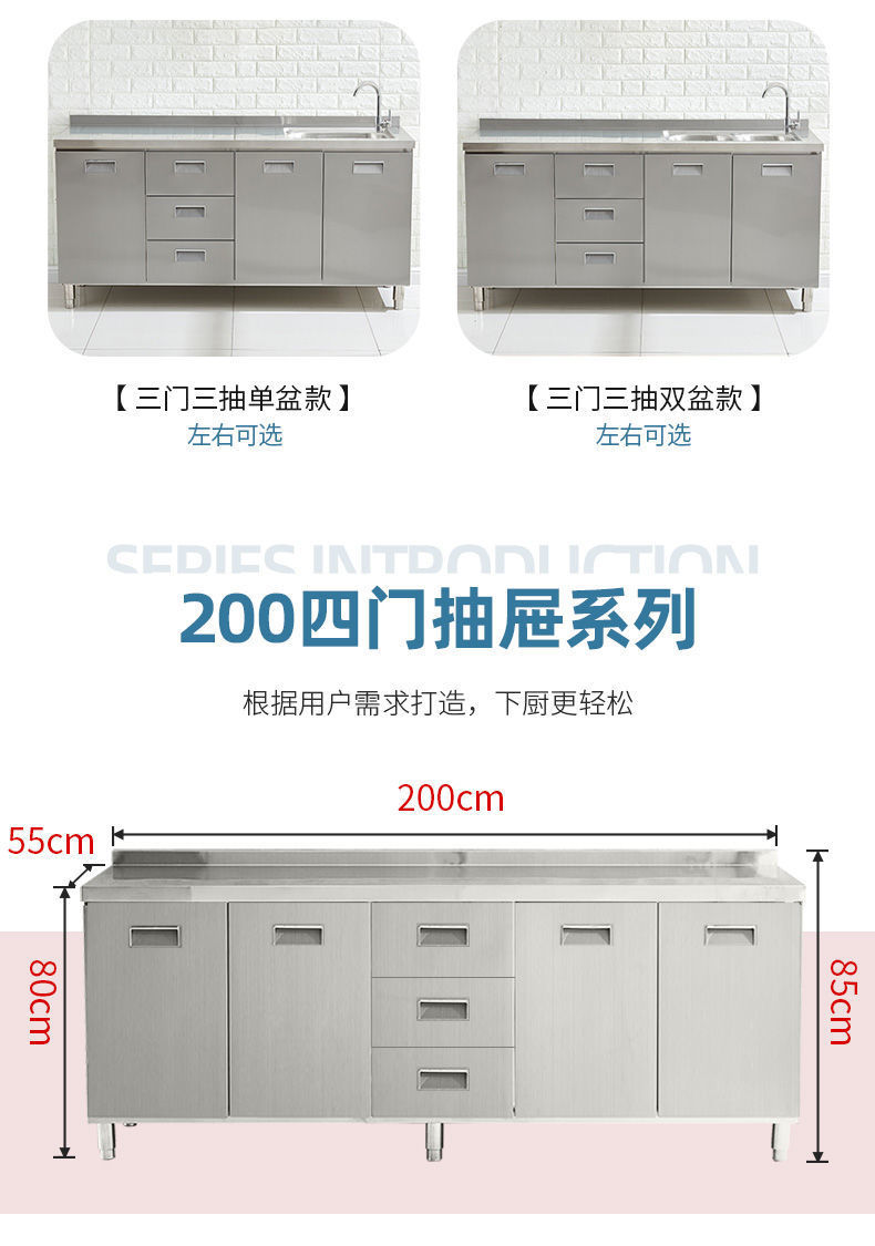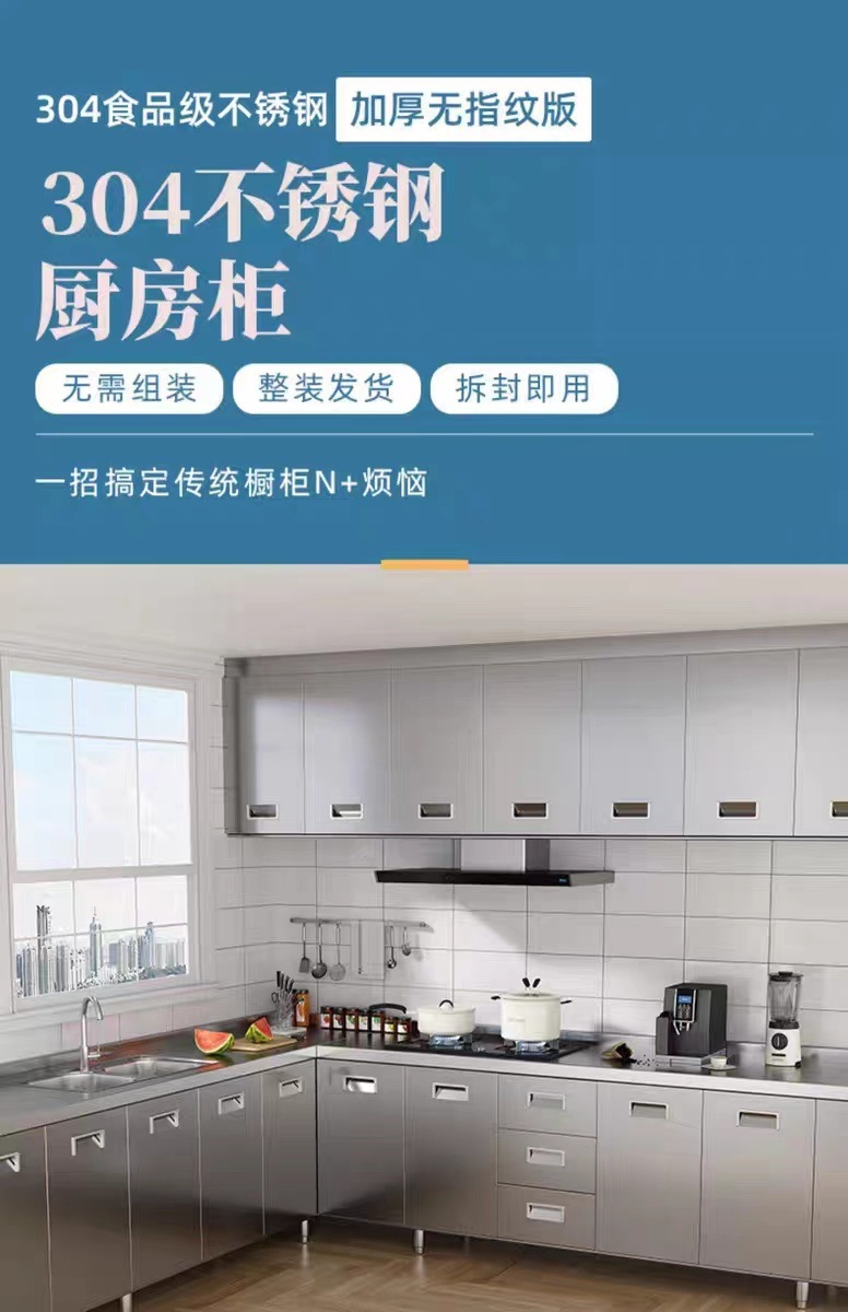 304 일체형 스테인레스 스틸 주방 캐비닛 간단한 스토브 일체형 농촌 보관 보관 찬장 가정용 소형 아파트스토어 가기