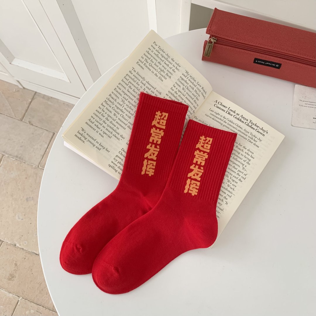 25년간의 대학 입시 종아리 양말, 여름용 얇은 남녀 공용 양말, 캐주얼 특별 발휘 금상패 레드 양말