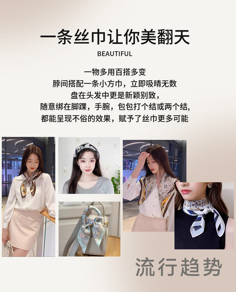 2025 새로운 작은 사각형 스카프 여성 봄과 여름 다목적 100% 뽕나무 실크 스카프 실크 스카프 장식 넥 스카프