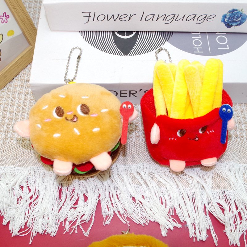 만화 재미 봉제 버거 프라이 인형 작은 펜던트 수제 DIY 가방 키 체인 인형 매달려 장식품 도매스토어 가기