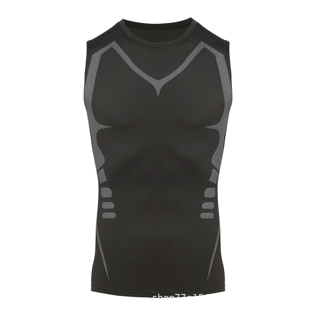 유럽과 미국의 아마존 속건성 조끼 압축 꽉 탄성 바디 쉐이핑 스포츠 피트니스웨어 훈련 농구 피트니스 바디 쉐이핑
