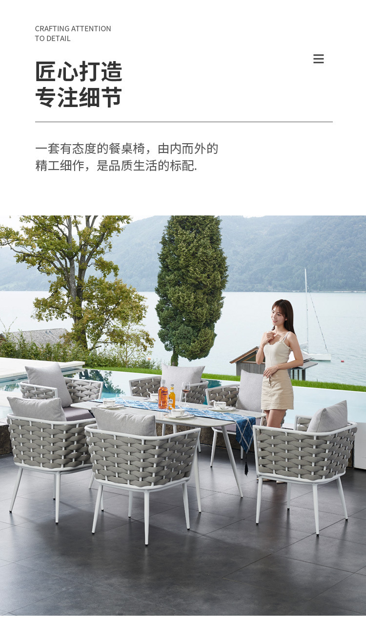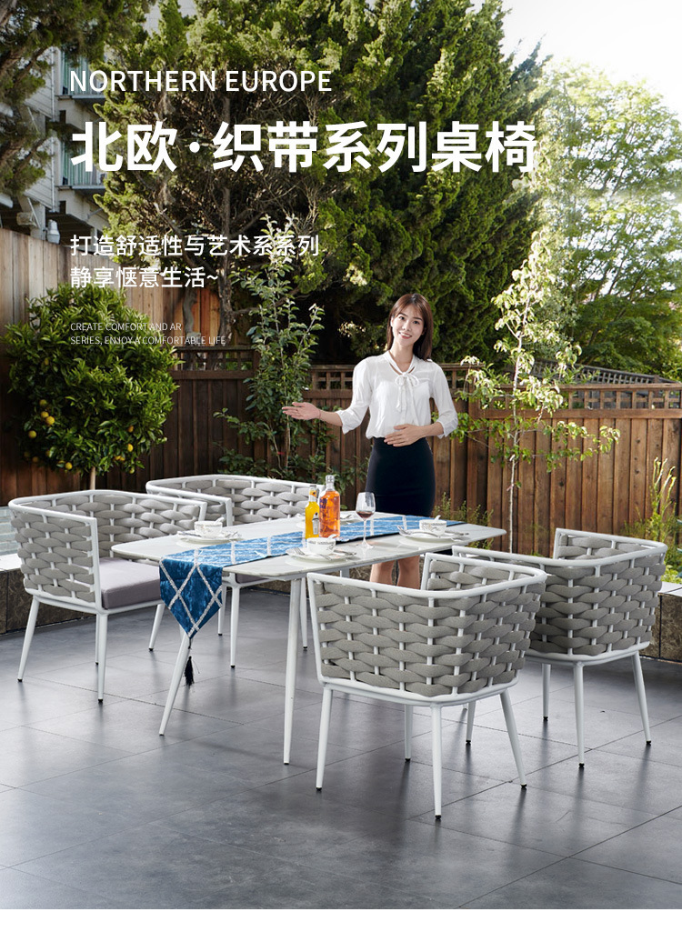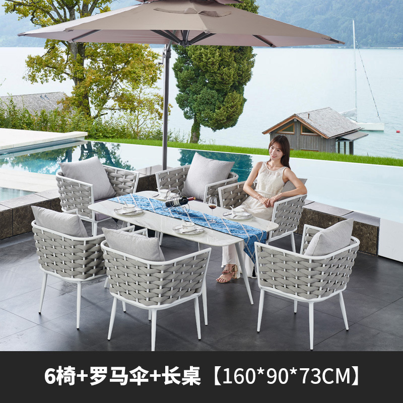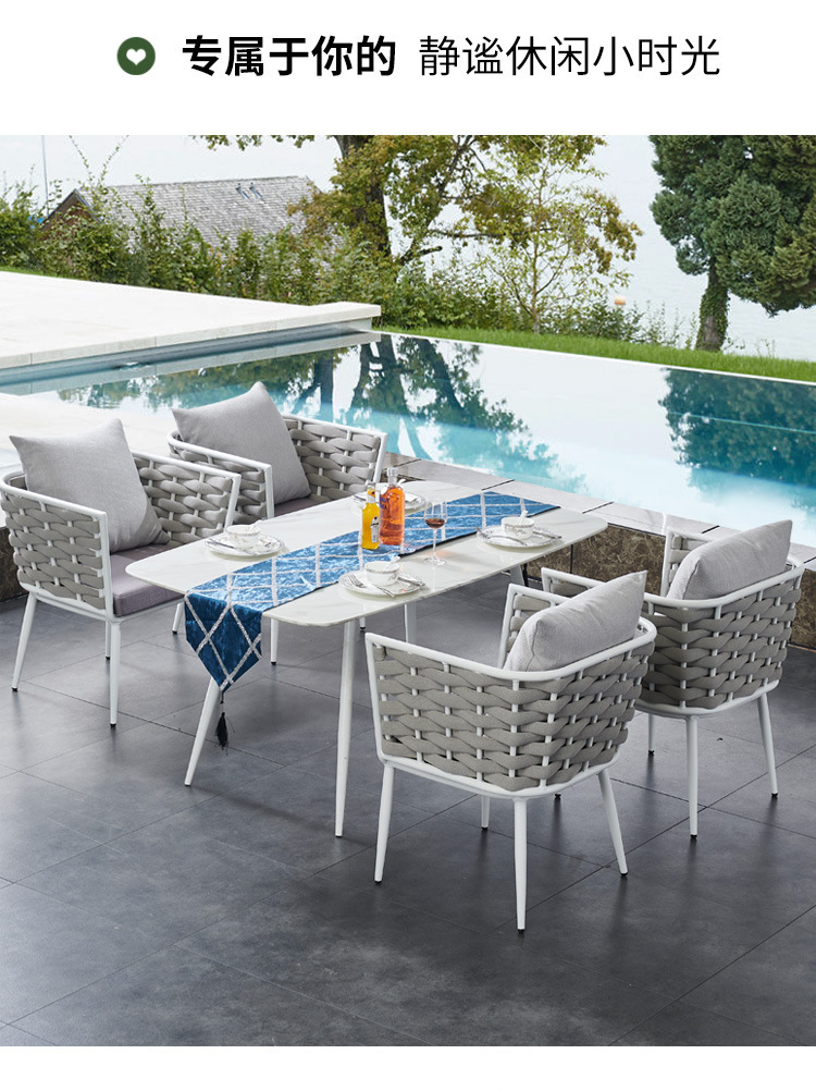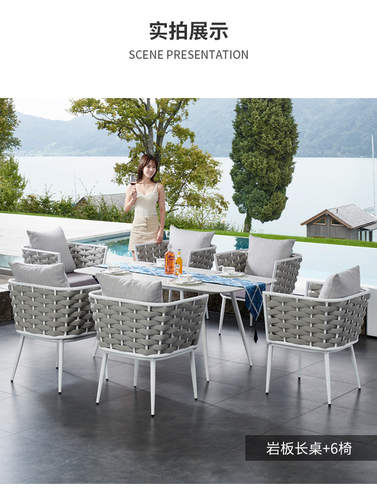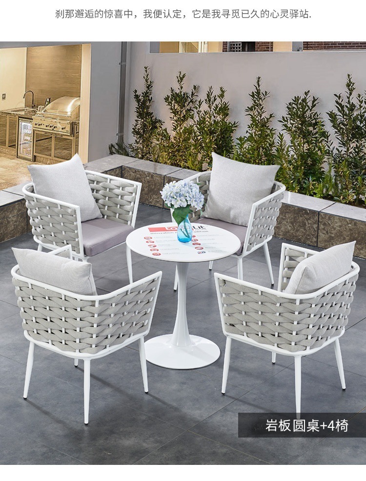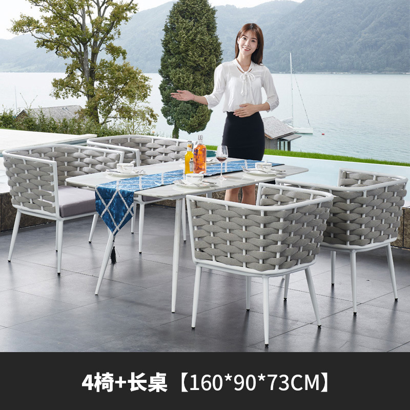 야외 빌라 로프 테이블과 의자 조합 야외 발코니 레저 야외 안뜰 방수 석판 대리석 식탁과 의자