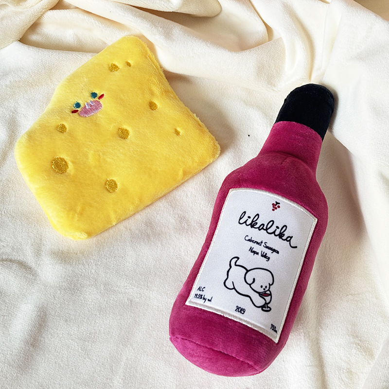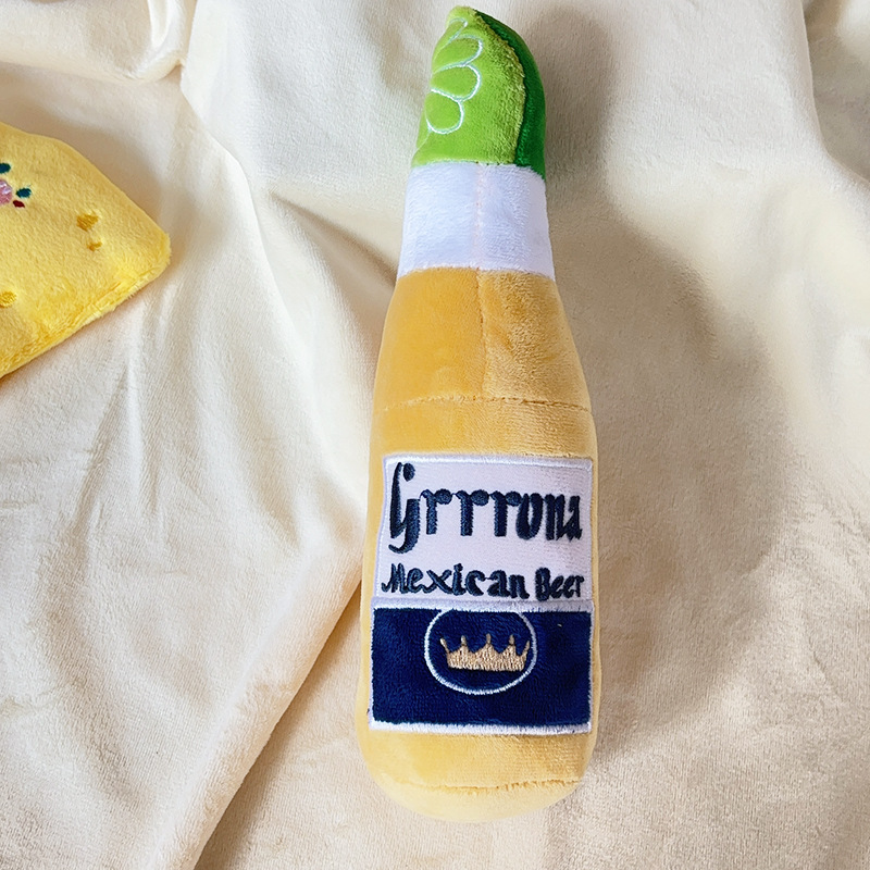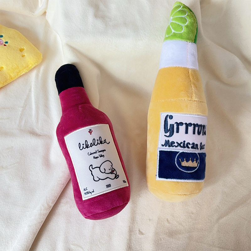 한국에서 가장 잘 팔리는 애완 동물 장난감 와인 병 플러시 장난감 소리와 어금니 재미있는 개 장난감 레드 와인 병