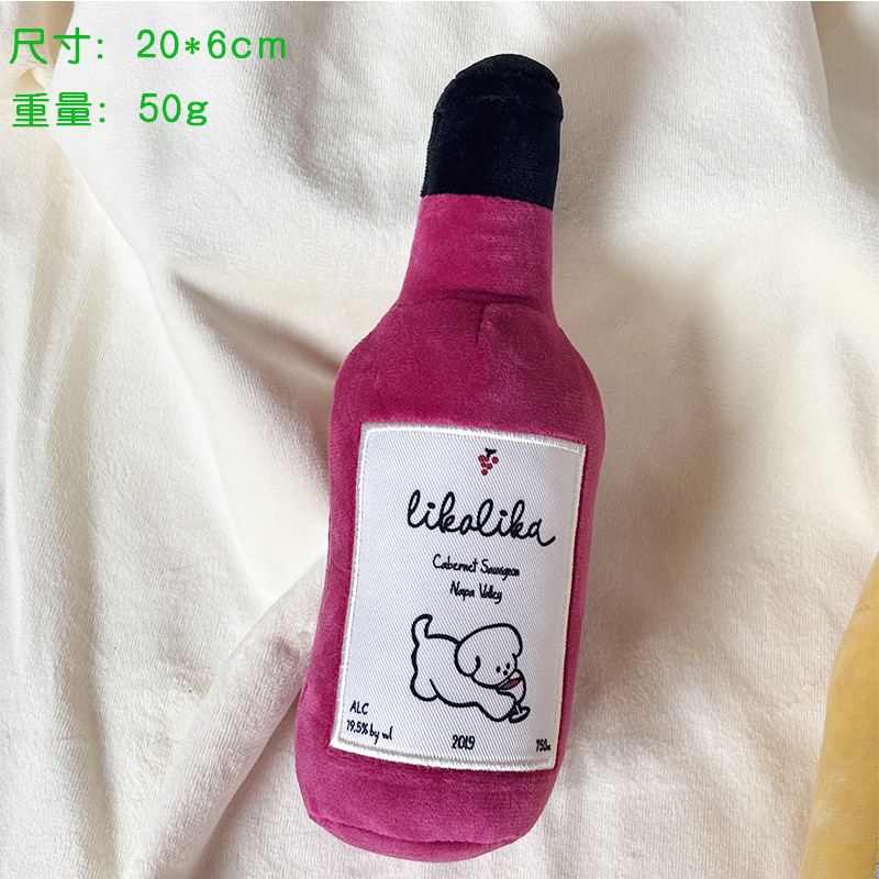 한국에서 가장 잘 팔리는 애완 동물 장난감 와인 병 플러시 장난감 소리와 어금니 재미있는 개 장난감 레드 와인 병스토어 가기