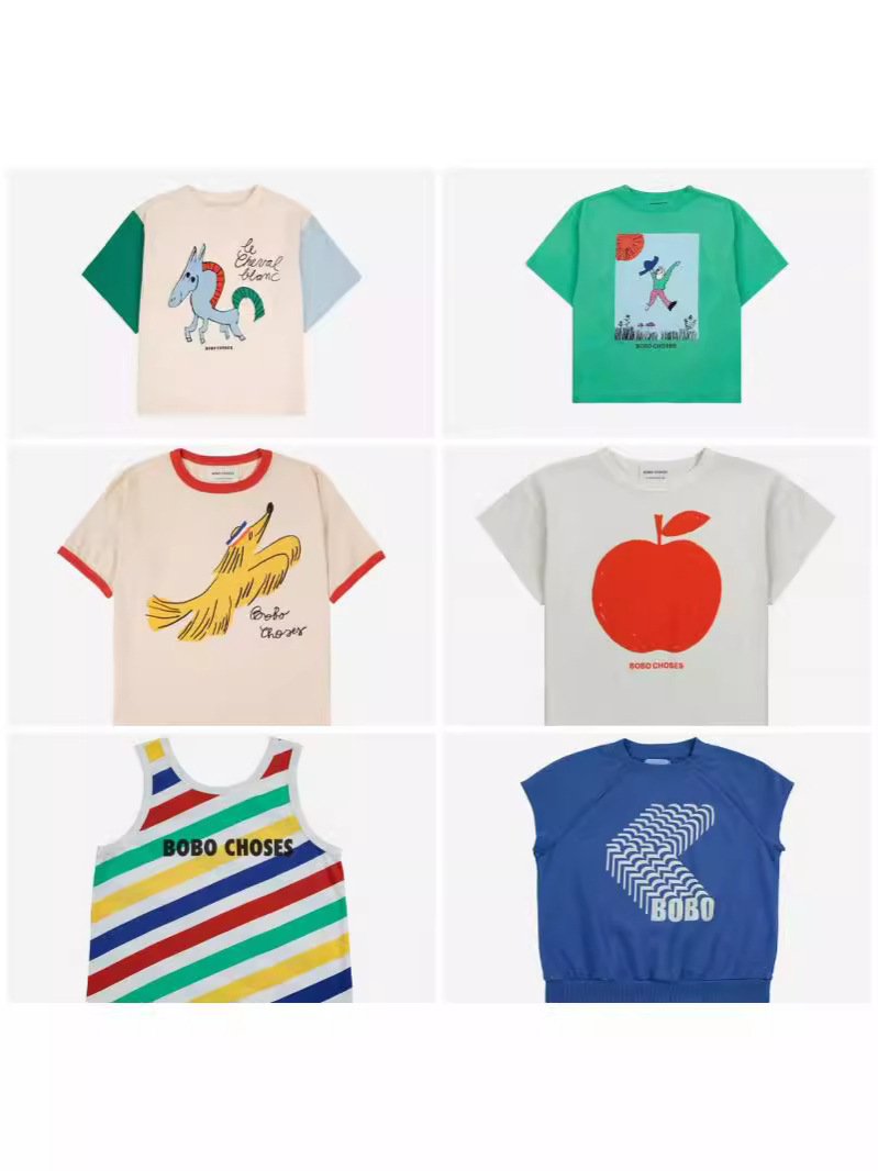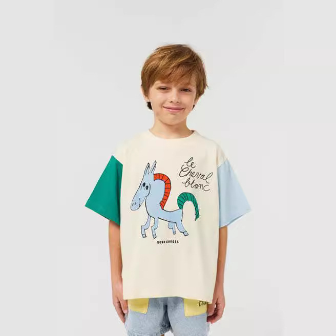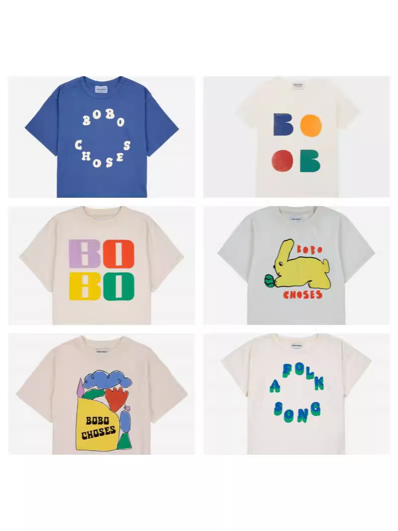 총 BC 아동복 BOBO 아동용 새 순면 프린트 패션 국경 간 뜨거운 판매 봄 여름 소년 소녀용 반팔 티셔츠