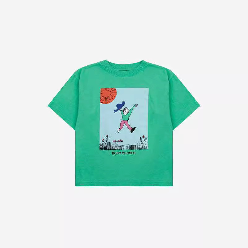 총 BC 아동복 BOBO 아동용 새 순면 프린트 패션 국경 간 뜨거운 판매 봄 여름 소년 소녀용 반팔 티셔츠스토어 가기