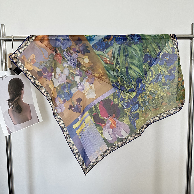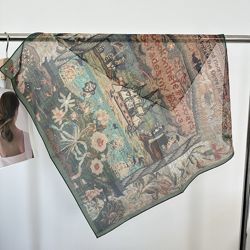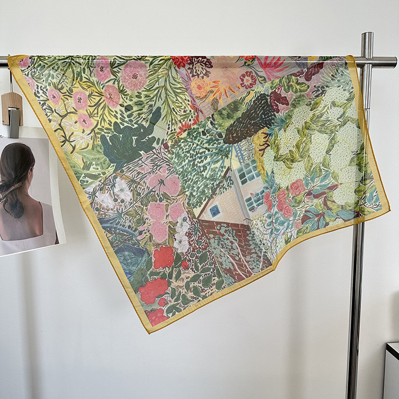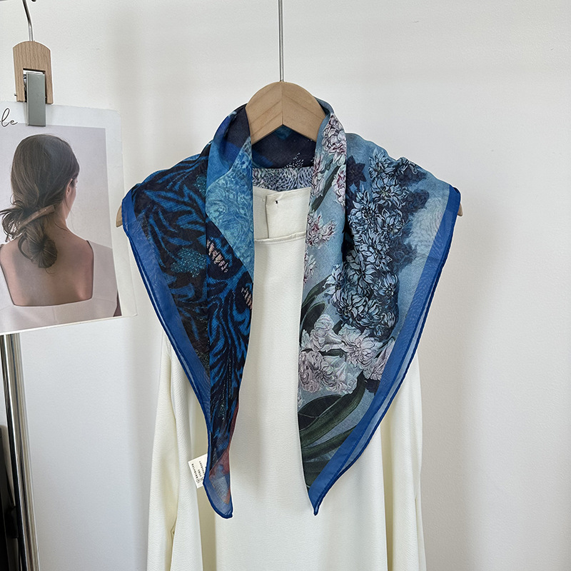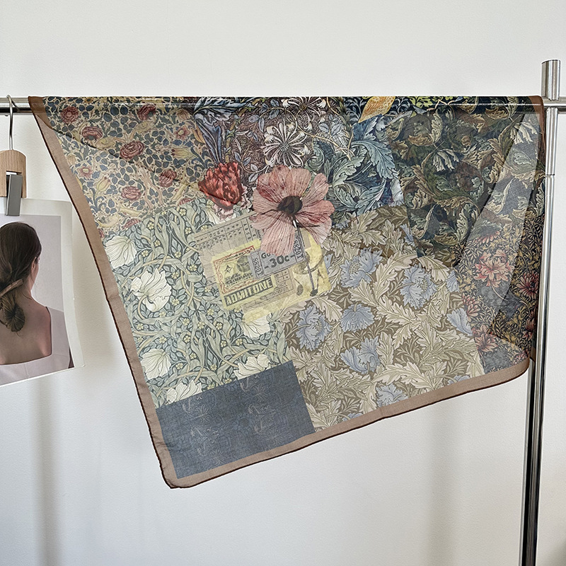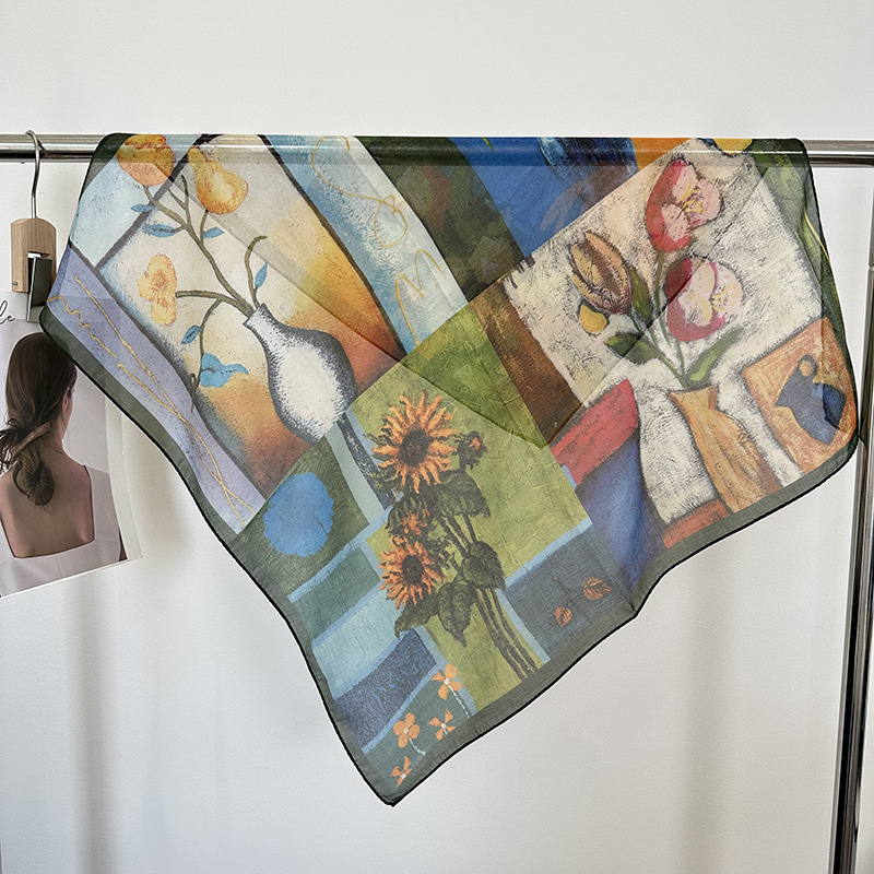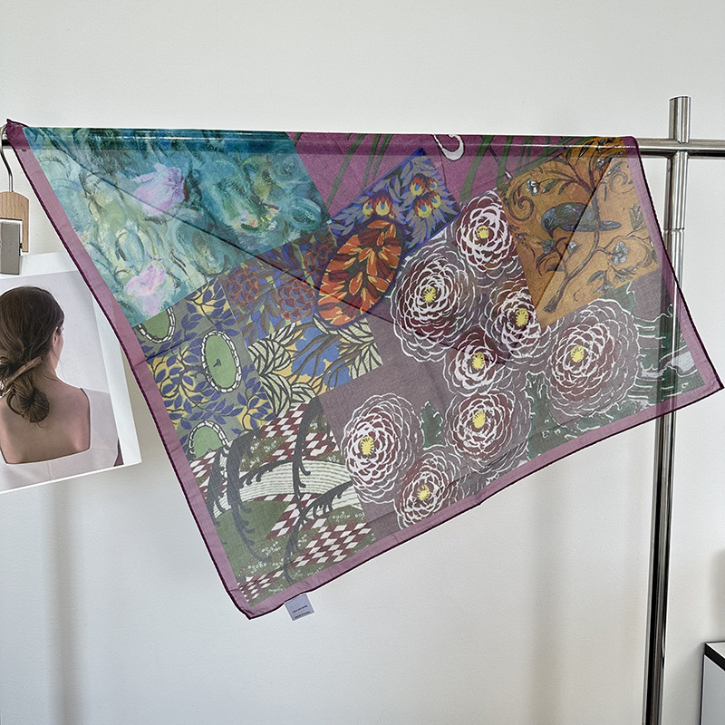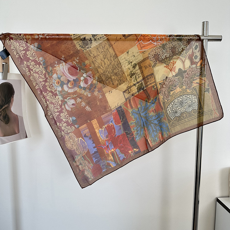 레트로 유화 면 및 린넨 머리띠, 실크 스카프, 여성용 작은 사각형 스카프, 얇은 허리 스카프, 장식 스카프, 자외선 차단제, 터번스토어 가기