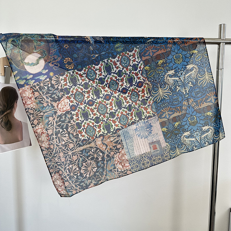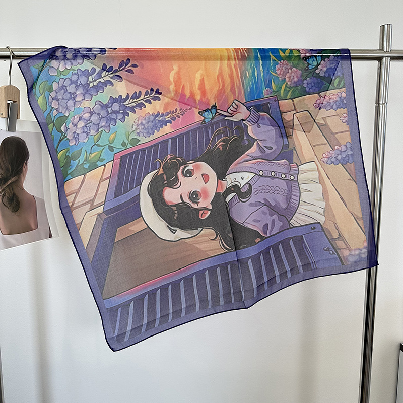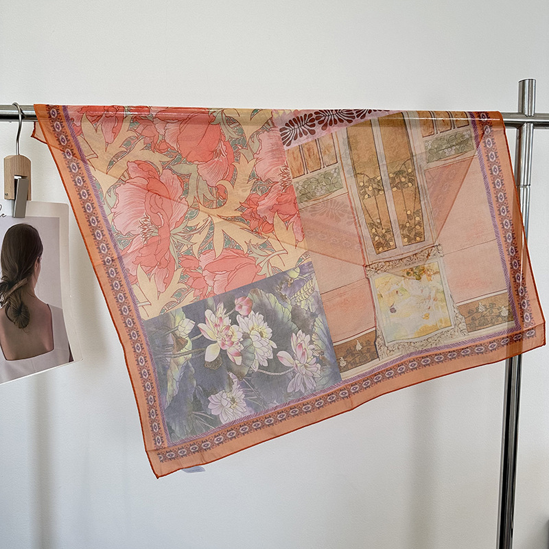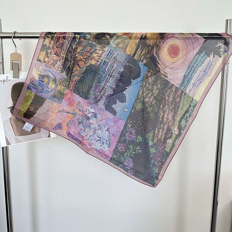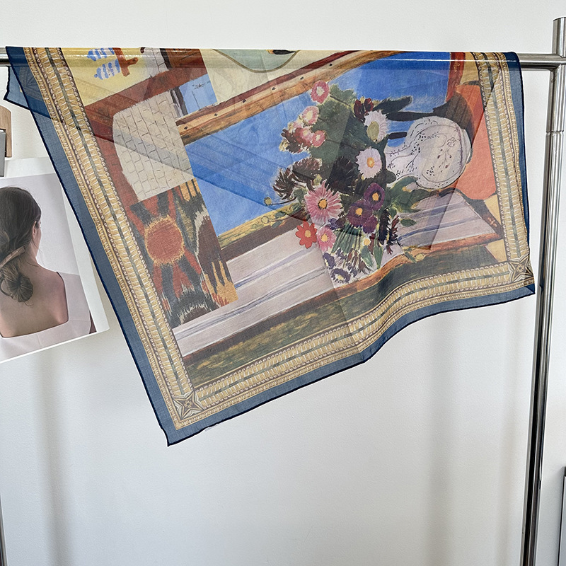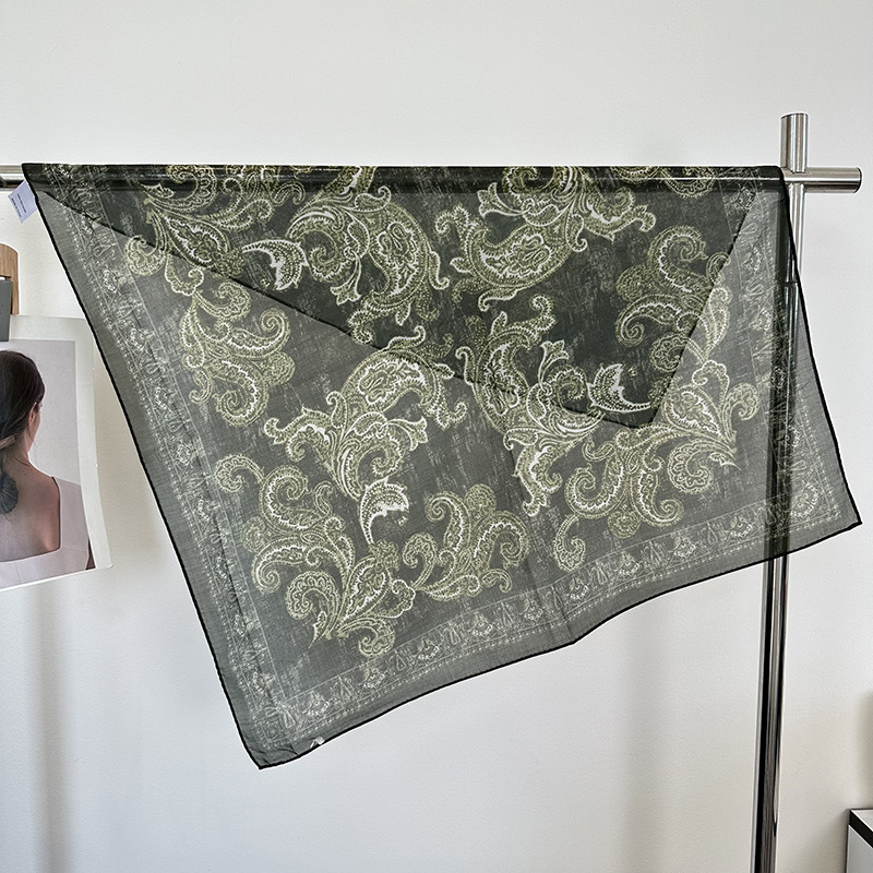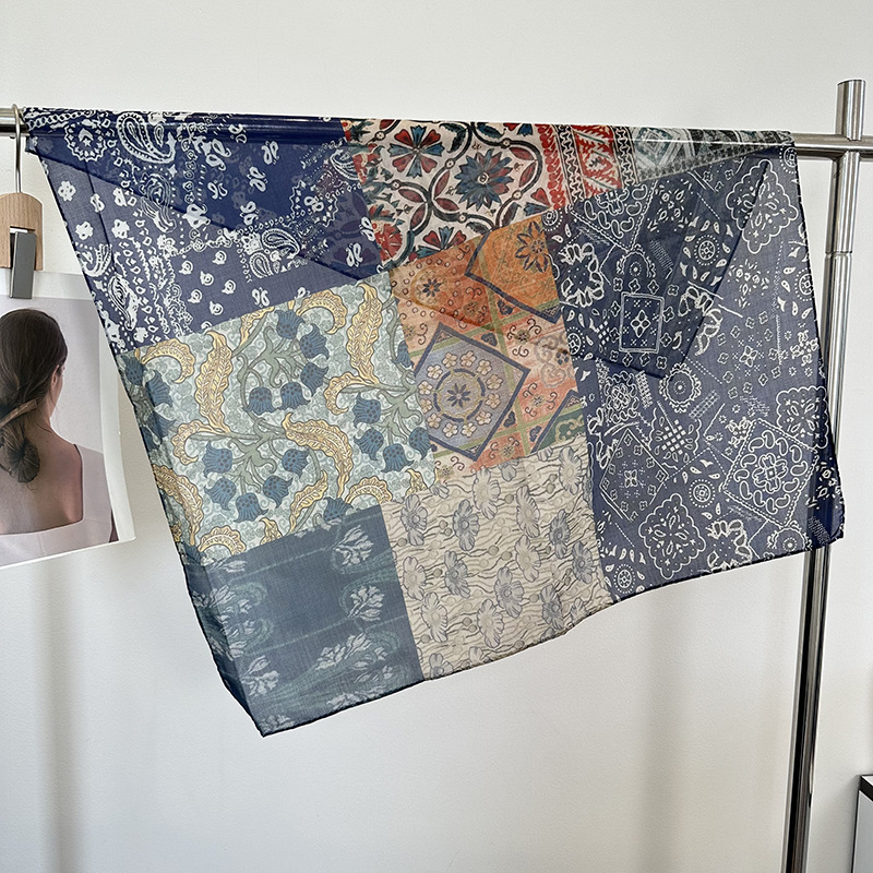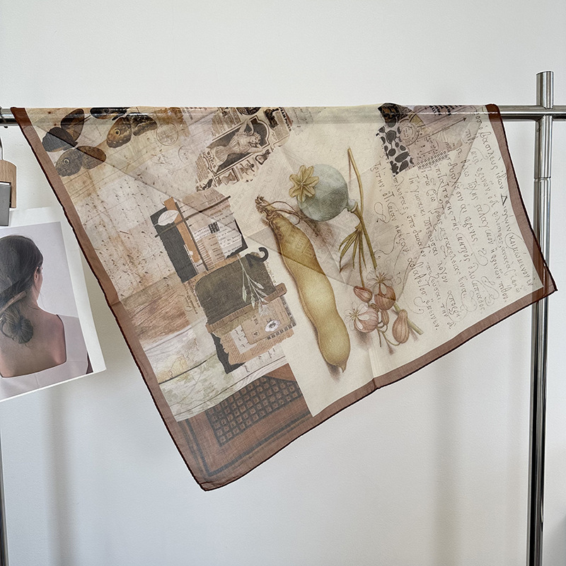 레트로 유화 면 및 린넨 머리띠, 실크 스카프, 여성용 작은 사각형 스카프, 얇은 허리 스카프, 장식 스카프, 자외선 차단제, 터번스토어 가기