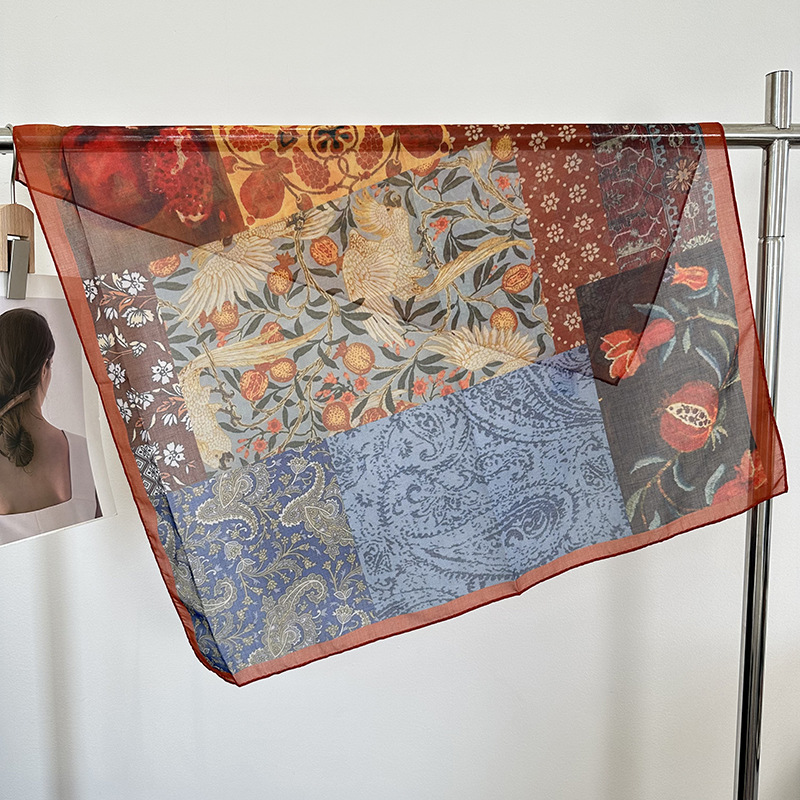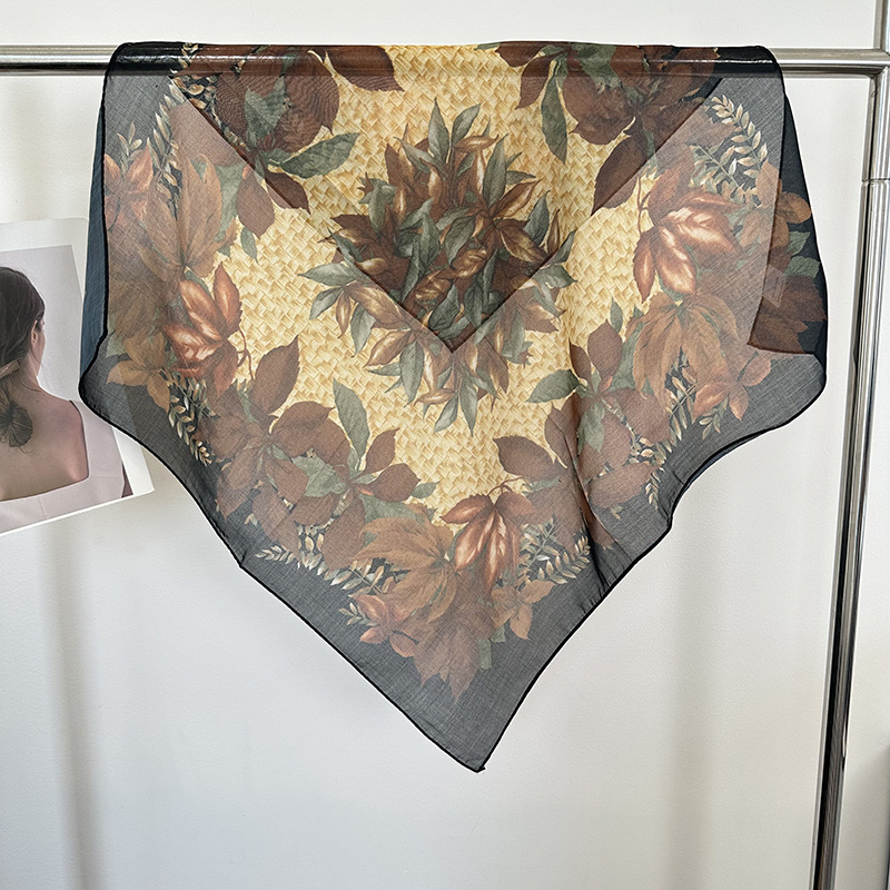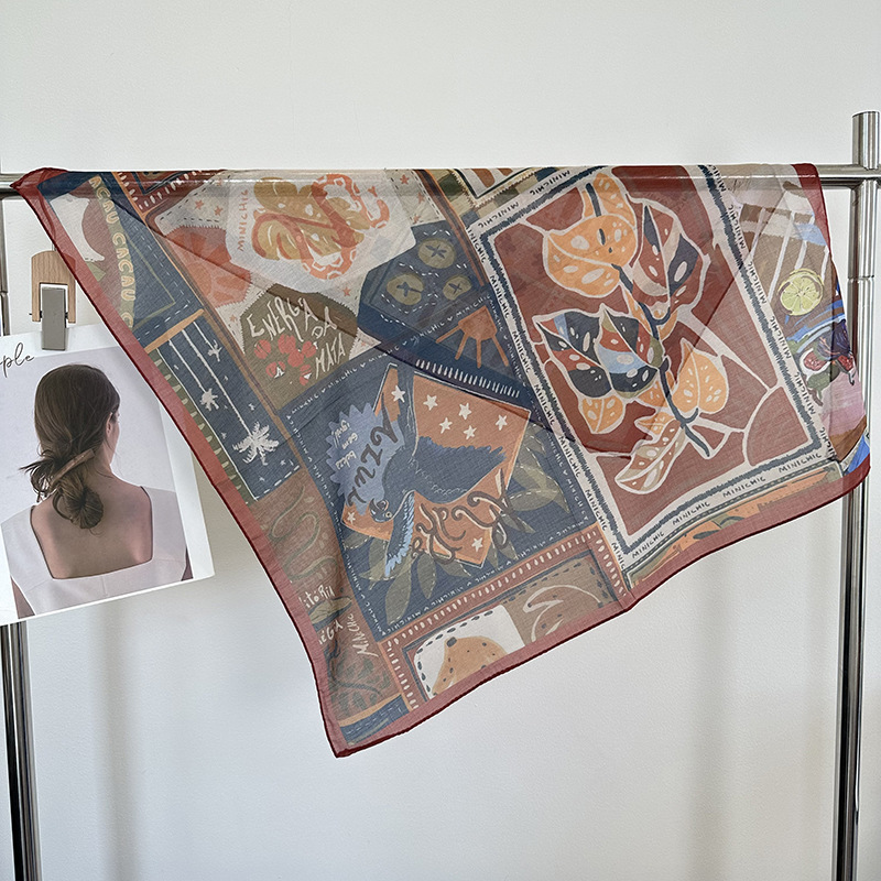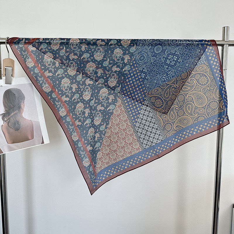 레트로 유화 면 및 린넨 머리띠, 실크 스카프, 여성용 작은 사각형 스카프, 얇은 허리 스카프, 장식 스카프, 자외선 차단제, 터번