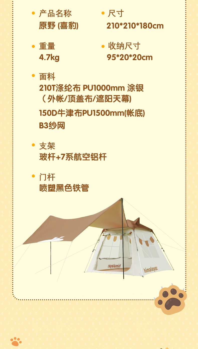 • Xibao 퀵 오픈 텐트 [완전 실버 코팅]