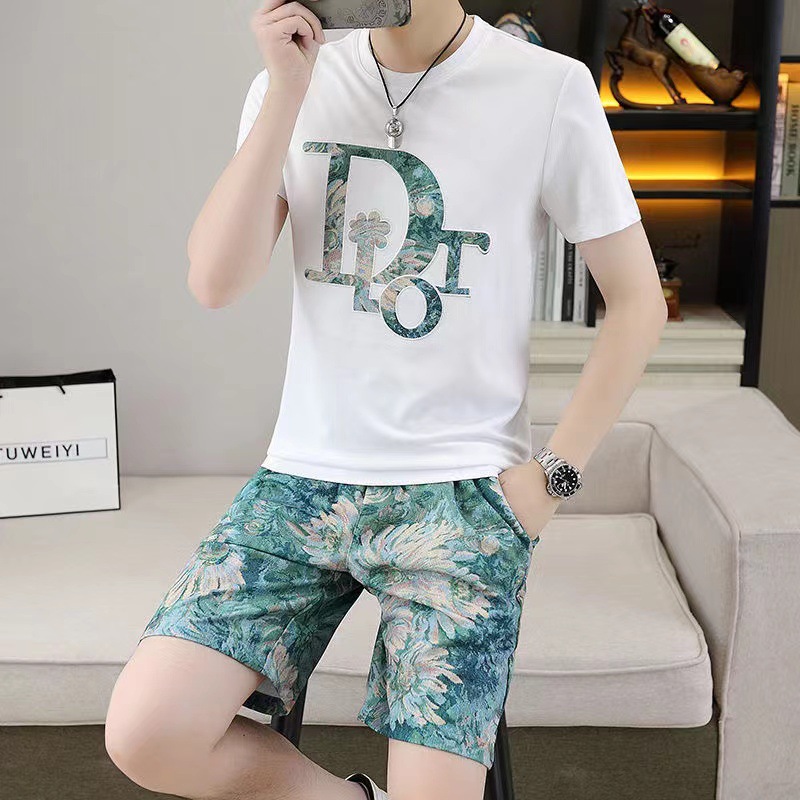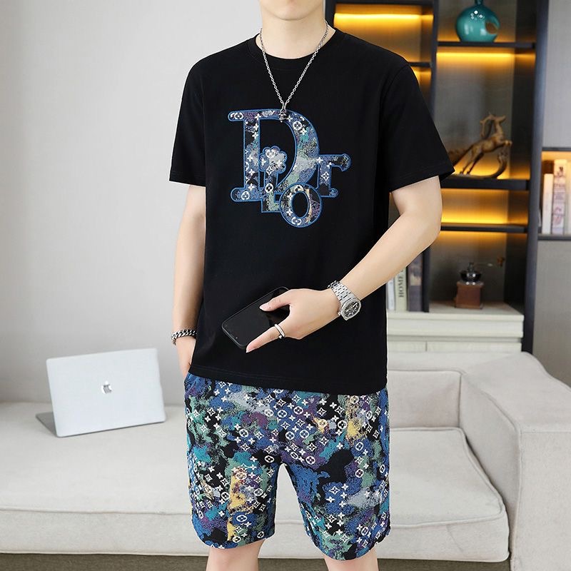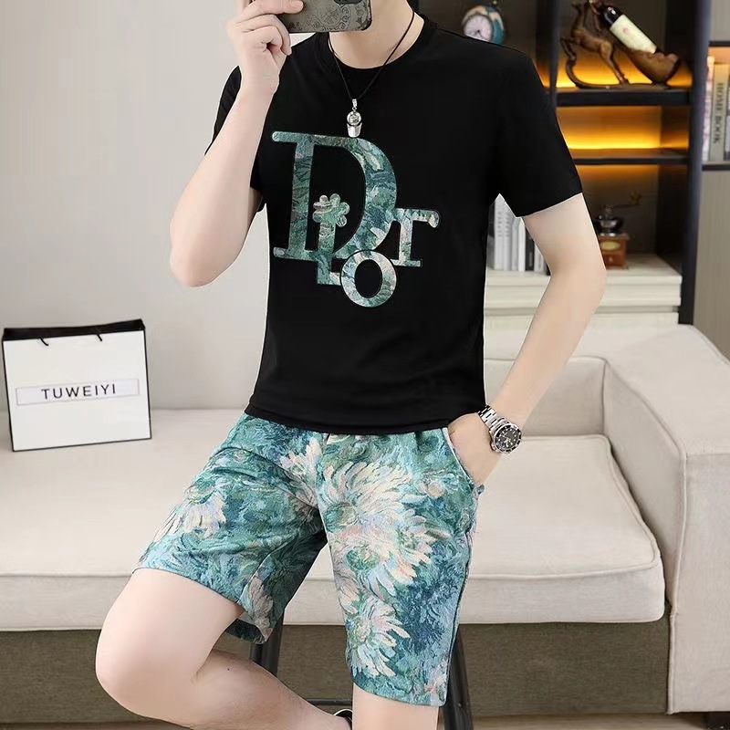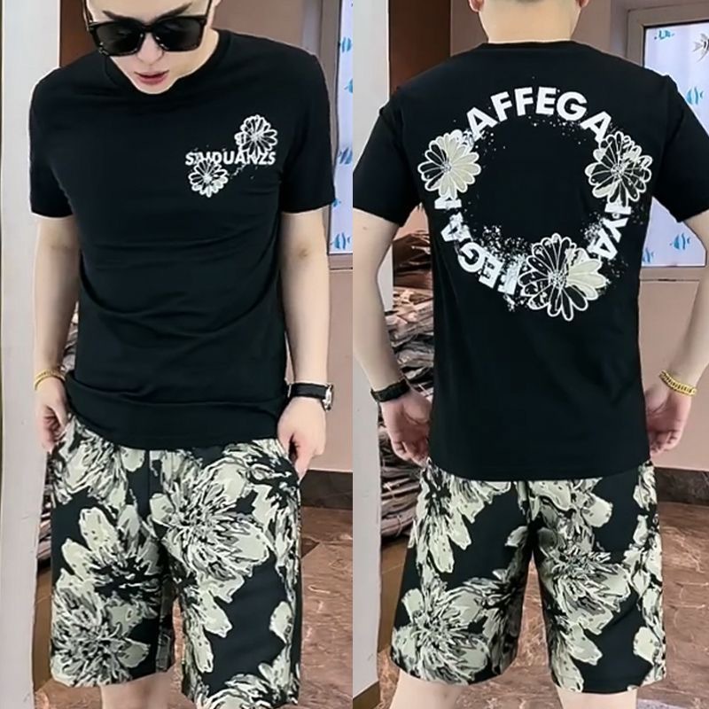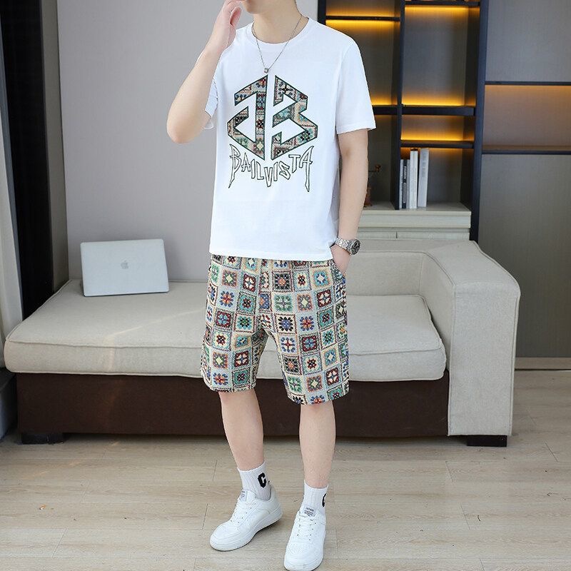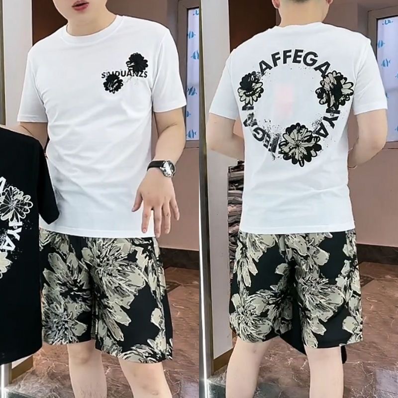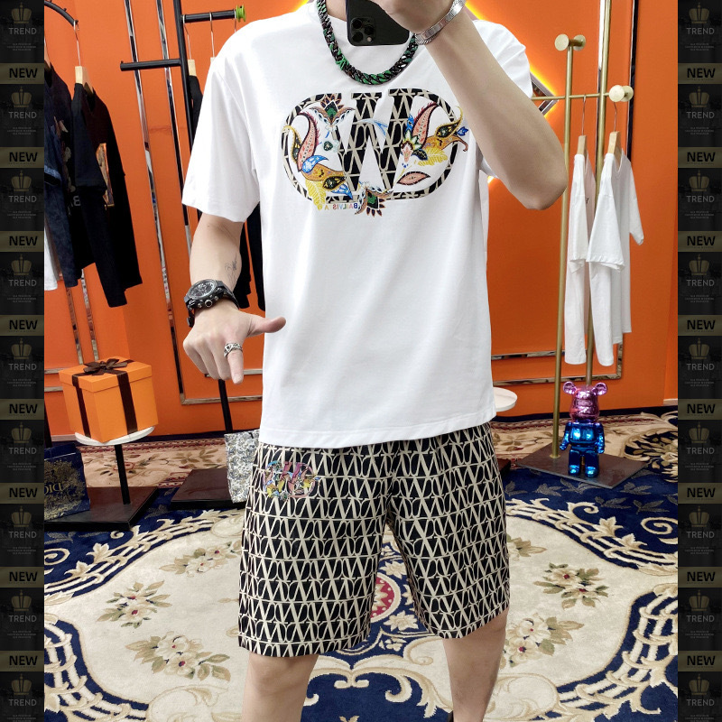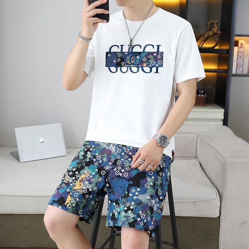 대외 무역 여름 남성 패션 트렌드 정장 맞춤형 곰 티셔츠 반바지 라운드 넥 느슨한 영국 투피스 세트스토어 가기