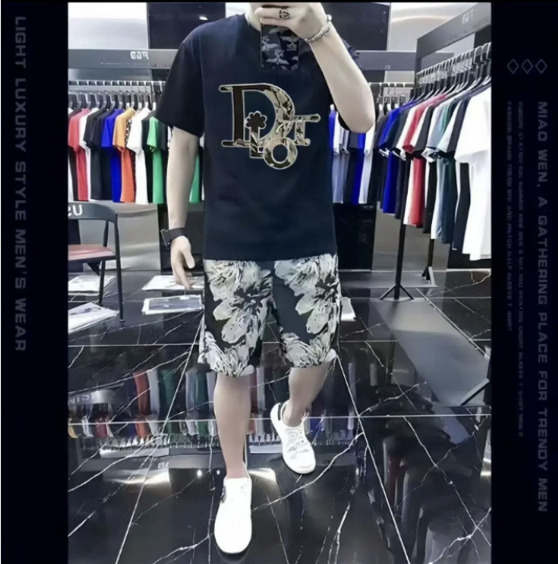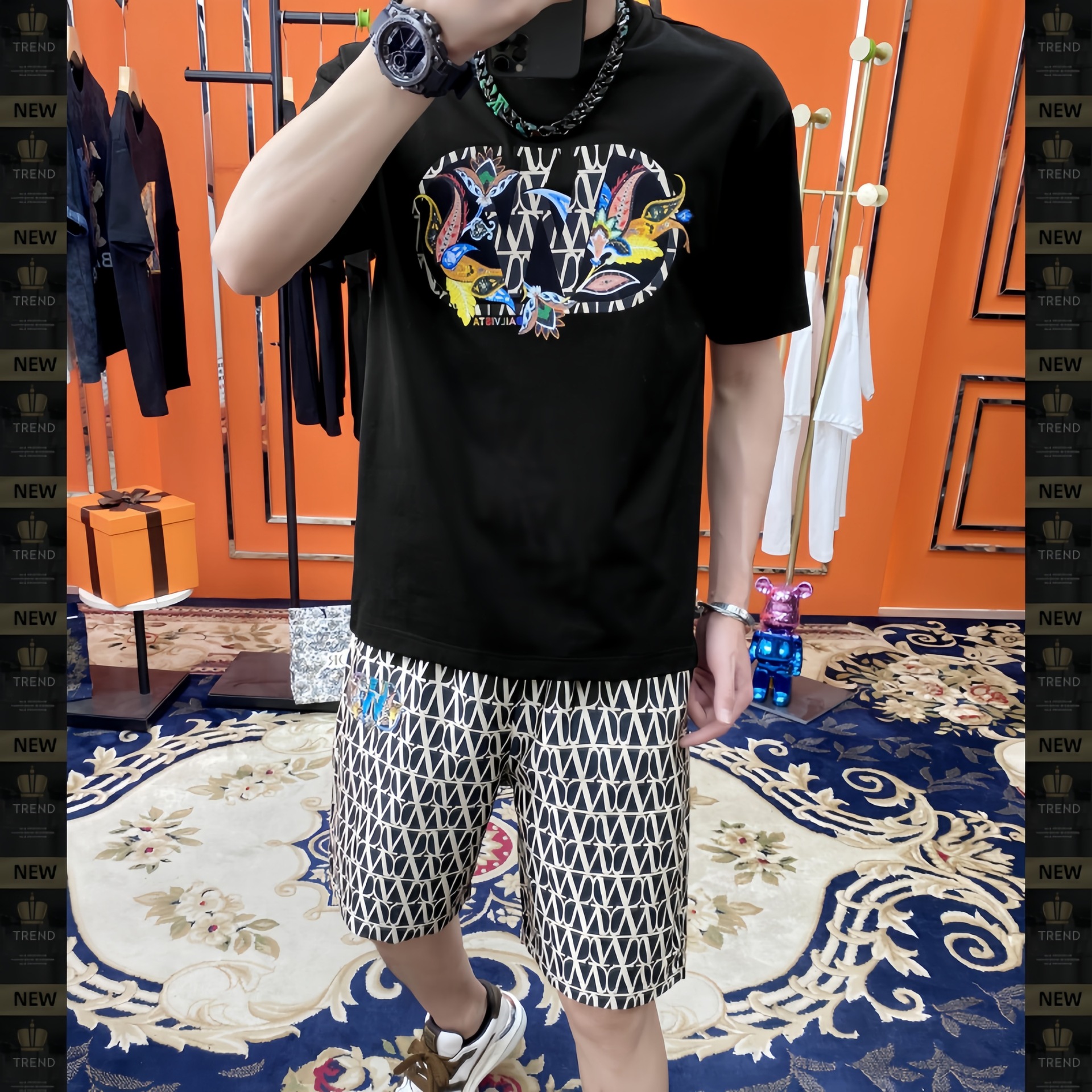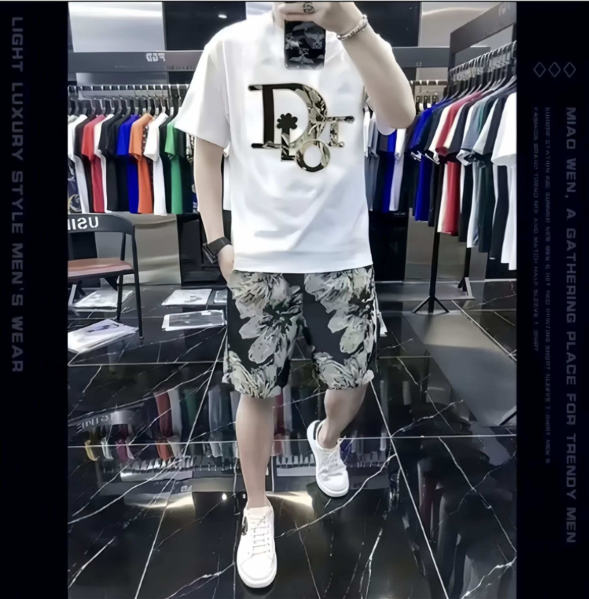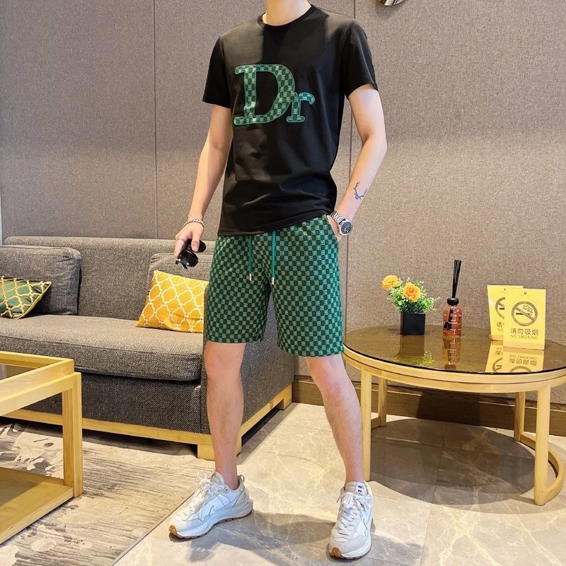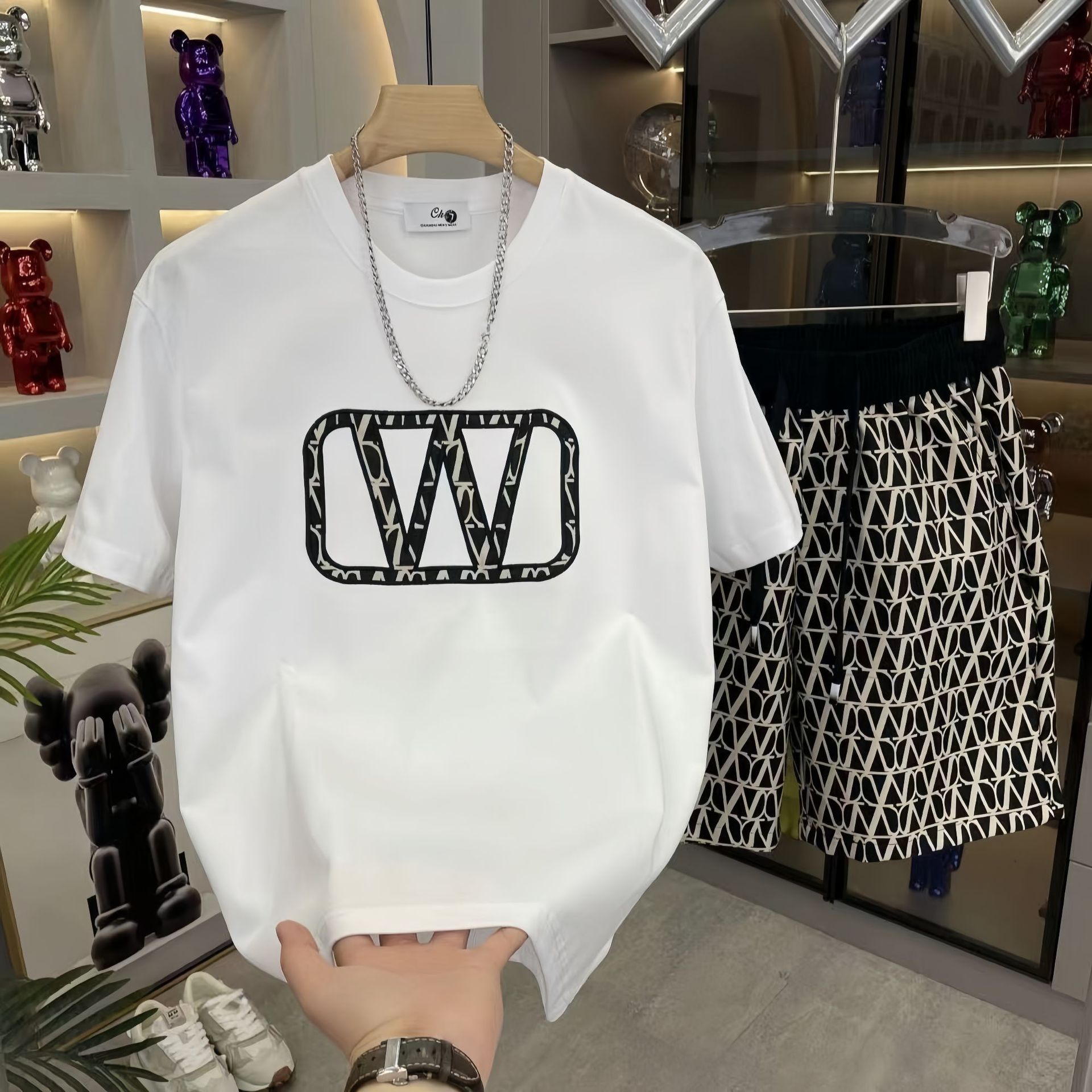 대외 무역 여름 남성 패션 트렌드 정장 맞춤형 곰 티셔츠 반바지 라운드 넥 느슨한 영국 투피스 세트스토어 가기