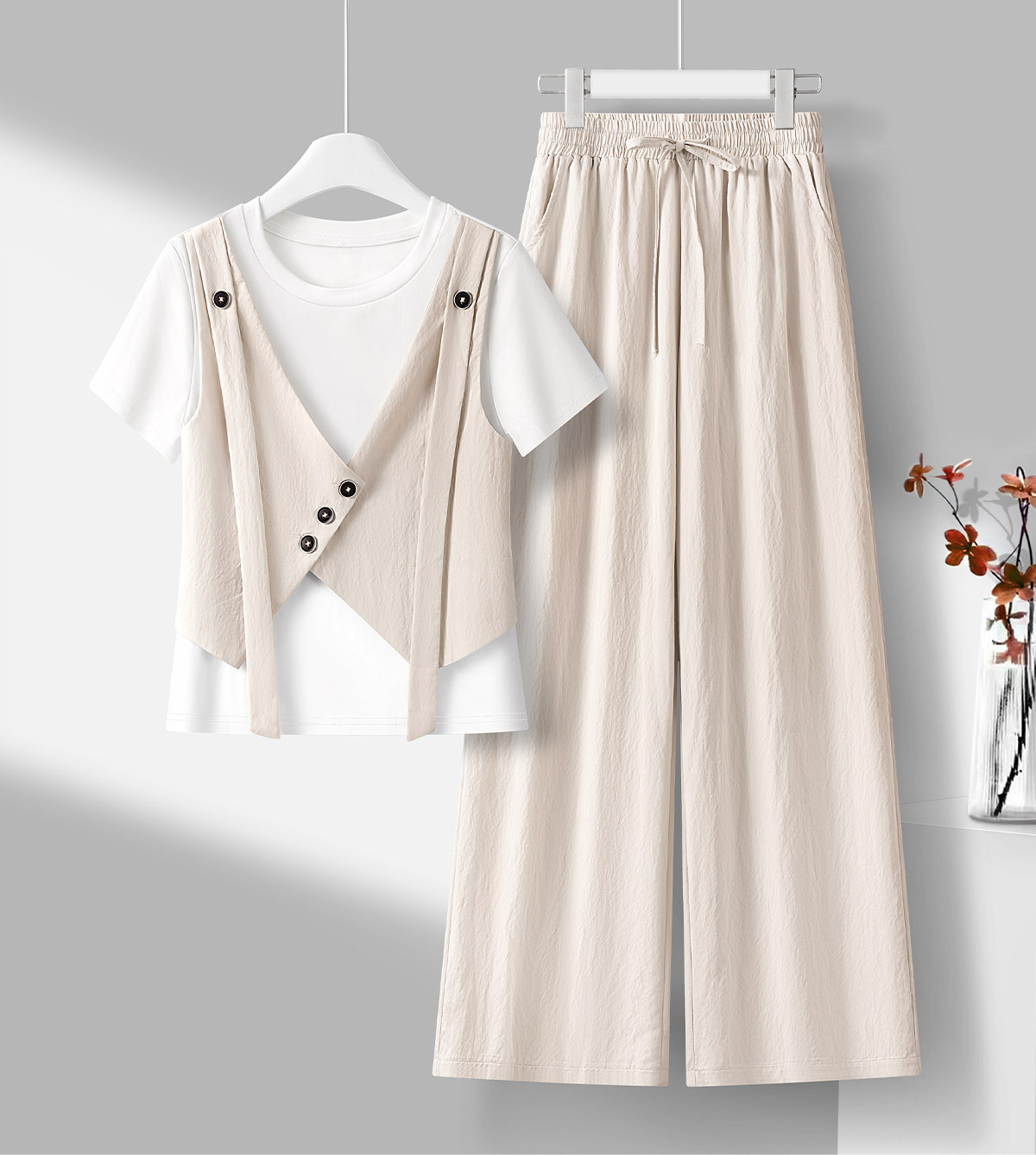 관대하고 괜찮은 여름 세트 여성의 새로운 패션 거인 잘 생긴 티셔츠 넓은 다리 바지 투피스 세트