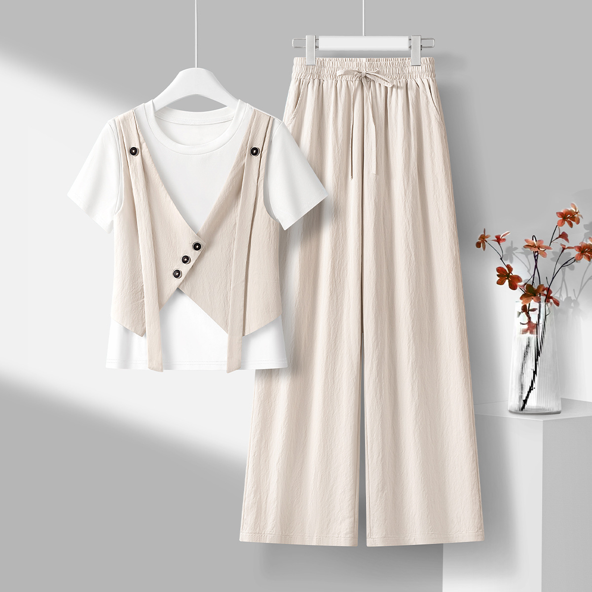 관대하고 괜찮은 여름 세트 여성의 새로운 패션 거인 잘 생긴 티셔츠 넓은 다리 바지 투피스 세트스토어 가기