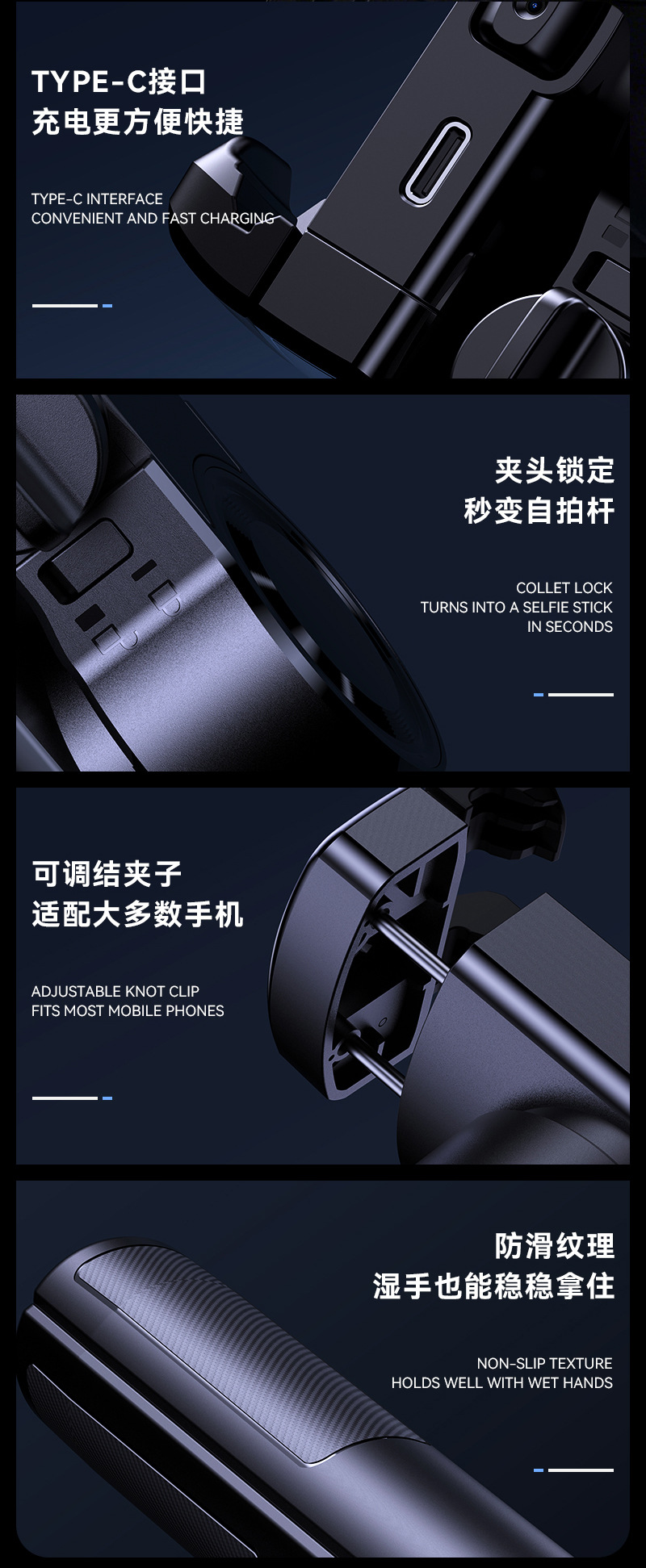 AI 지능형 안정화 및 추적 짐벌 셀카봉 휴대폰 홀더 라이브 방송 새로운 360도 회전 얼굴 추적