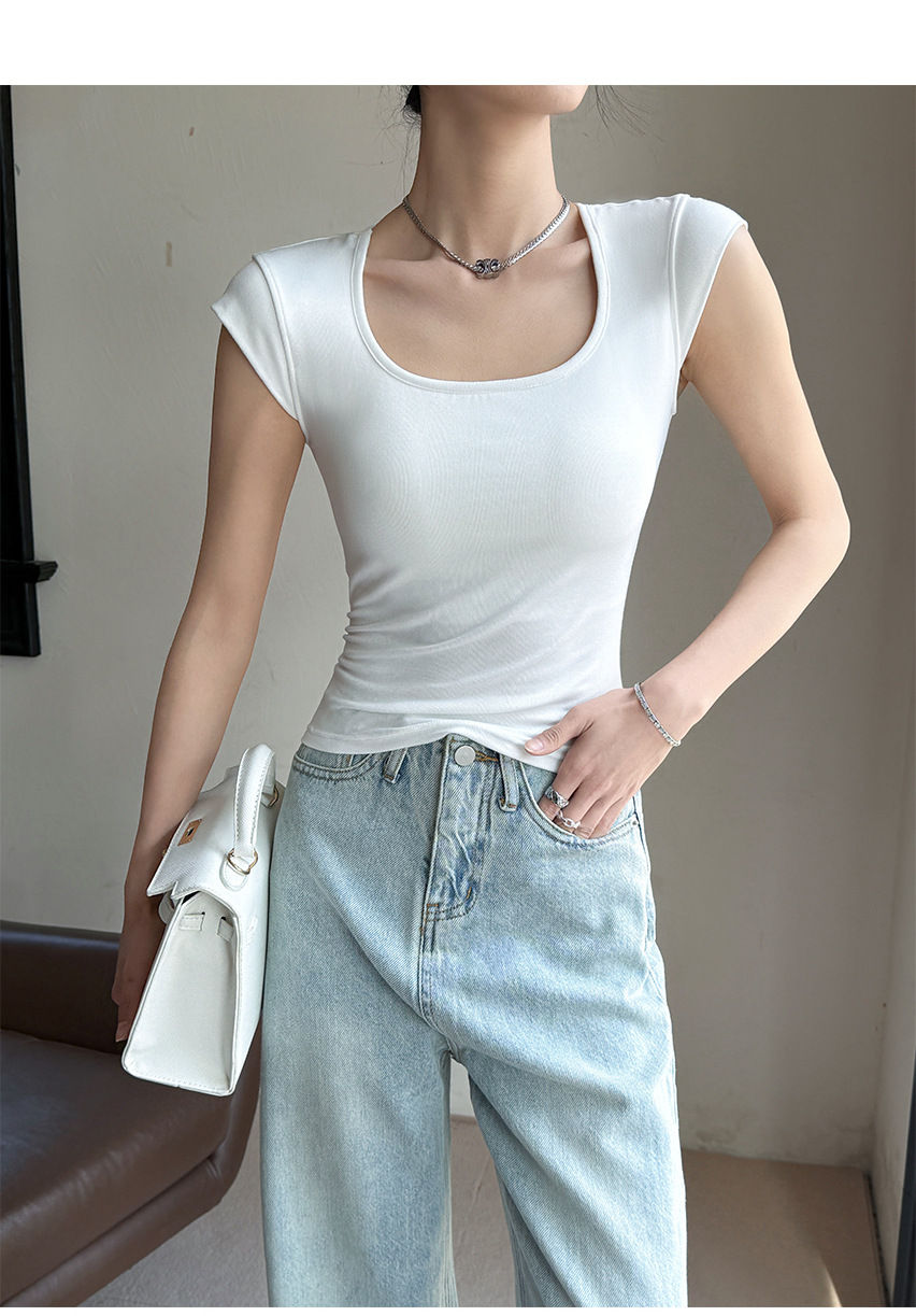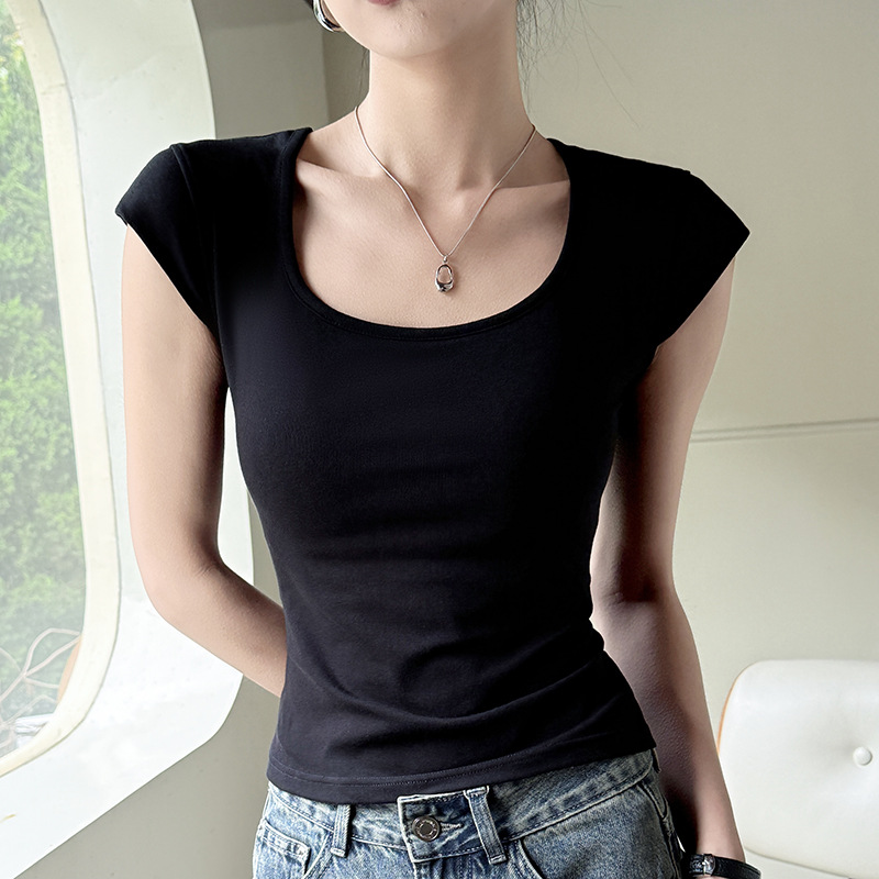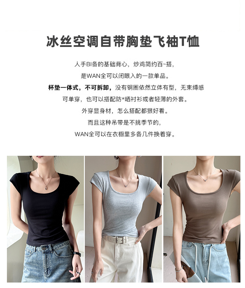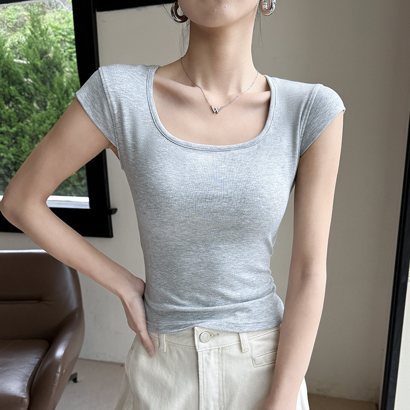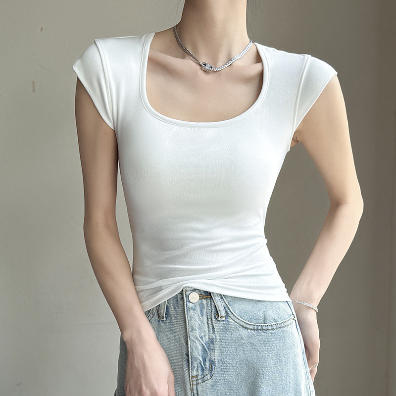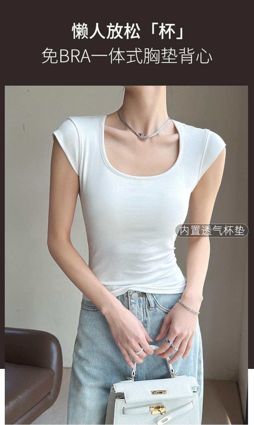 Feifei 슬리브 조끼 여자 여름 통기성 컵 아이스 실크 스퀘어 칼라 보틀 슬림 핏 트렌디 스트리트 스타일 짧은 소매 외부 착용스토어 가기