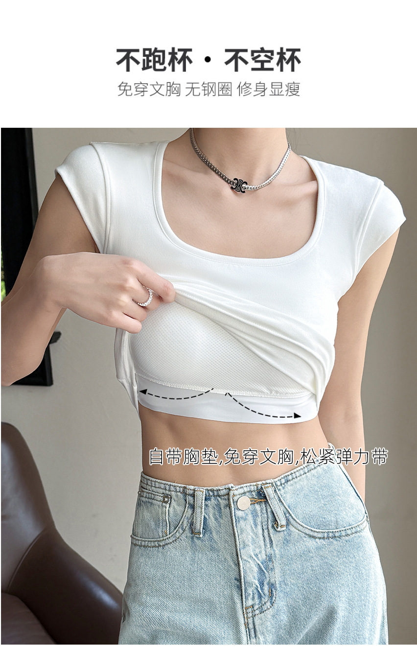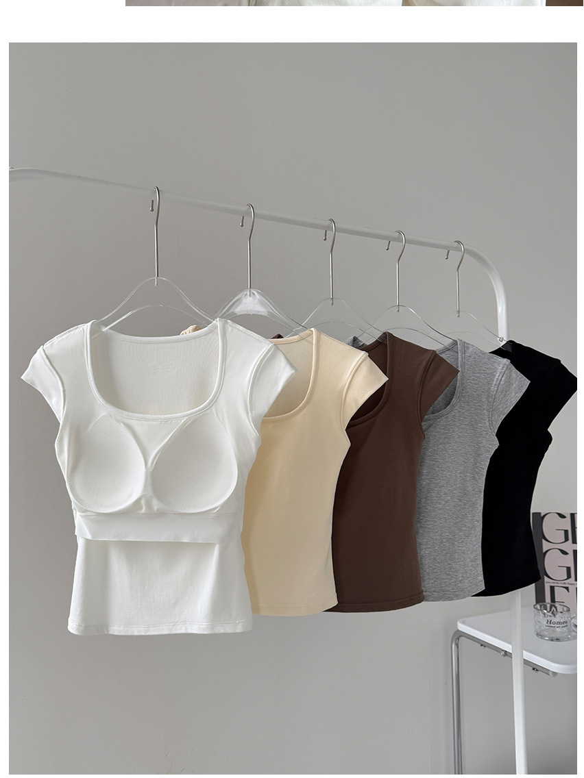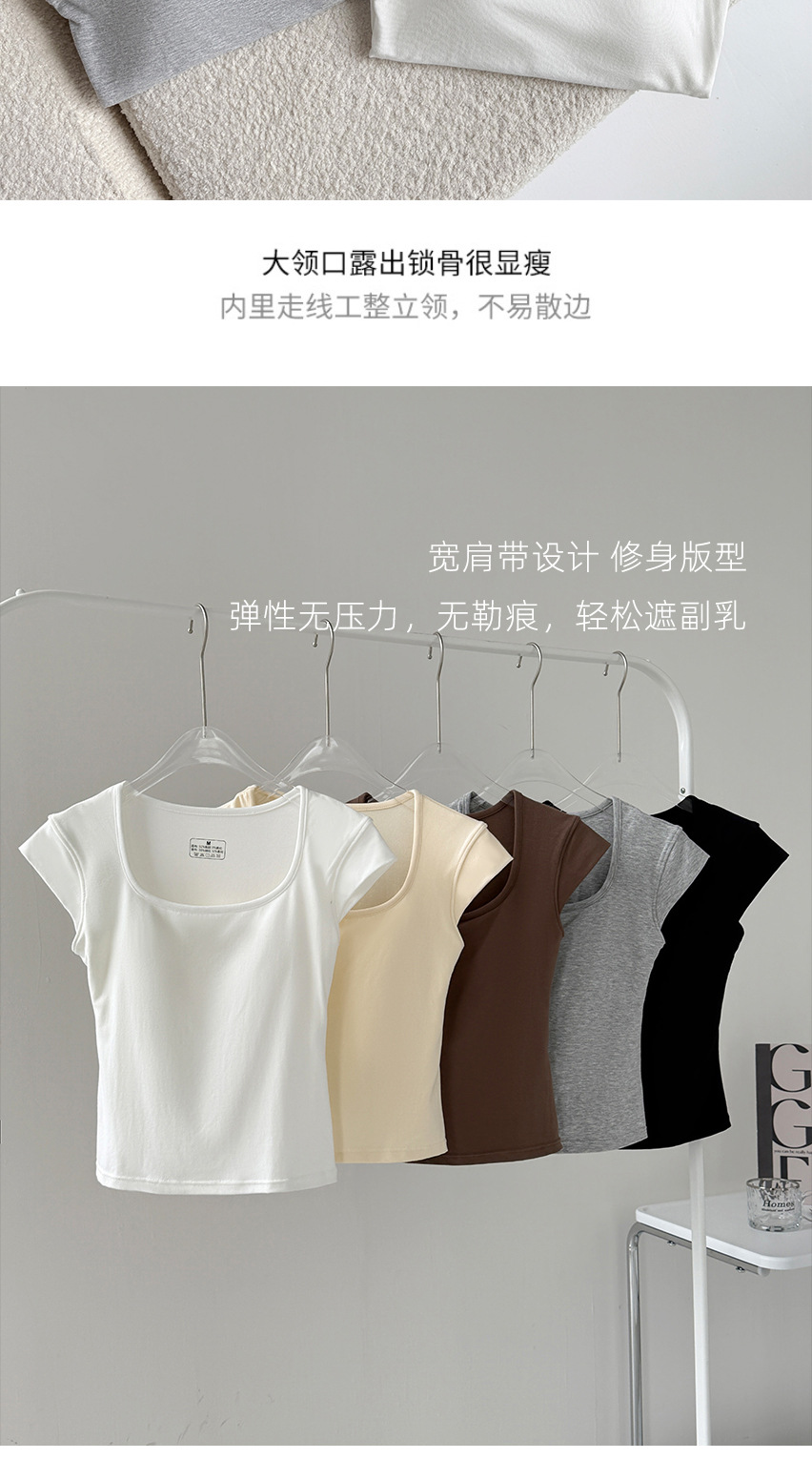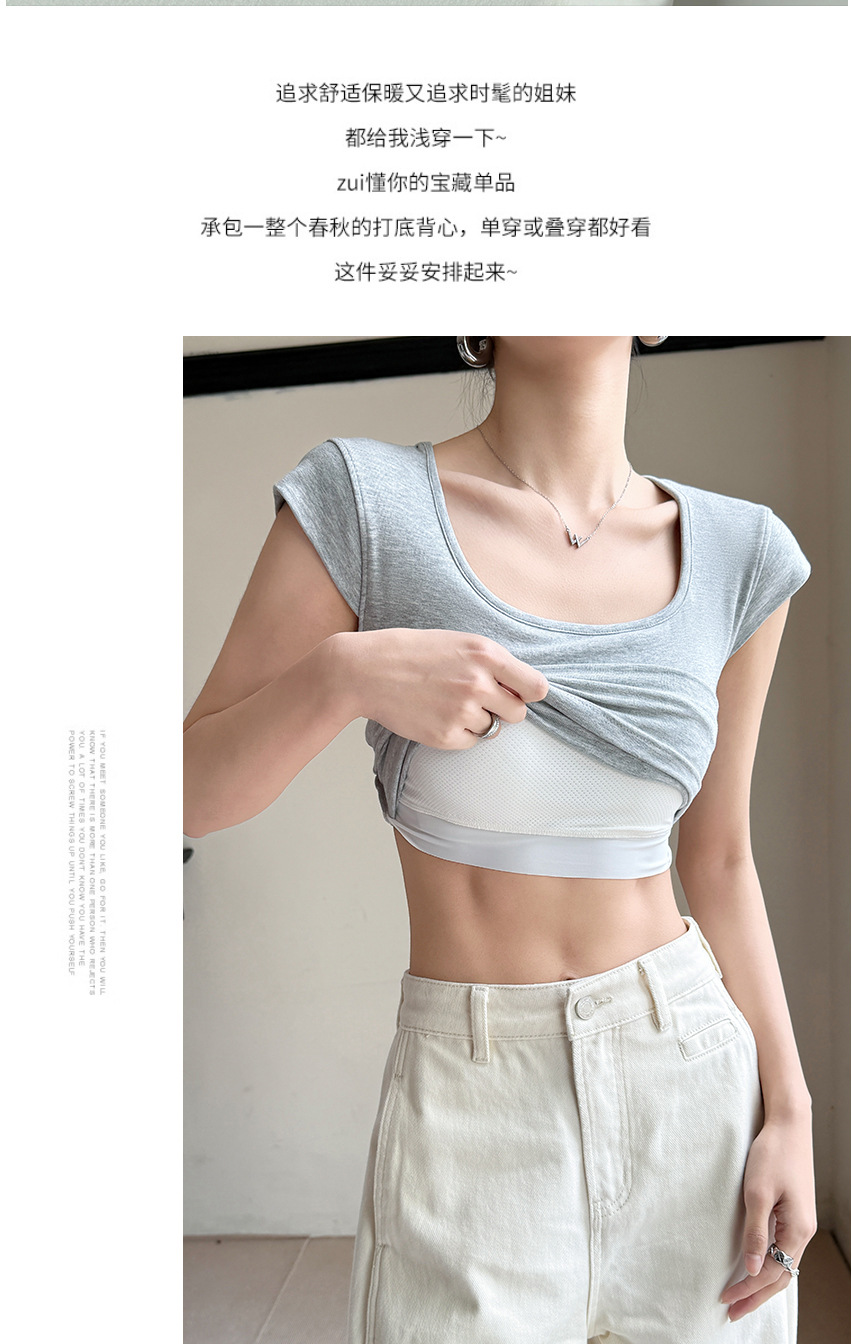 Feifei 슬리브 조끼 여자 여름 통기성 컵 아이스 실크 스퀘어 칼라 보틀 슬림 핏 트렌디 스트리트 스타일 짧은 소매 외부 착용스토어 가기