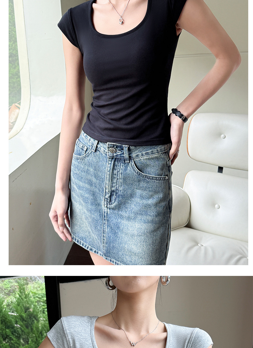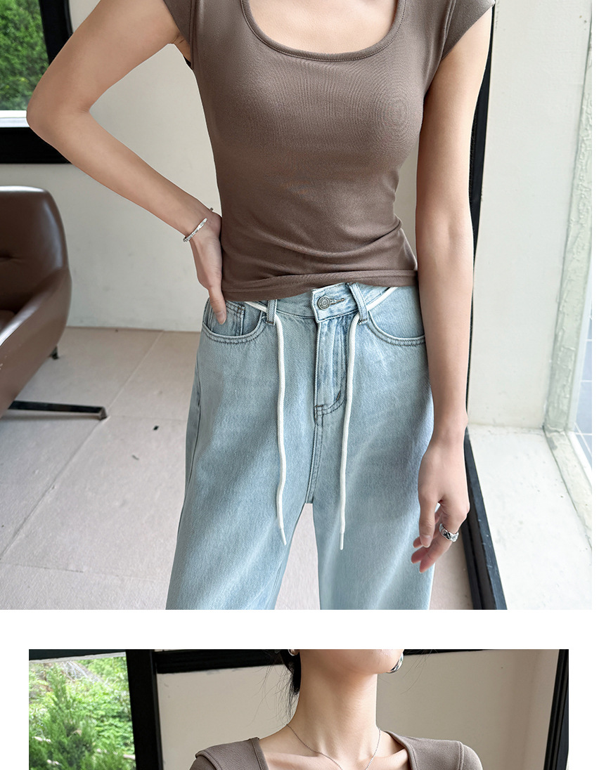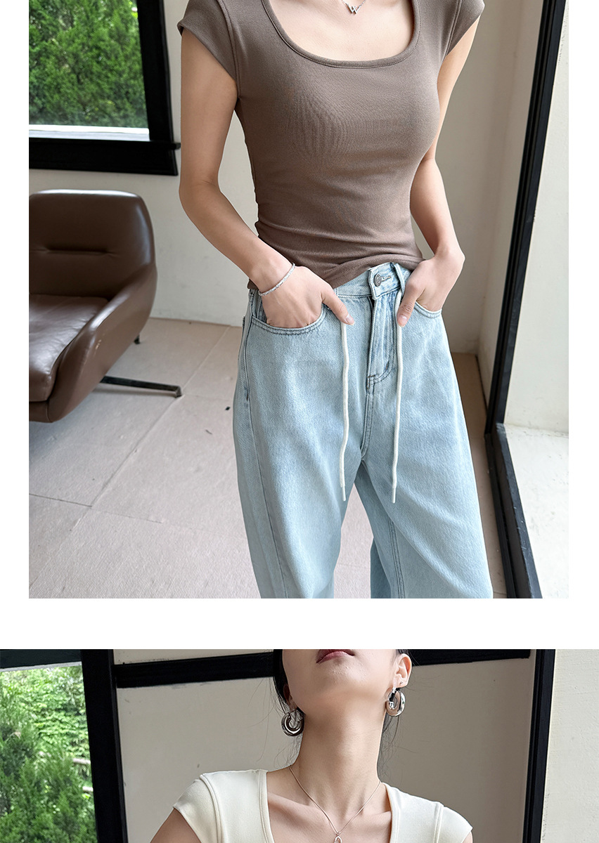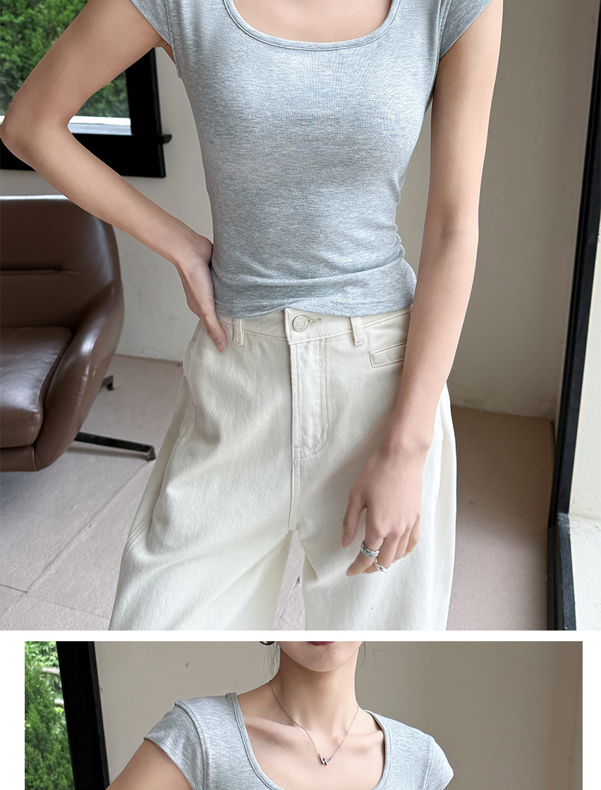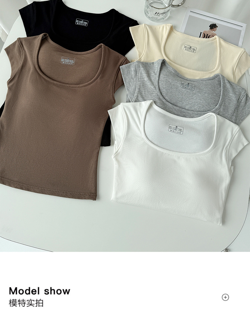 Feifei 슬리브 조끼 여자 여름 통기성 컵 아이스 실크 스퀘어 칼라 보틀 슬림 핏 트렌디 스트리트 스타일 짧은 소매 외부 착용스토어 가기