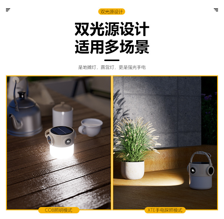 • 태양광 캠핑등 [이중광원 + 디지털 디스플레이 + 데이터 케이블]