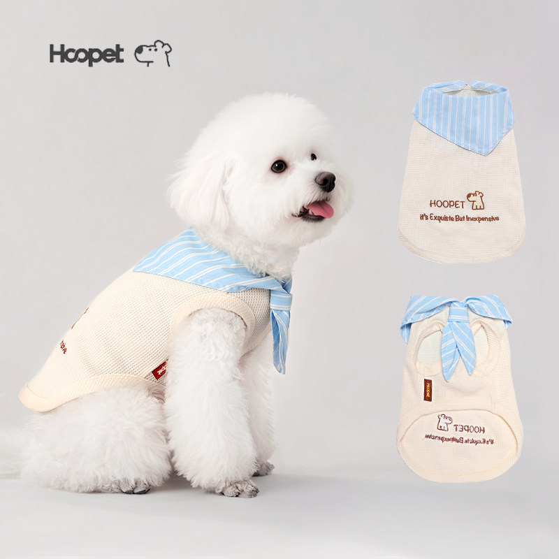 【品名】:HOOPET-PP白条纹领结米色背心/蓝条纹领结绿色背心