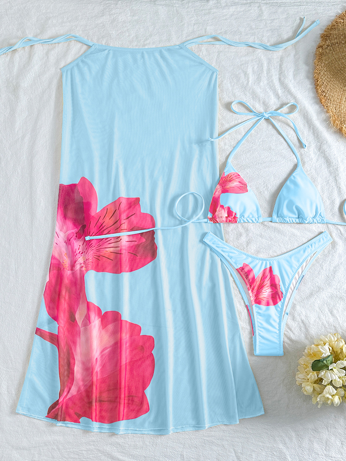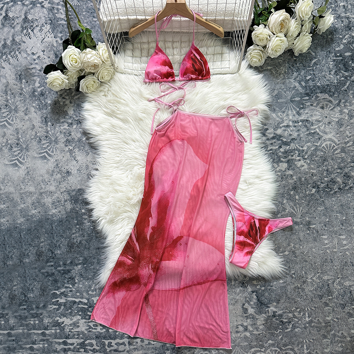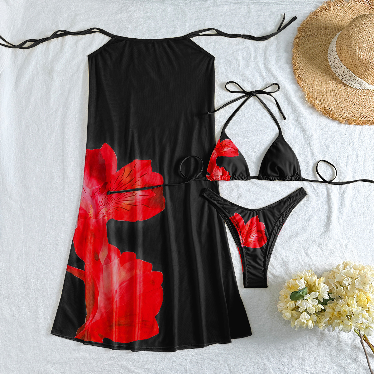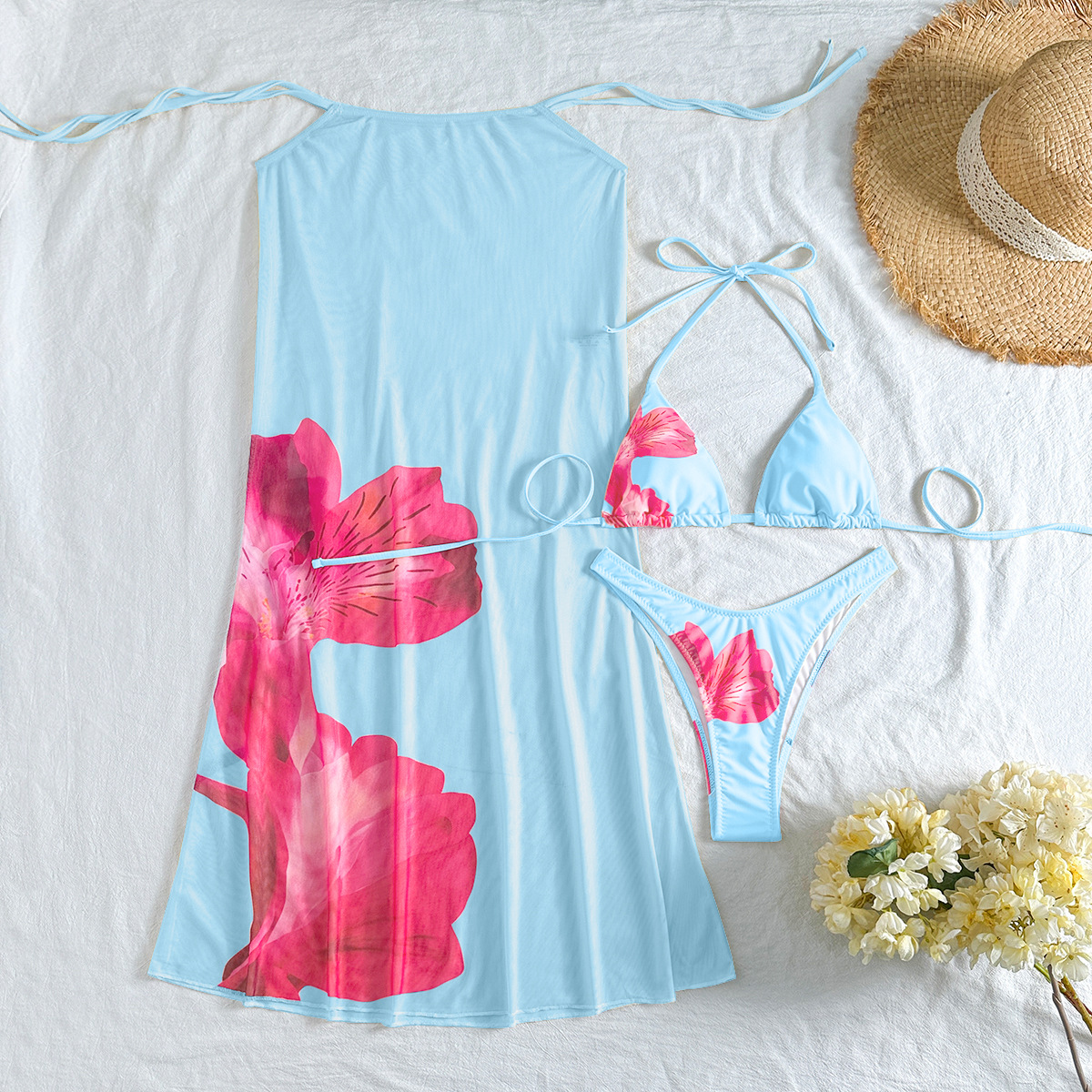 2025 새로운 섹시한 3피스 비키니 수영복 유럽과 미국의 아마존 핫 판매 3점 프린트 수영복
