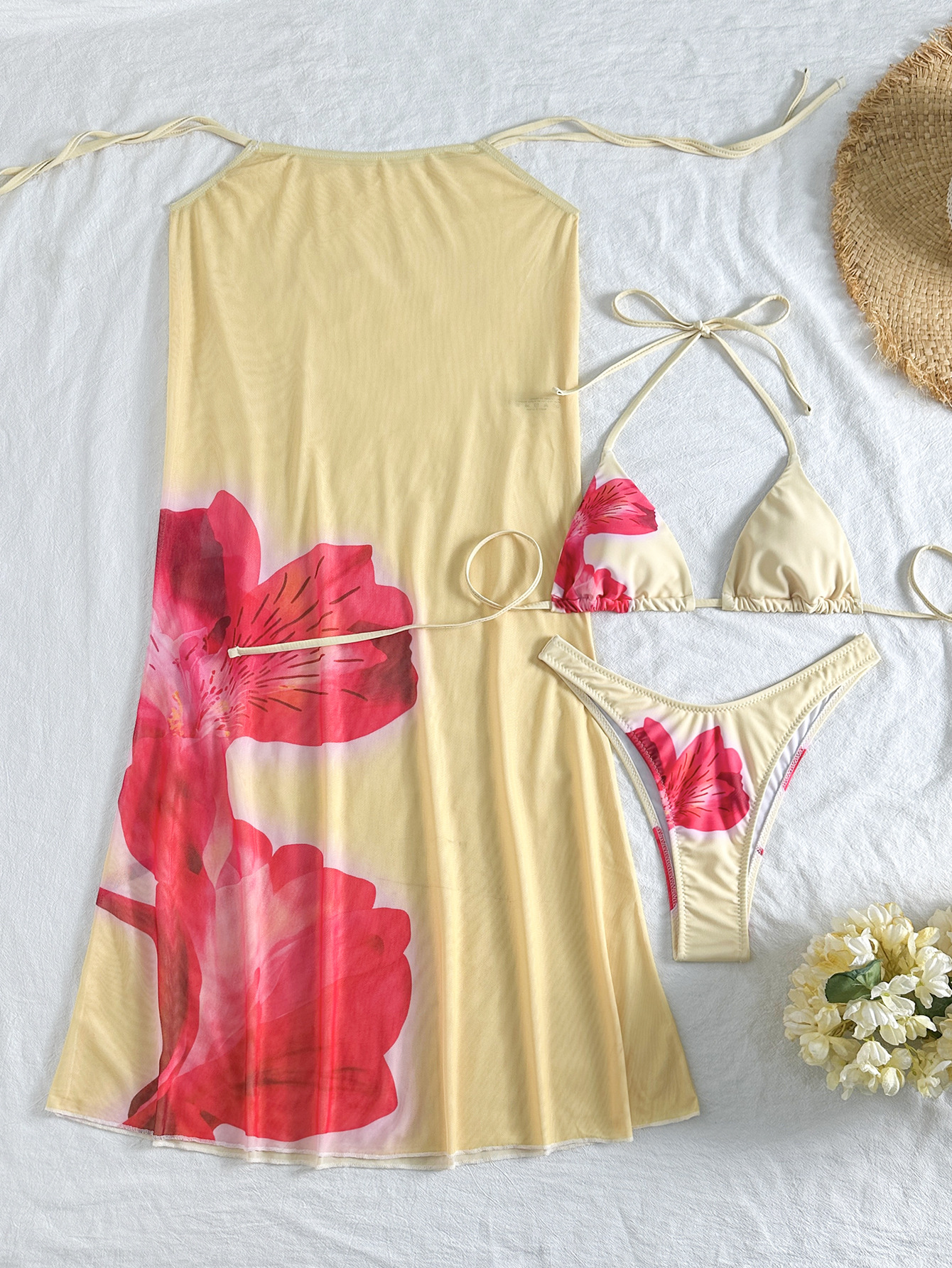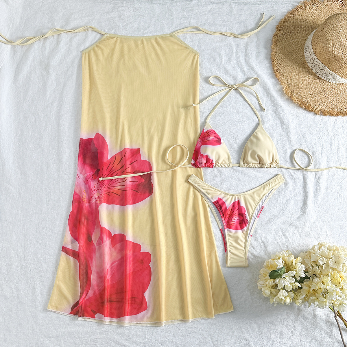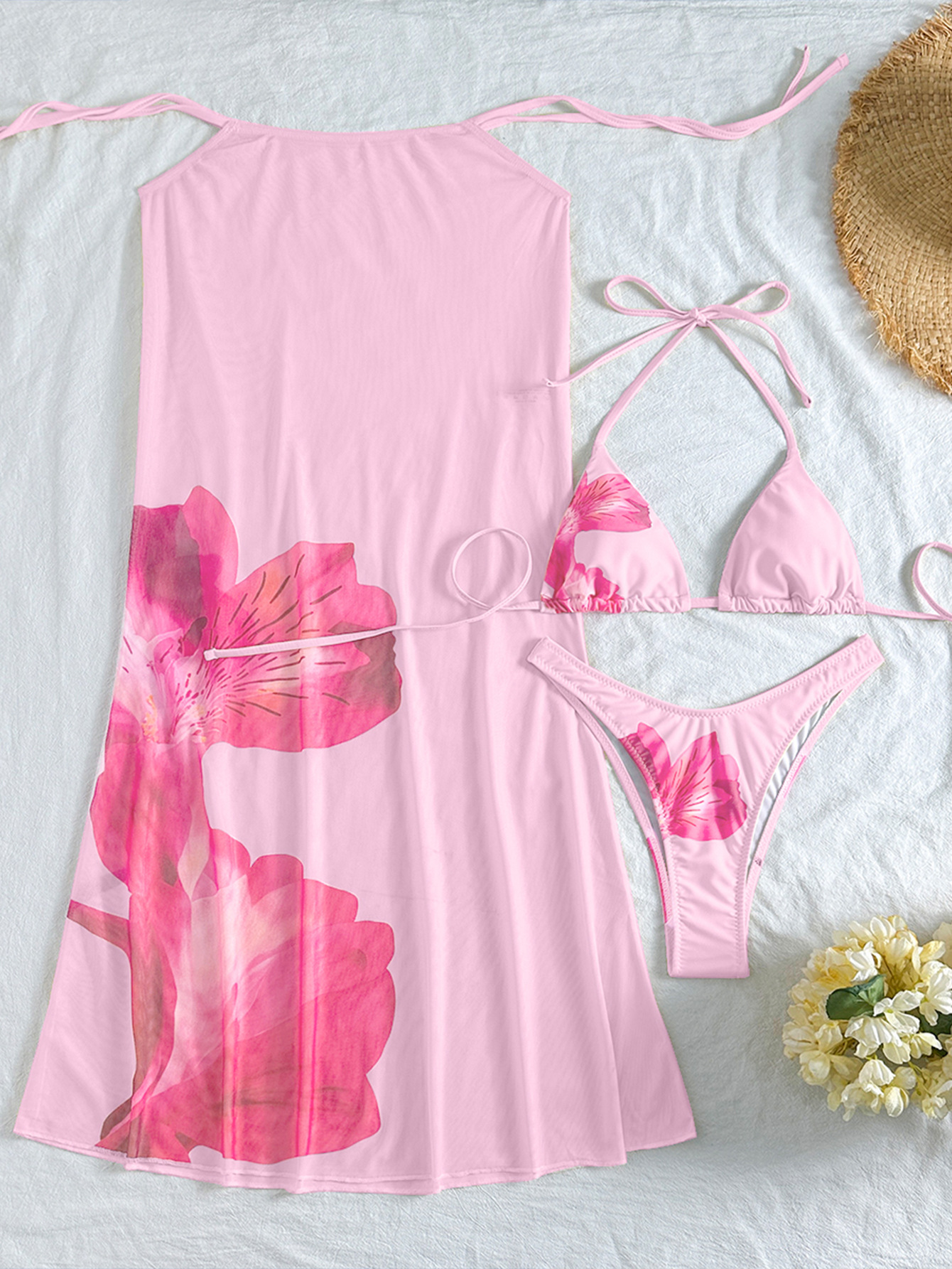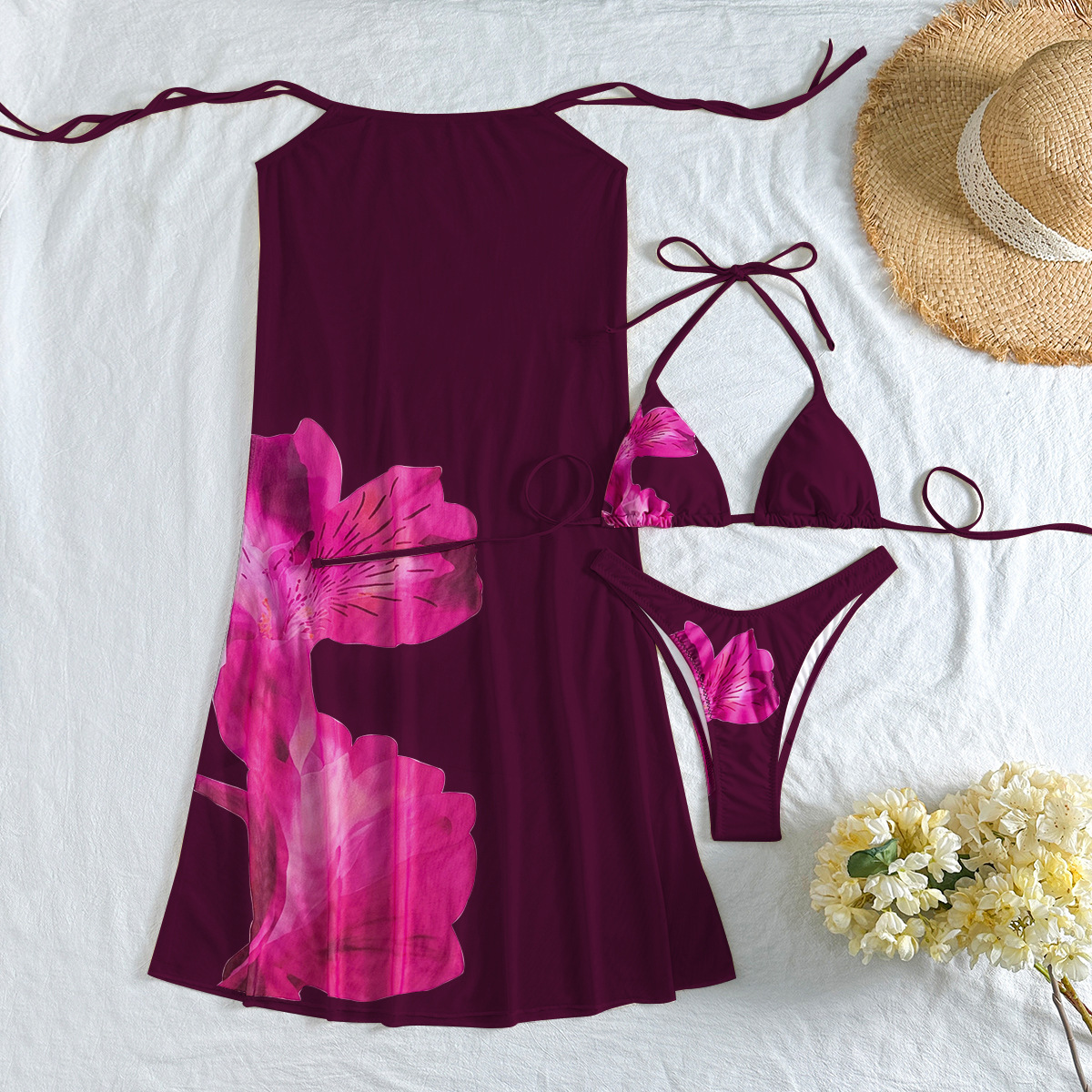2025 새로운 섹시한 3피스 비키니 수영복 유럽과 미국의 아마존 핫 판매 3점 프린트 수영복