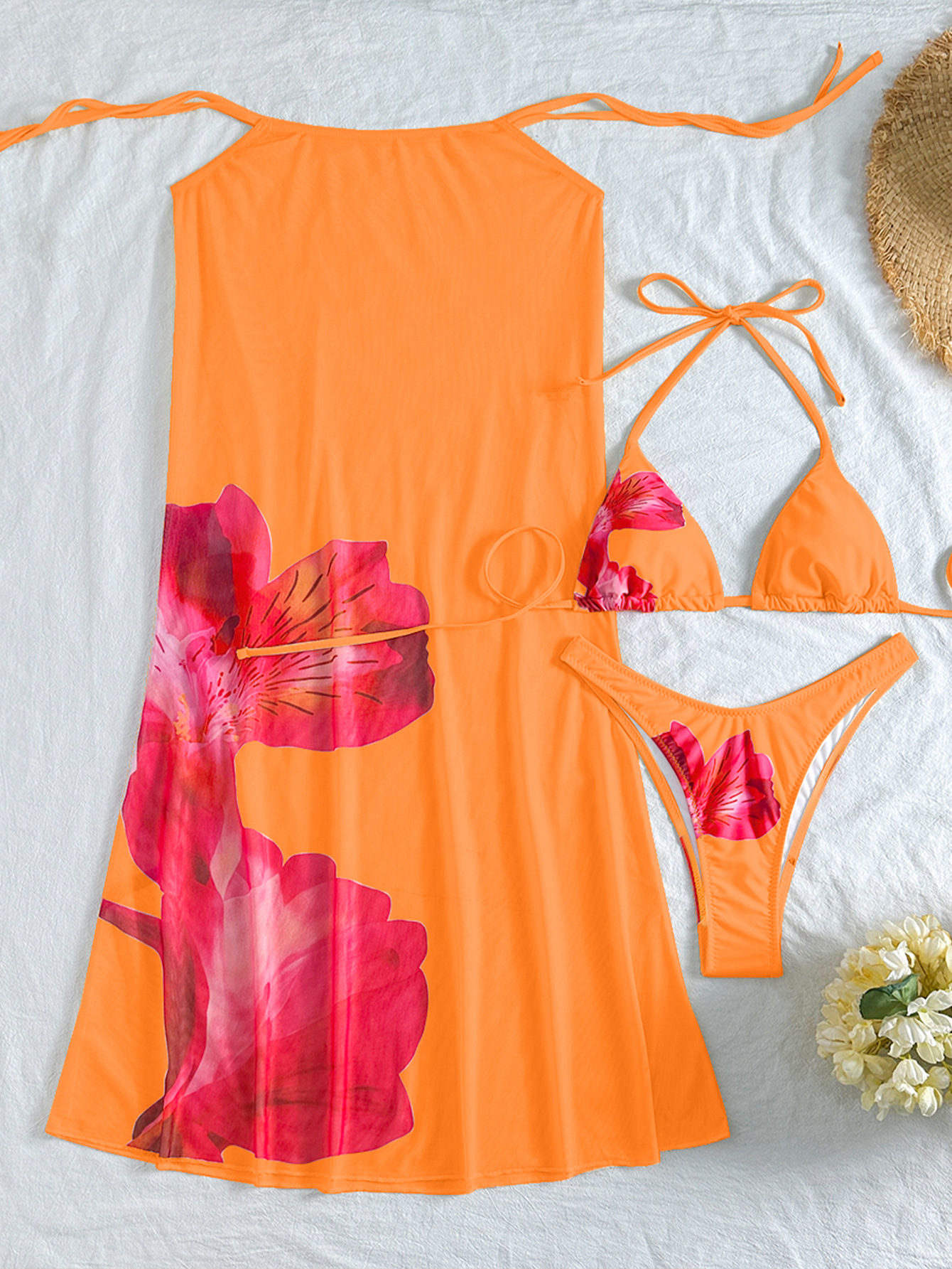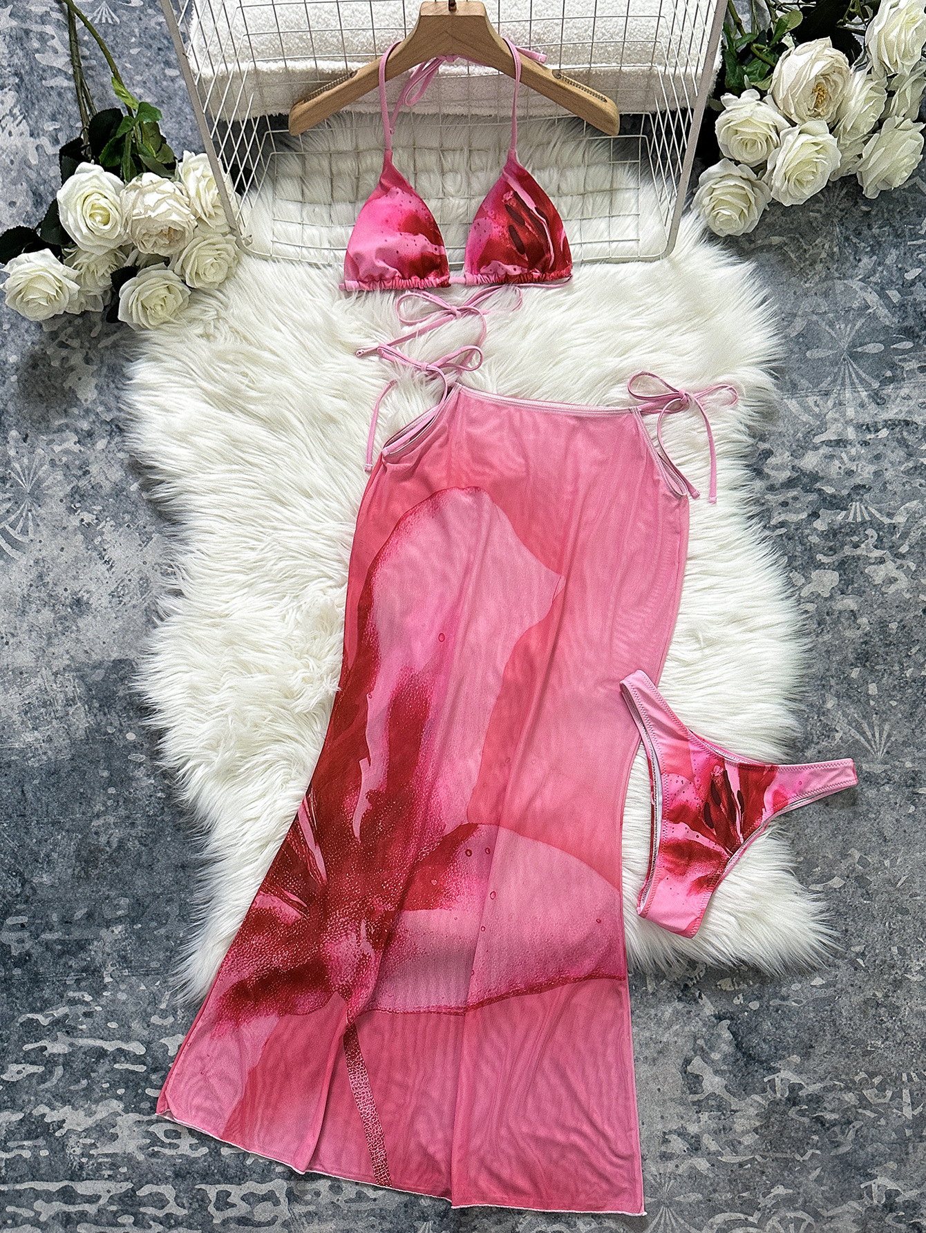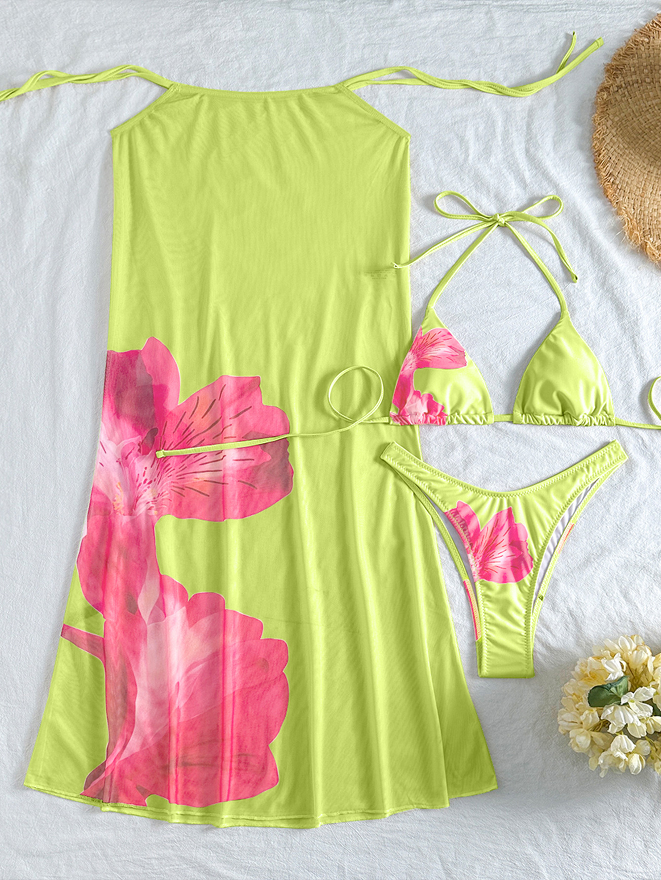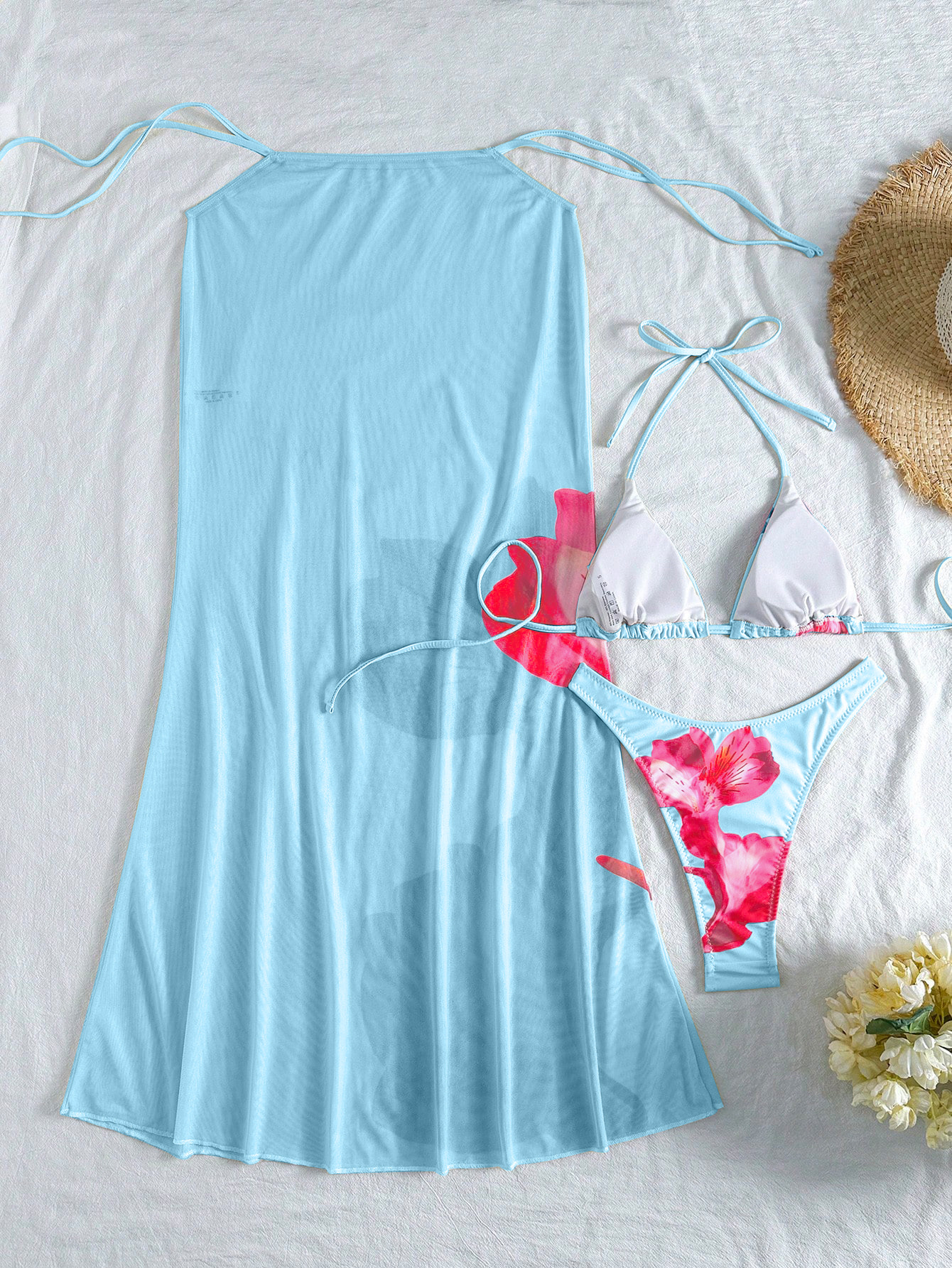 2025 새로운 섹시한 3피스 비키니 수영복 유럽과 미국의 아마존 핫 판매 3점 프린트 수영복