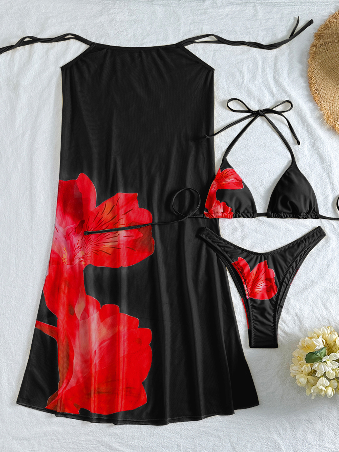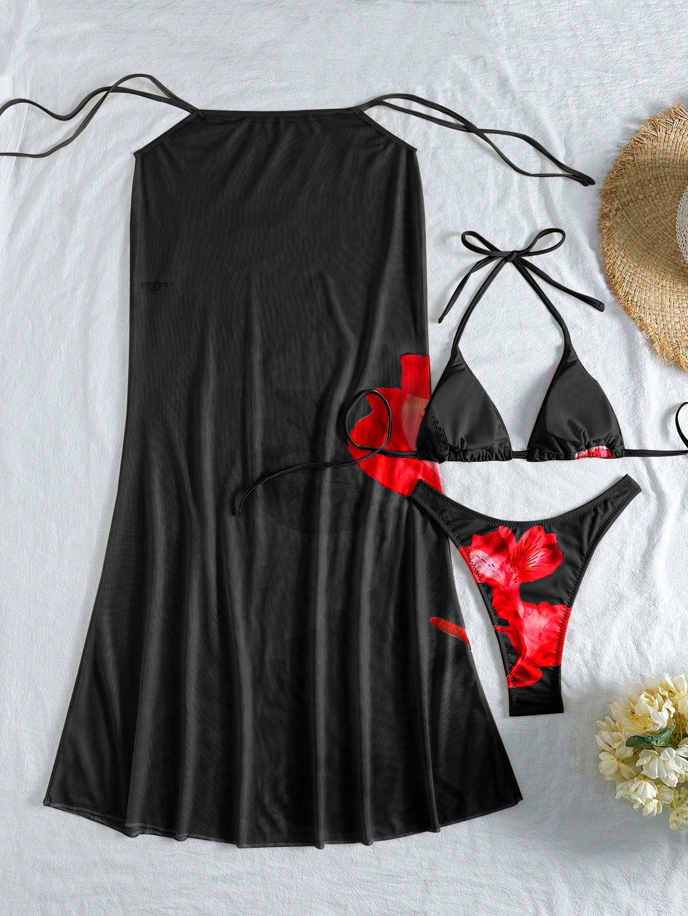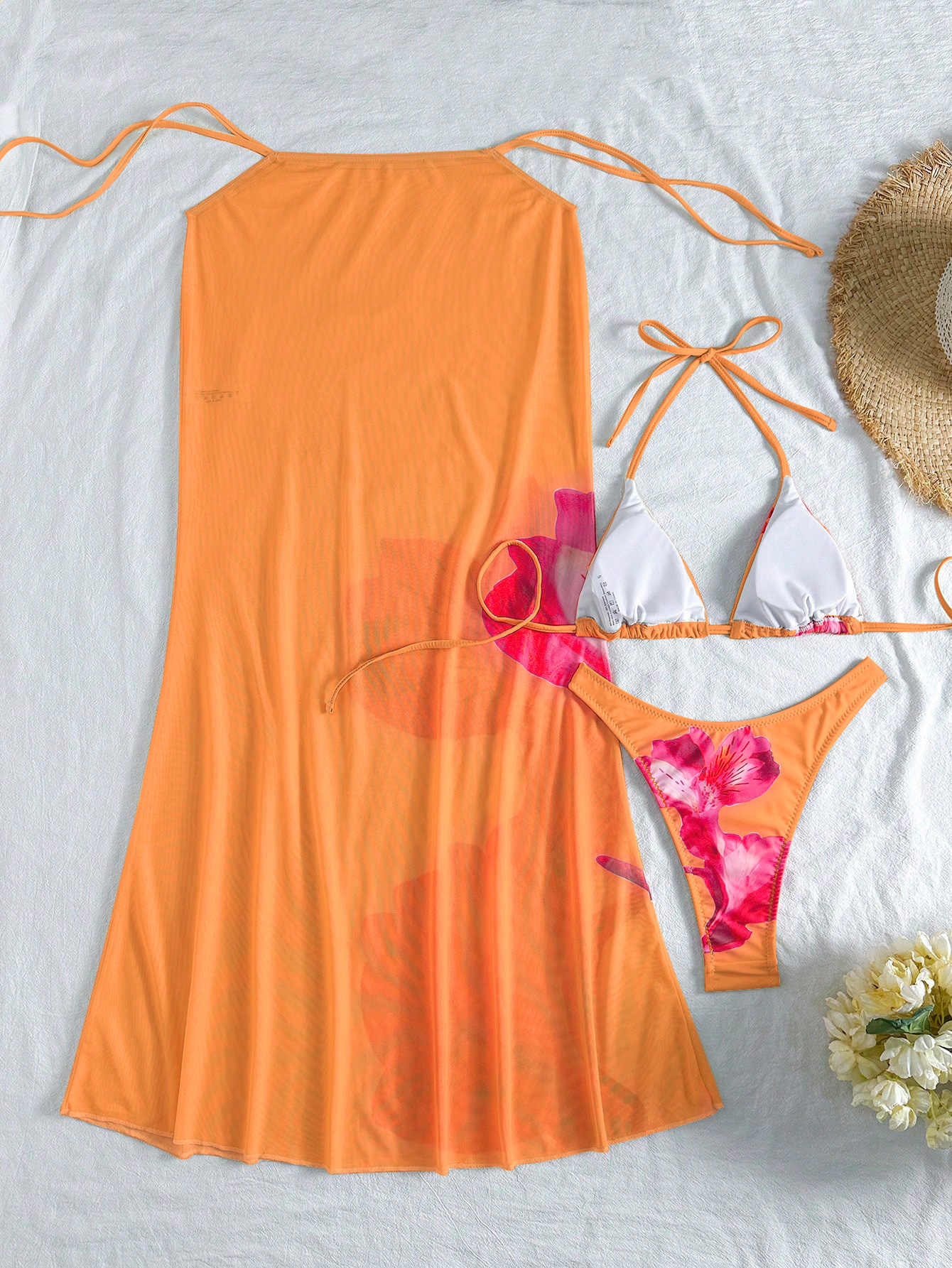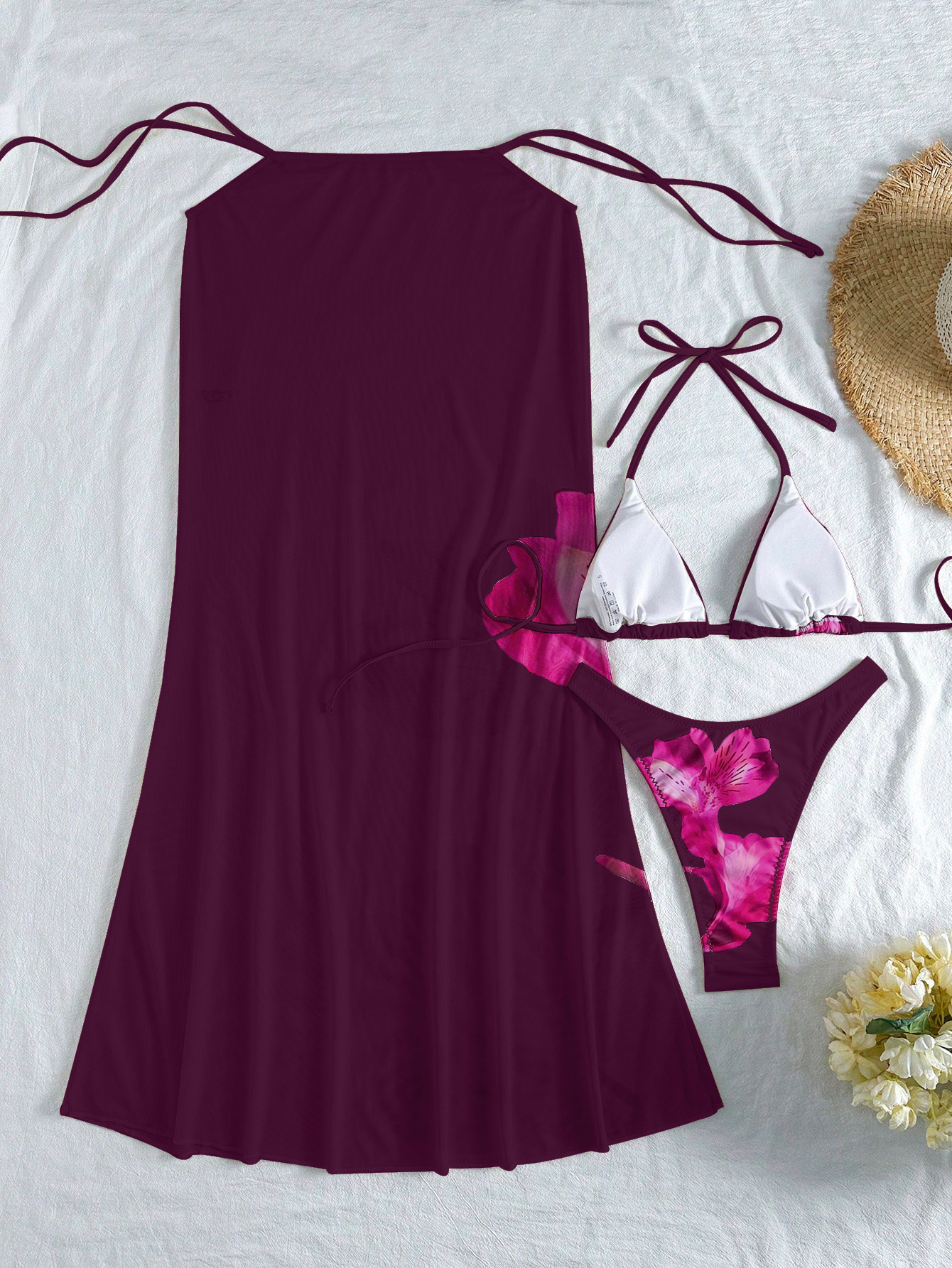 2025 새로운 섹시한 3피스 비키니 수영복 유럽과 미국의 아마존 핫 판매 3점 프린트 수영복