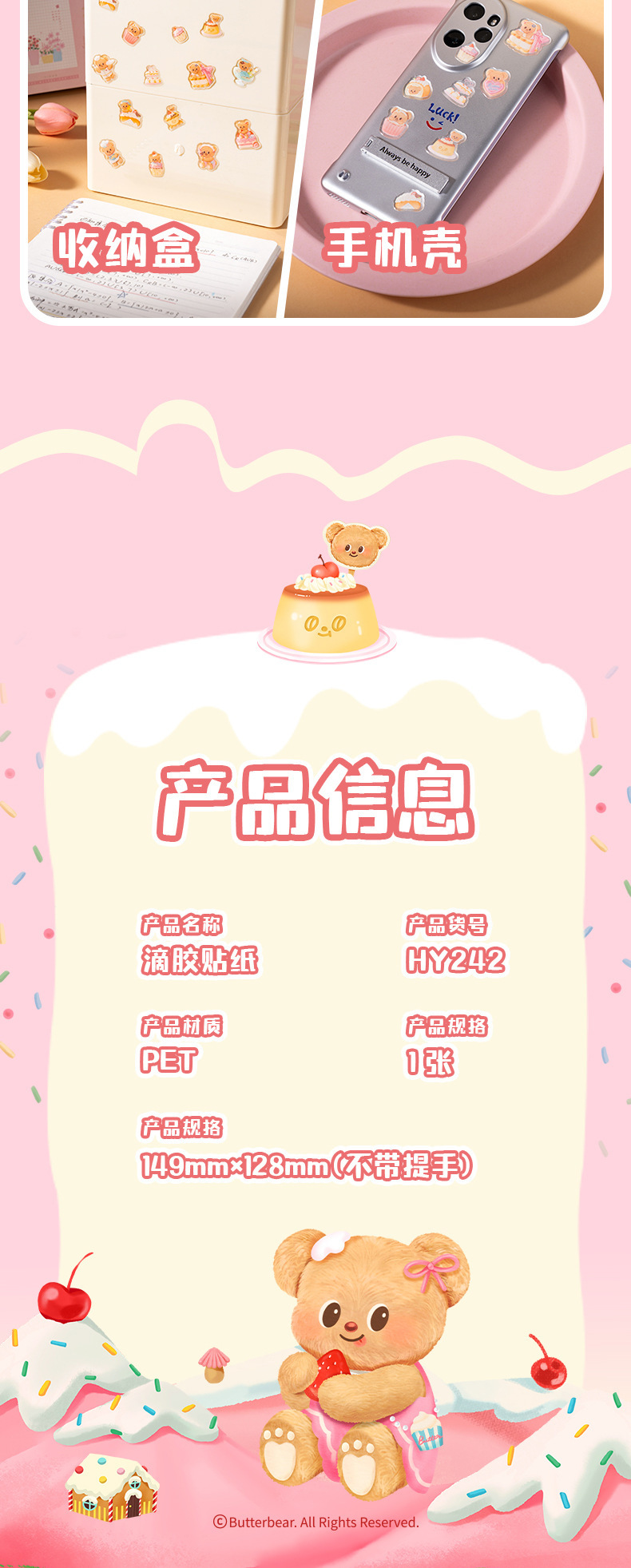 델리 HY242 버터 베어 드롭 접착제 스티커 귀여운 만화 어린이 DIY 케이크 곰 손 책 스티커스토어 가기