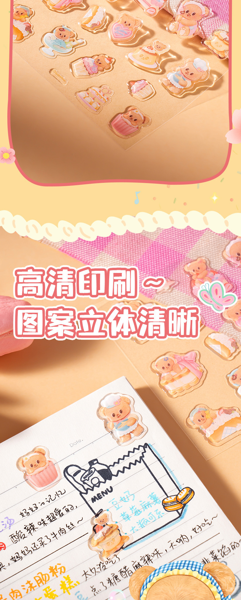 델리 HY242 버터 베어 드롭 접착제 스티커 귀여운 만화 어린이 DIY 케이크 곰 손 책 스티커