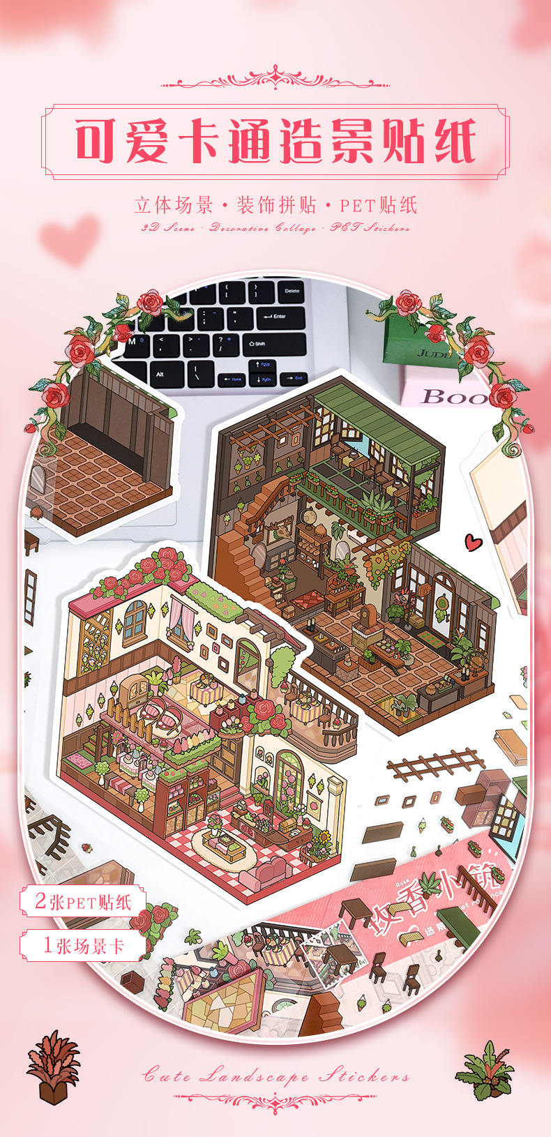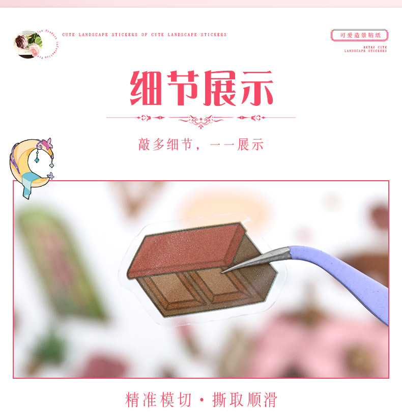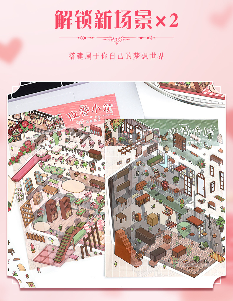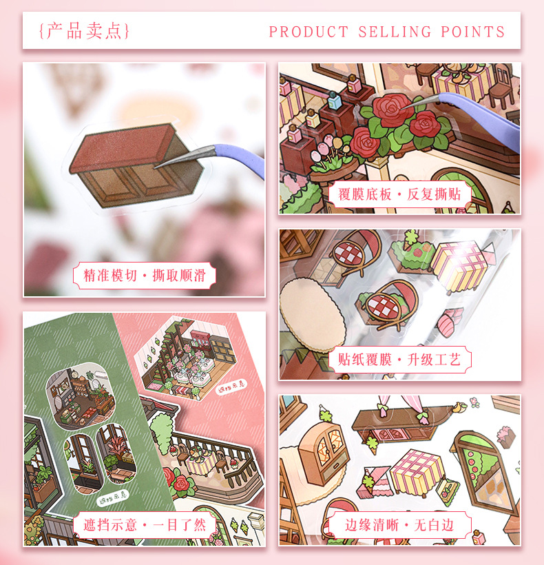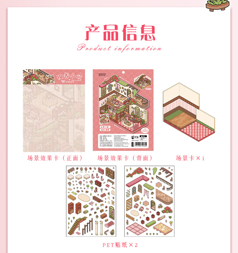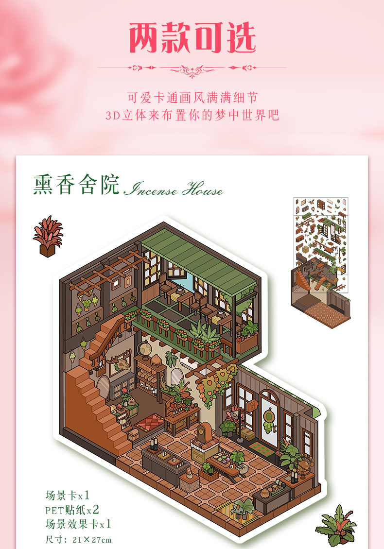 52.0 아트 블루 조경 스티커 대형 3D 3 차원 오두막 장면 콜라주 감압 다이 스택 핸드 계정 스티커스토어 가기