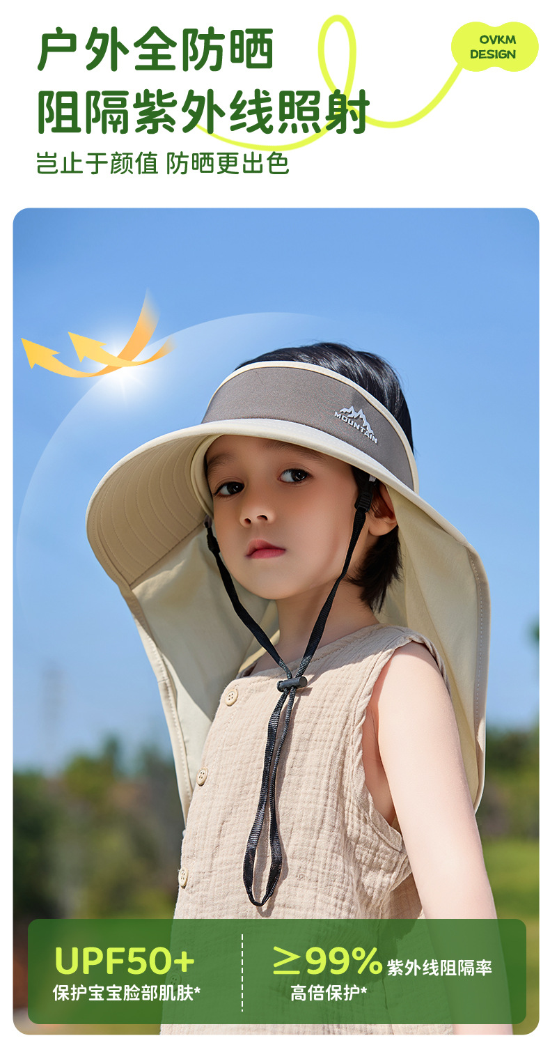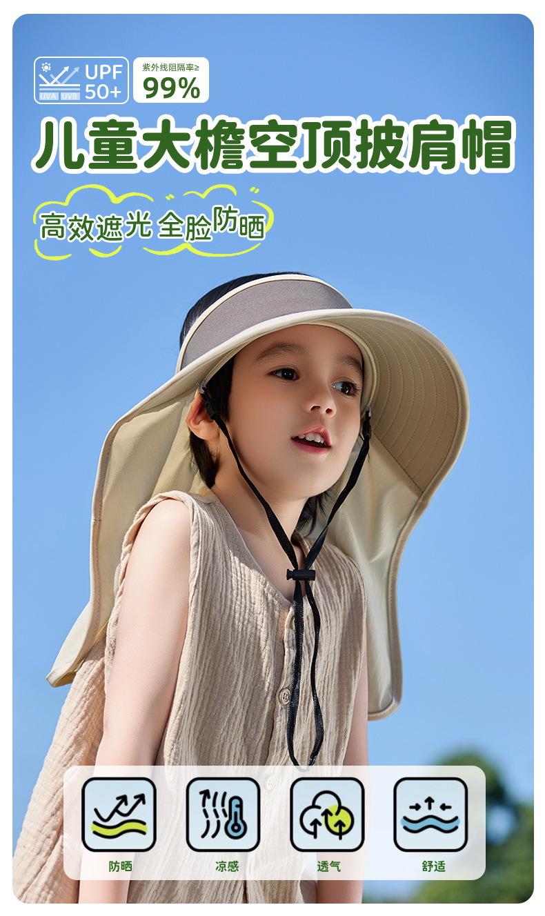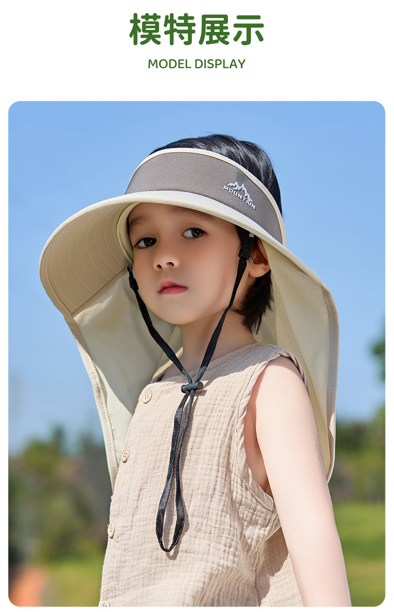 어린이용 자외선 차단 모자, 소년용 여름 자외선 차단 아기용 태양 모자, 소녀용 숄, 빈 탑 태양 모자, 큰 챙