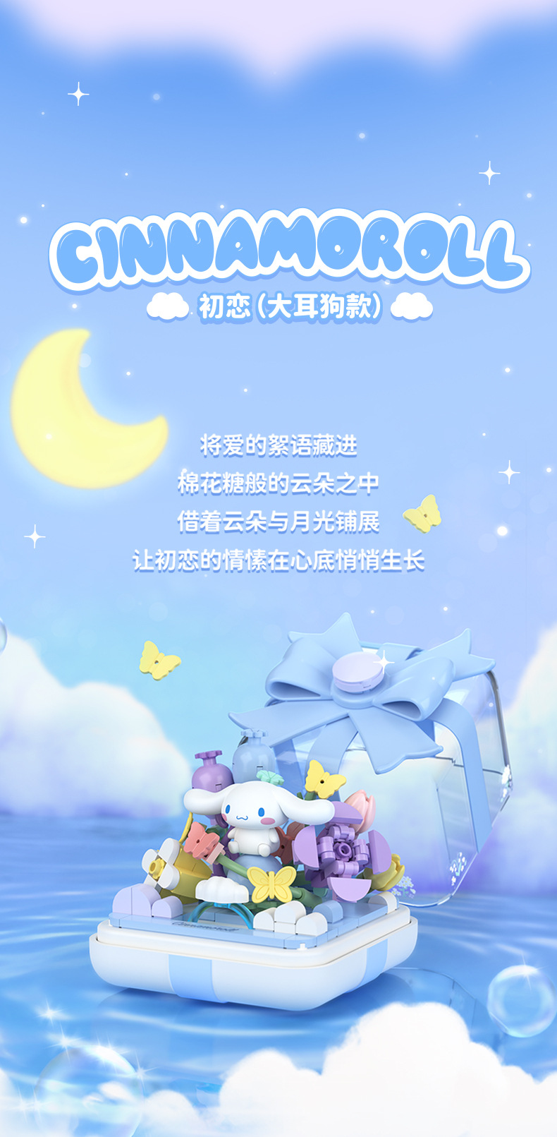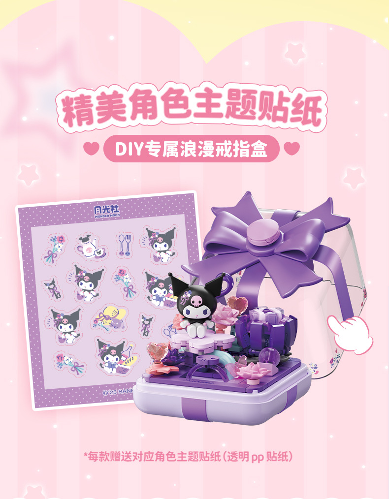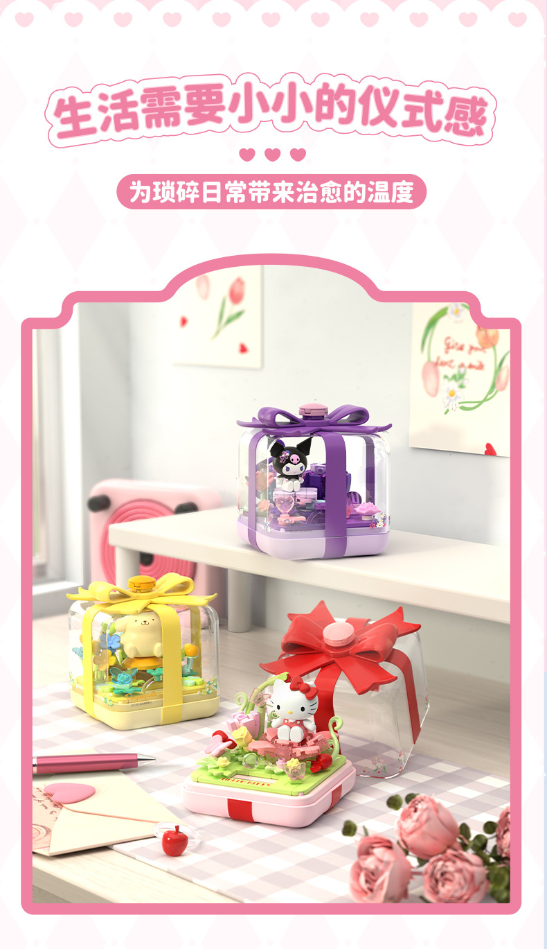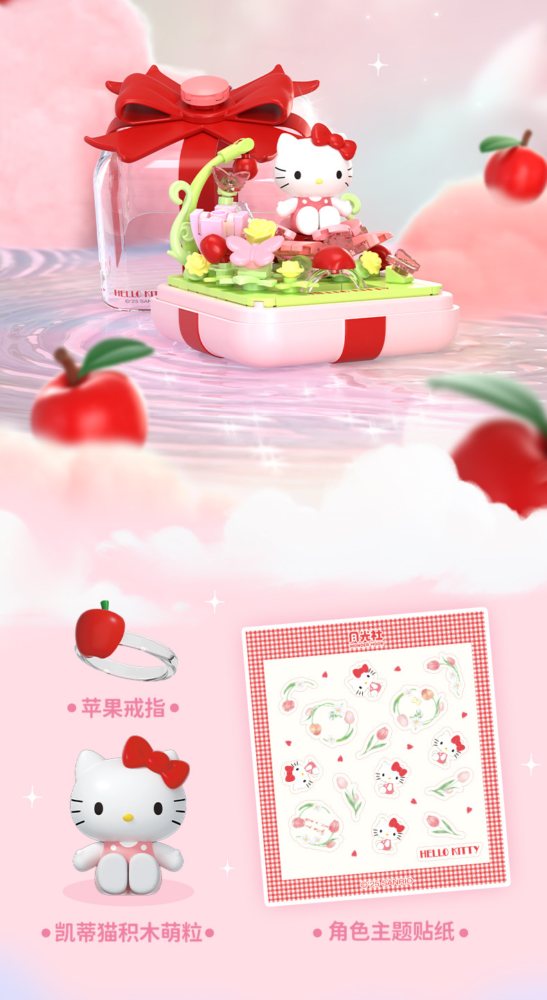 Moonlight Society Sanrio 정품 헬로키티 손가락 끝 빌딩 블록 블라인드 박스 마이크로 입자 삽입 장난감 소녀 선물