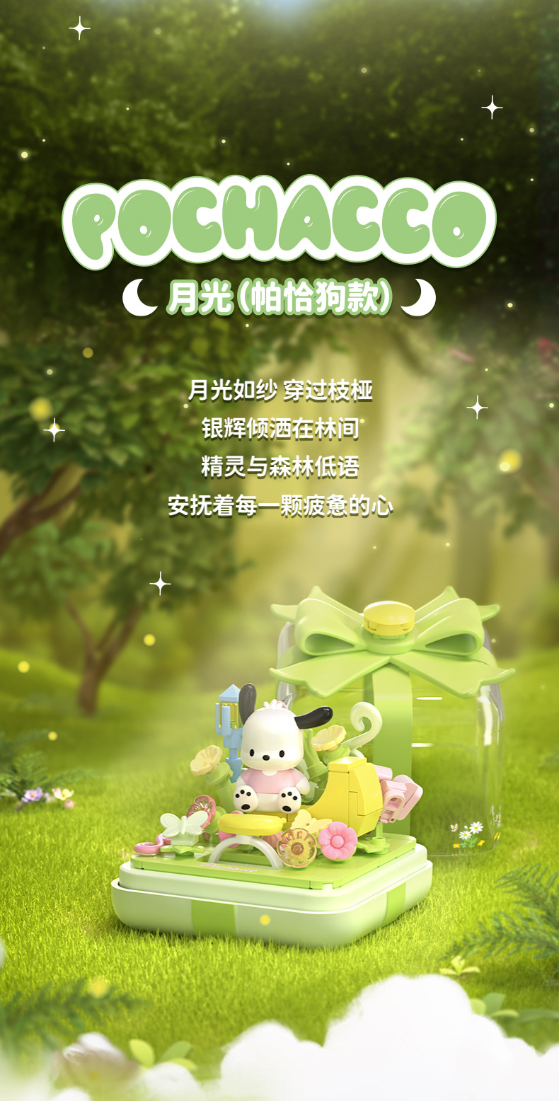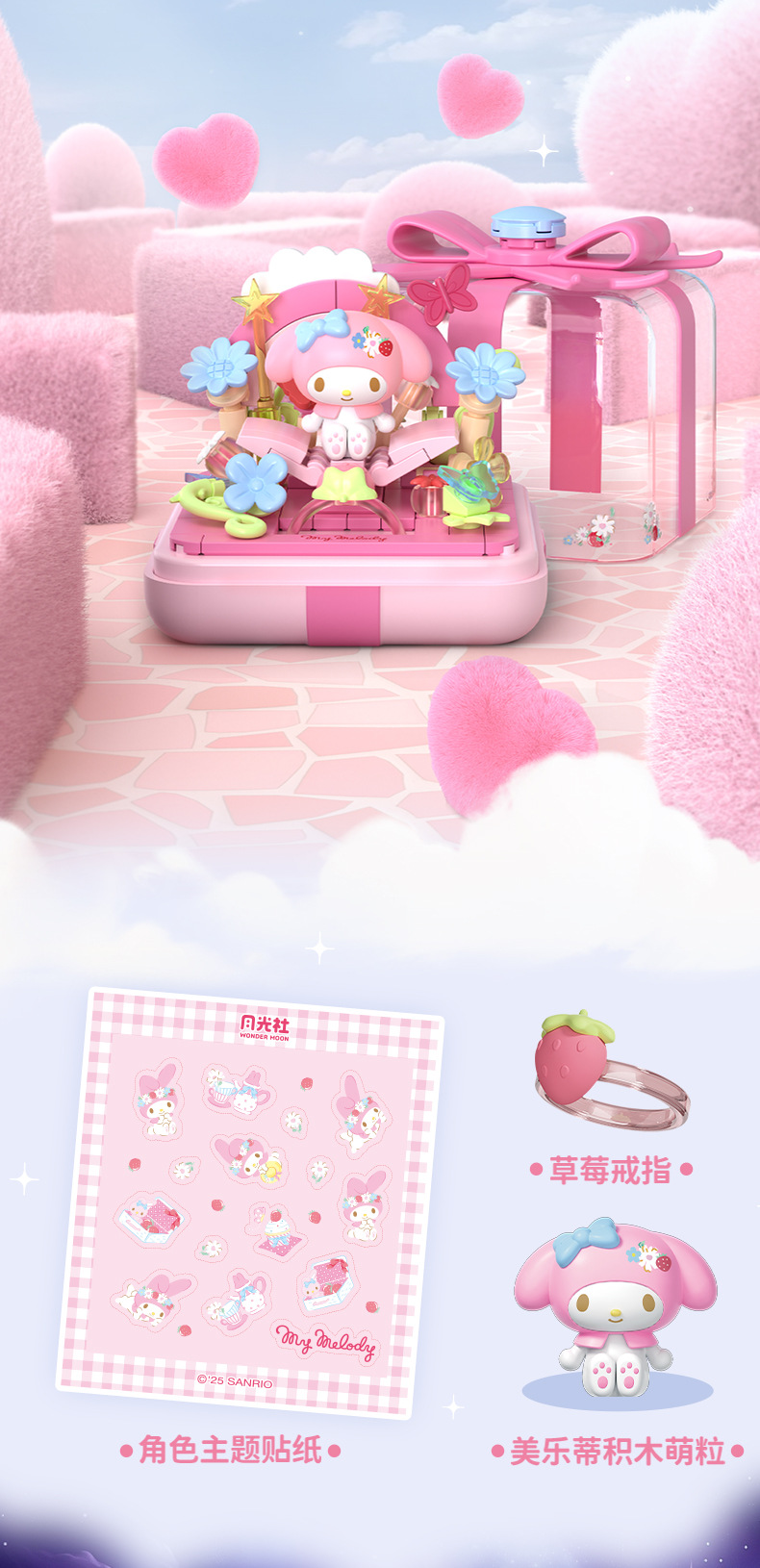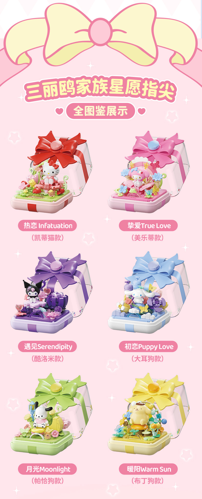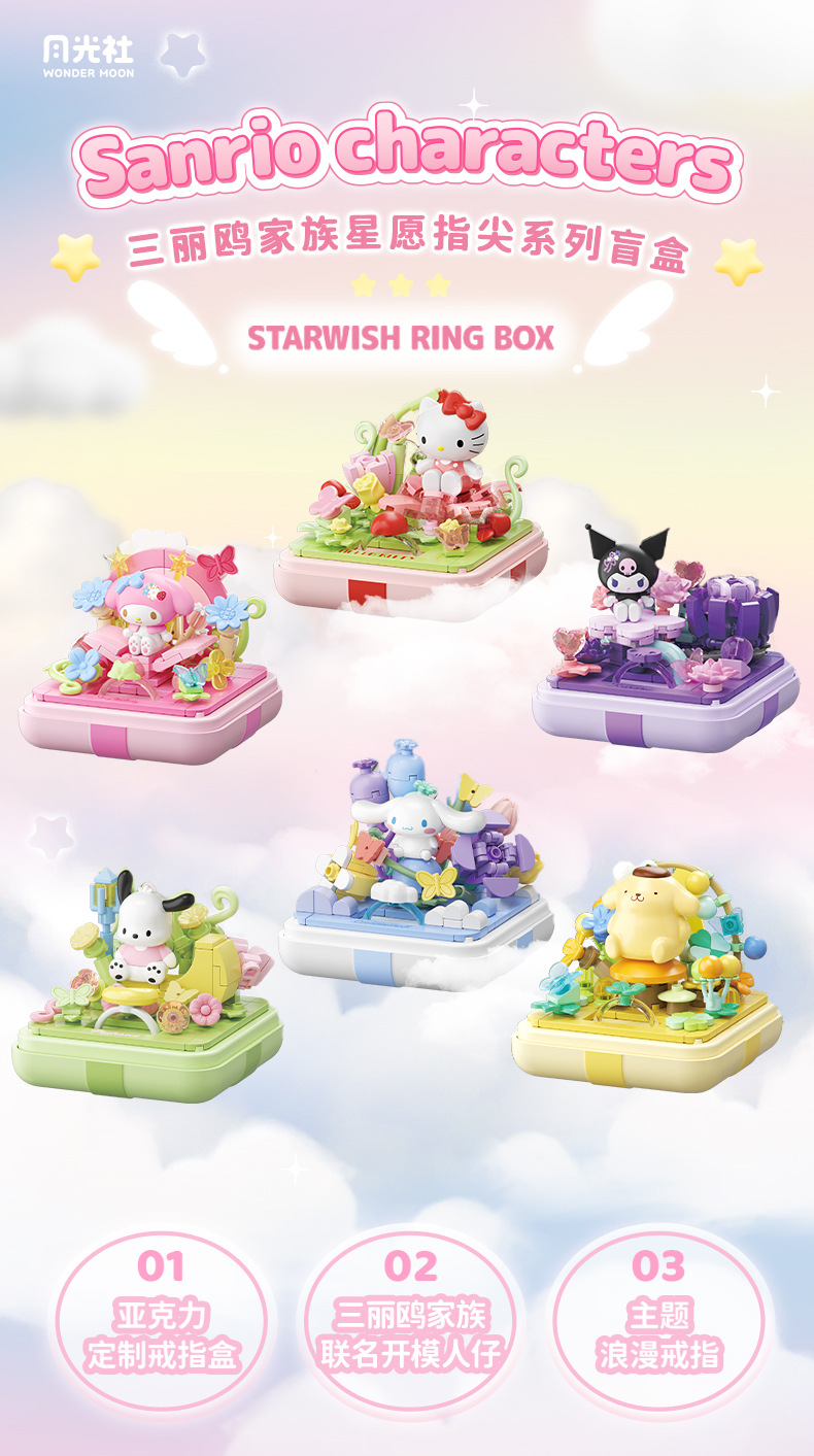 Moonlight Society Sanrio 정품 헬로키티 손가락 끝 빌딩 블록 블라인드 박스 마이크로 입자 삽입 장난감 소녀 선물스토어 가기