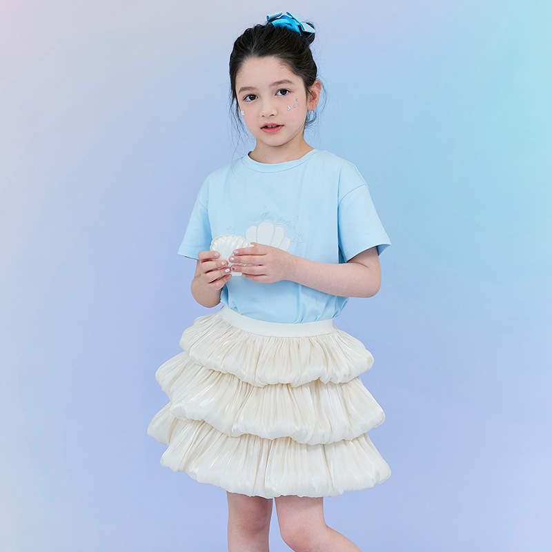 아동복 여름 원피스 소녀의 짧은 치마 어린이 반팔 아기 소녀 케이크 베일 원피스 티셔츠 스타일리제 소녀 공주 원피스 세트