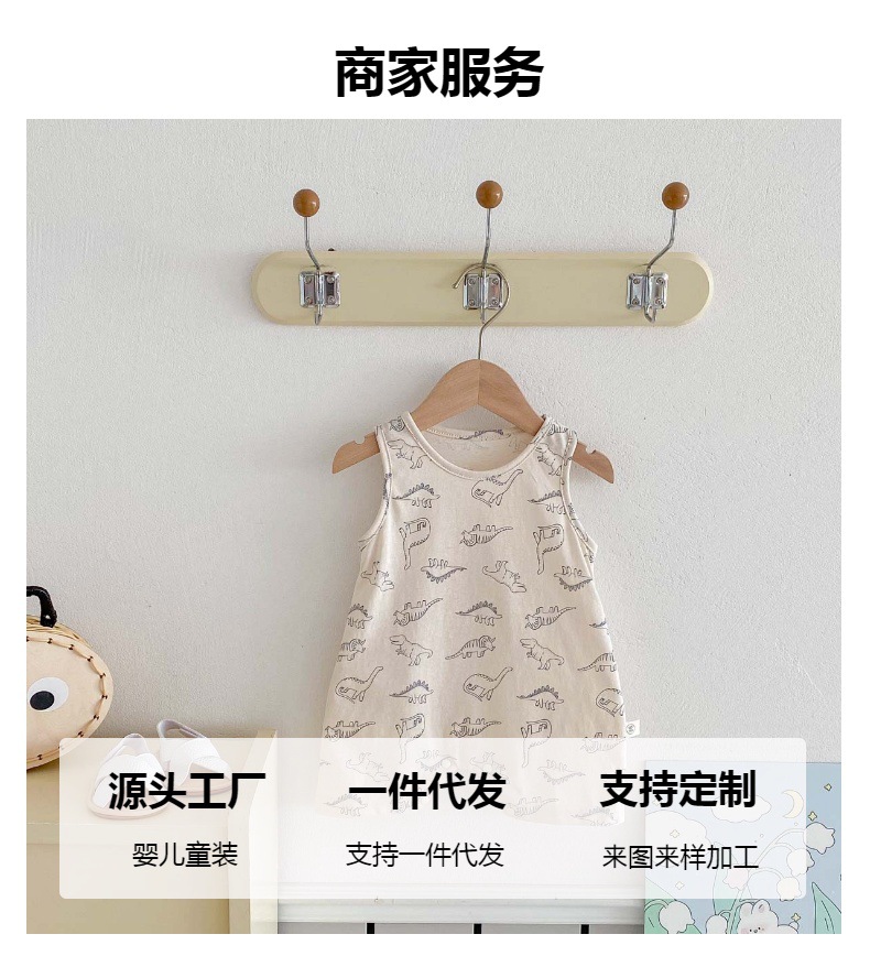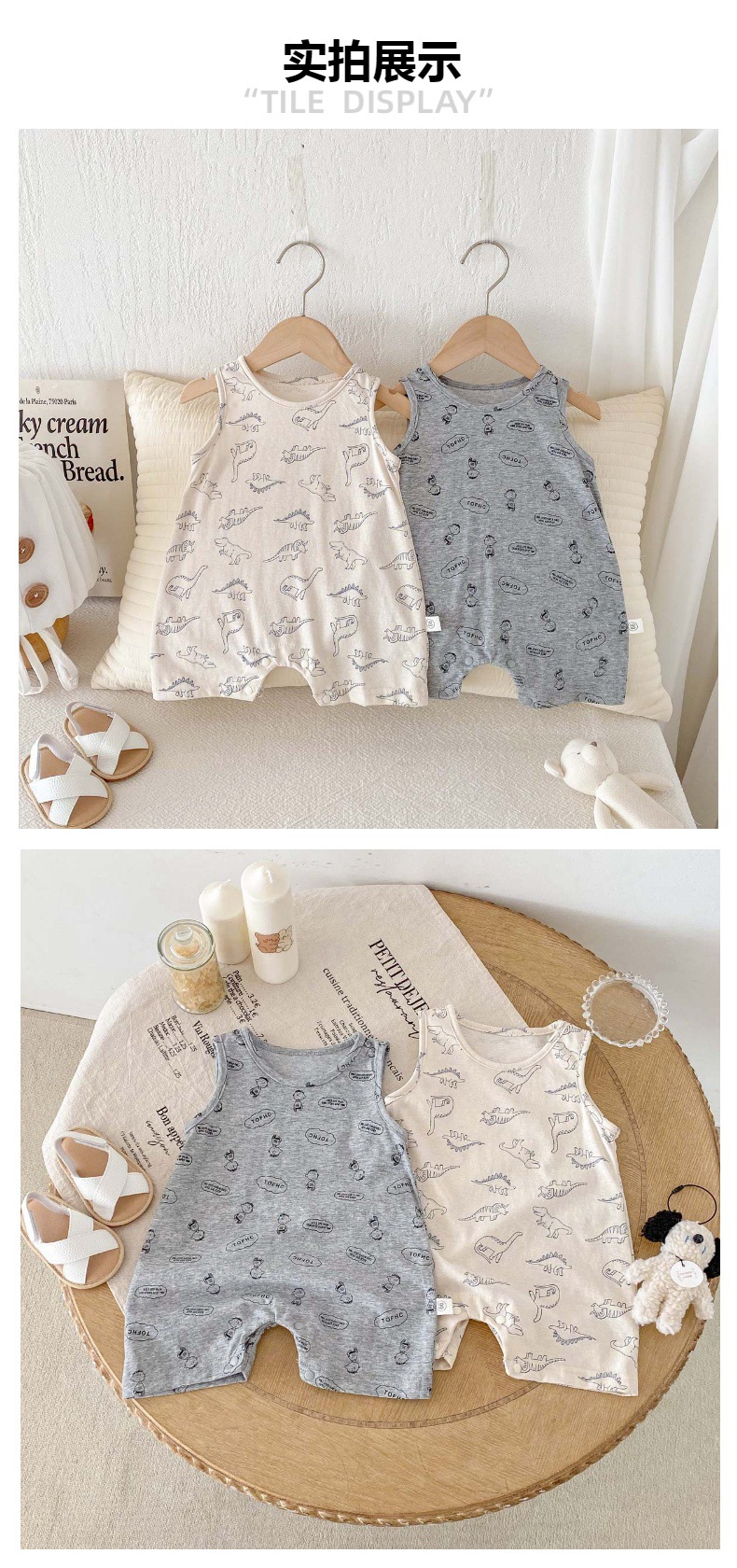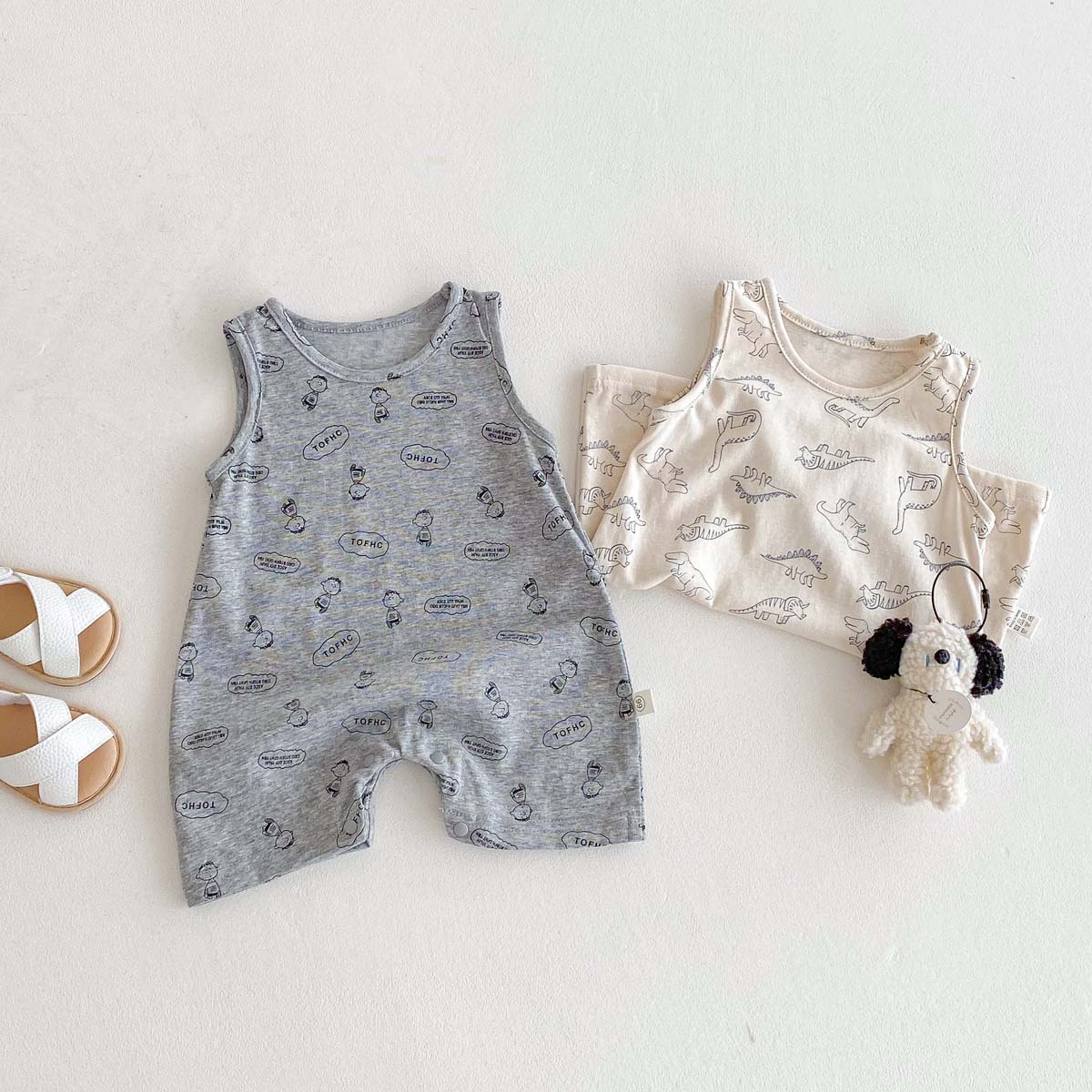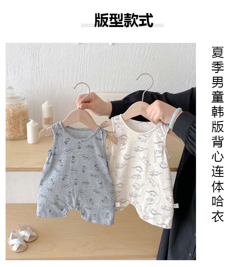 남자 아기 여름 새로운 유아 만화 공룡 민소매 등반 옷 어린이 조끼 포장 옷스토어 가기