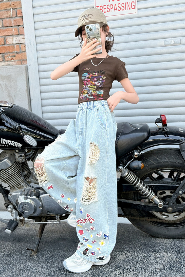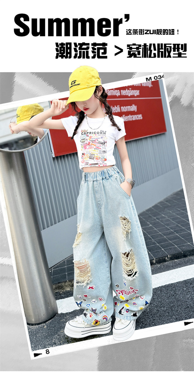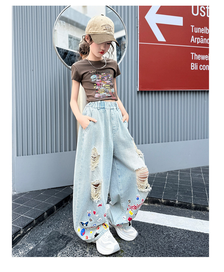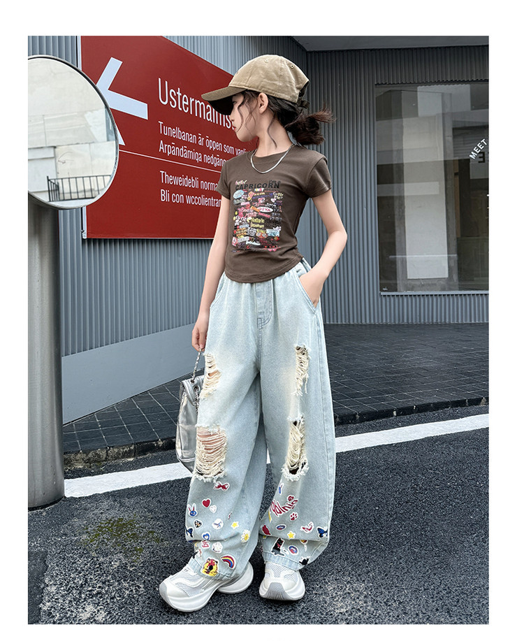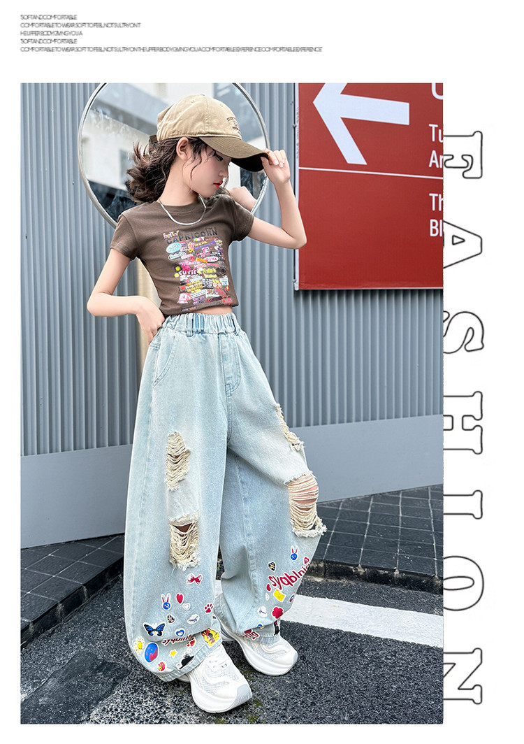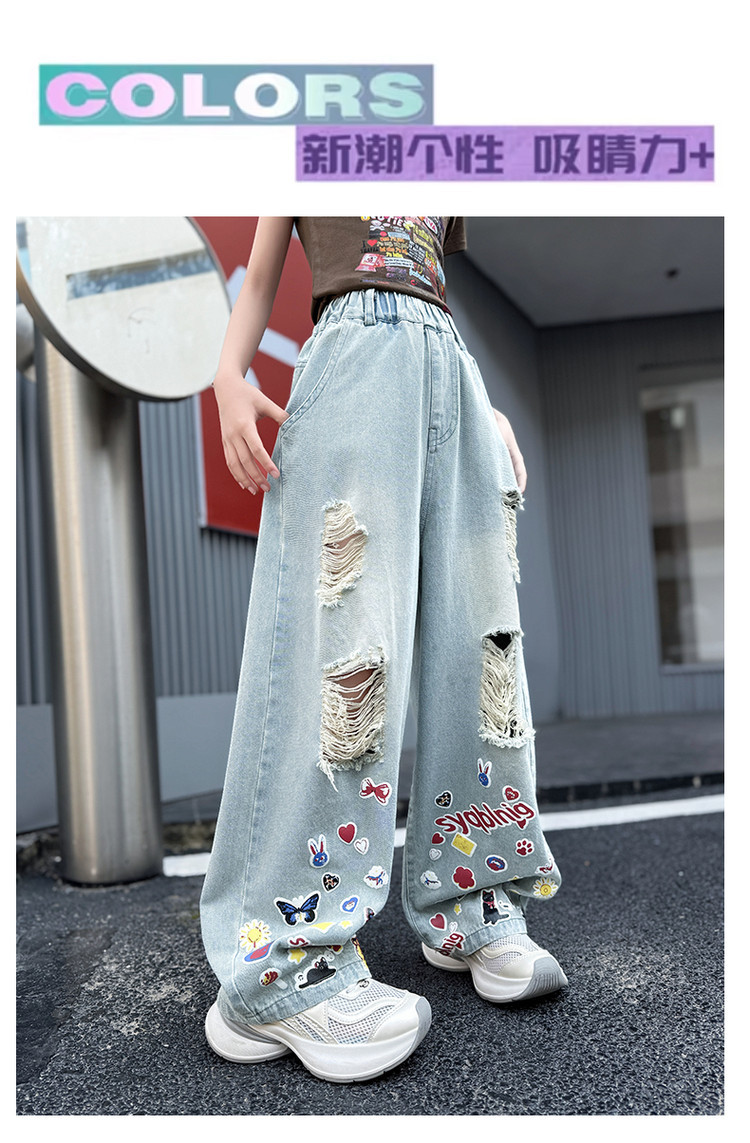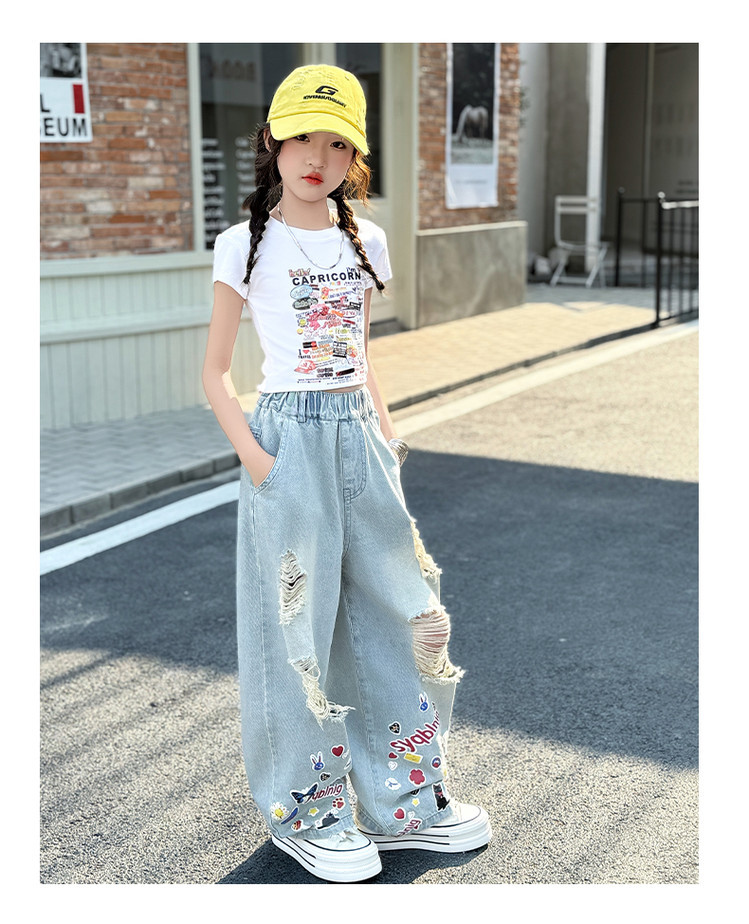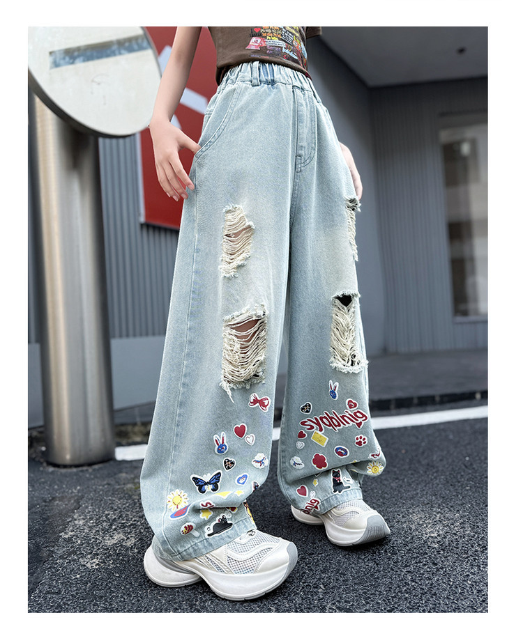 소녀 바지 여름 얇은 2025 새로운 도착 여름 원피스 미드 빅 키즈 스타일 느슨한 어린이 트렌디 한 청바지스토어 가기