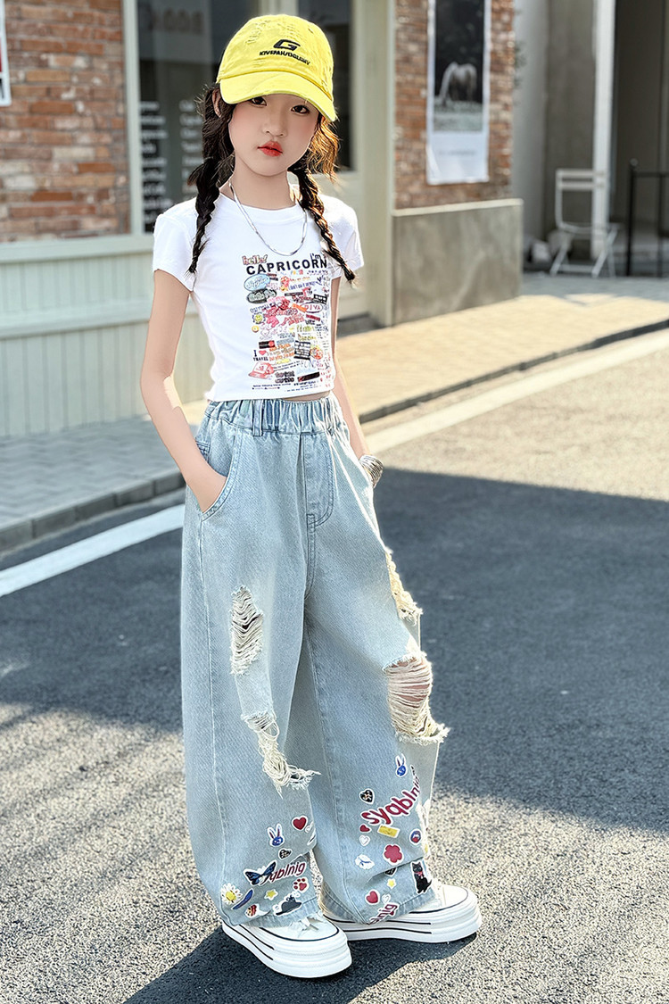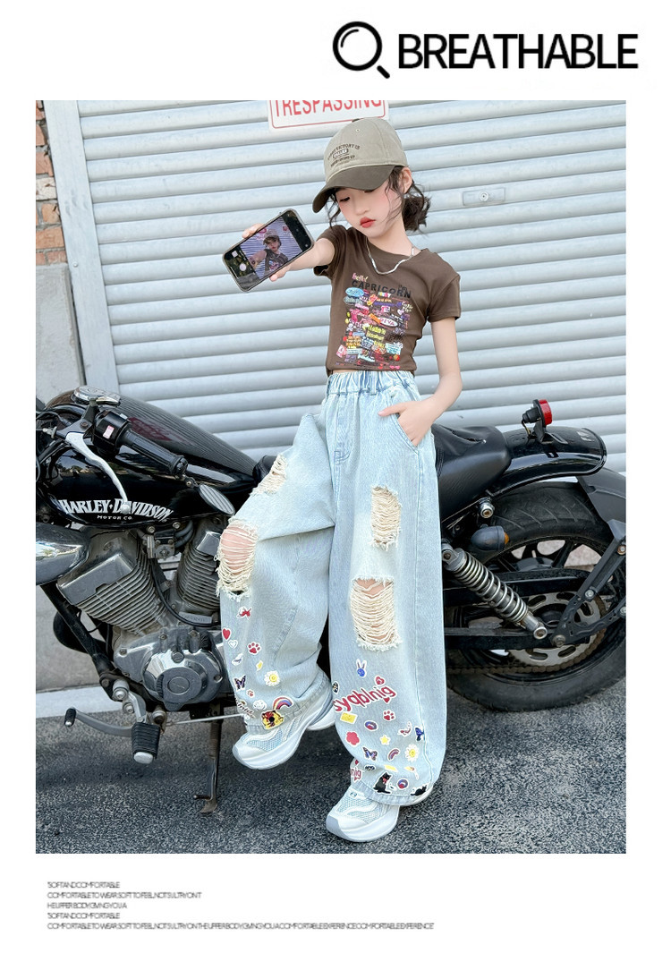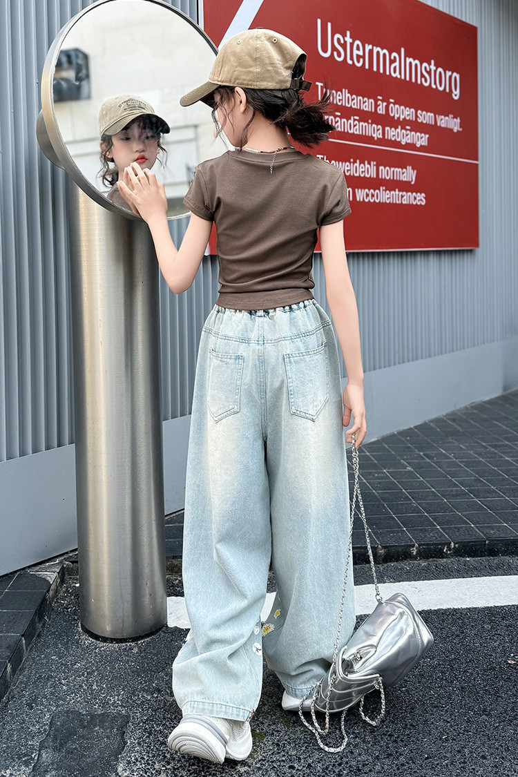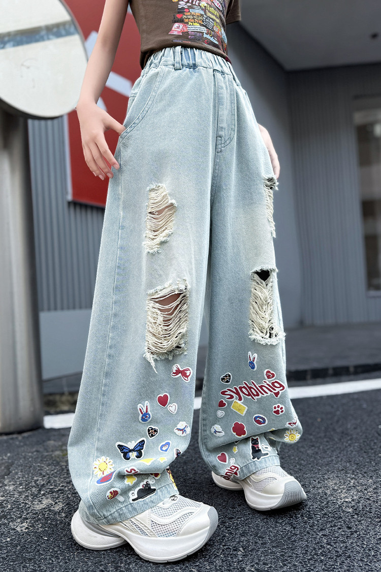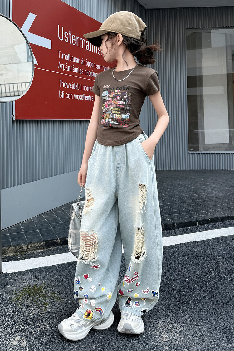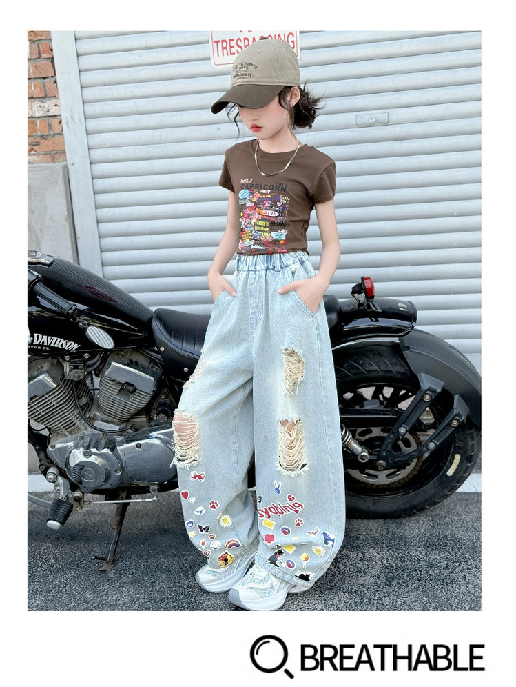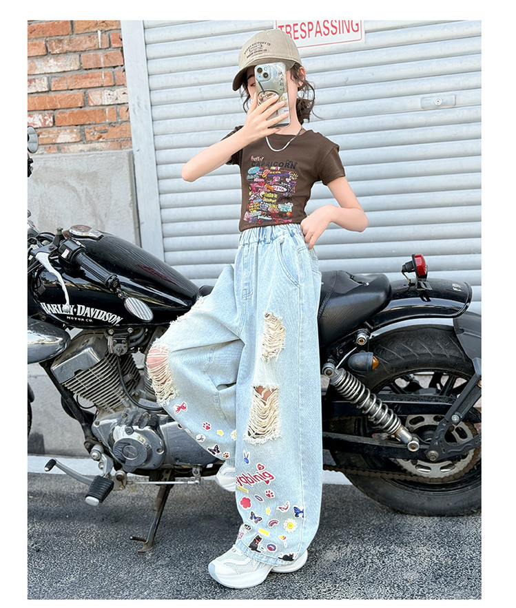 소녀 바지 여름 얇은 2025 새로운 도착 여름 원피스 미드 빅 키즈 스타일 느슨한 어린이 트렌디 한 청바지스토어 가기