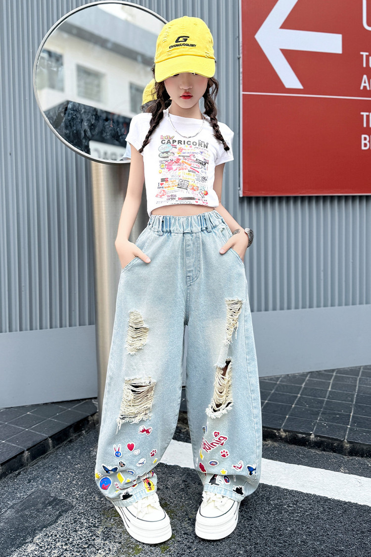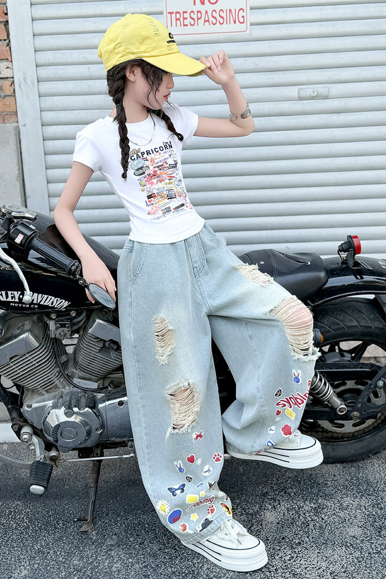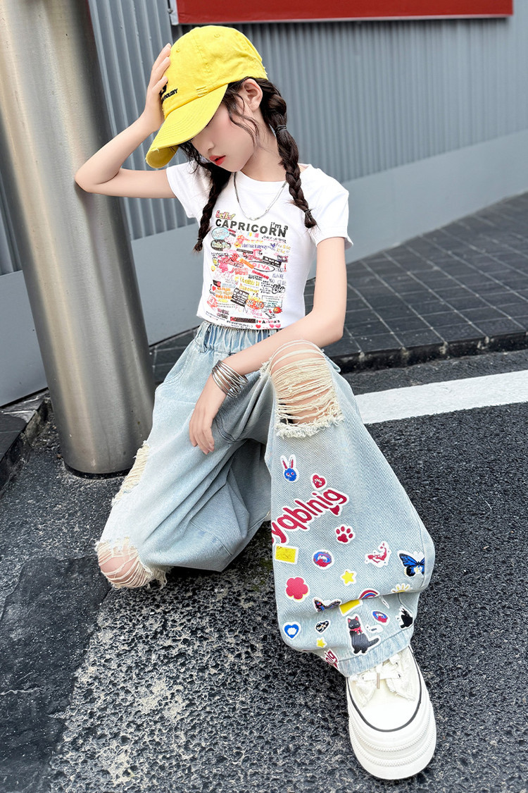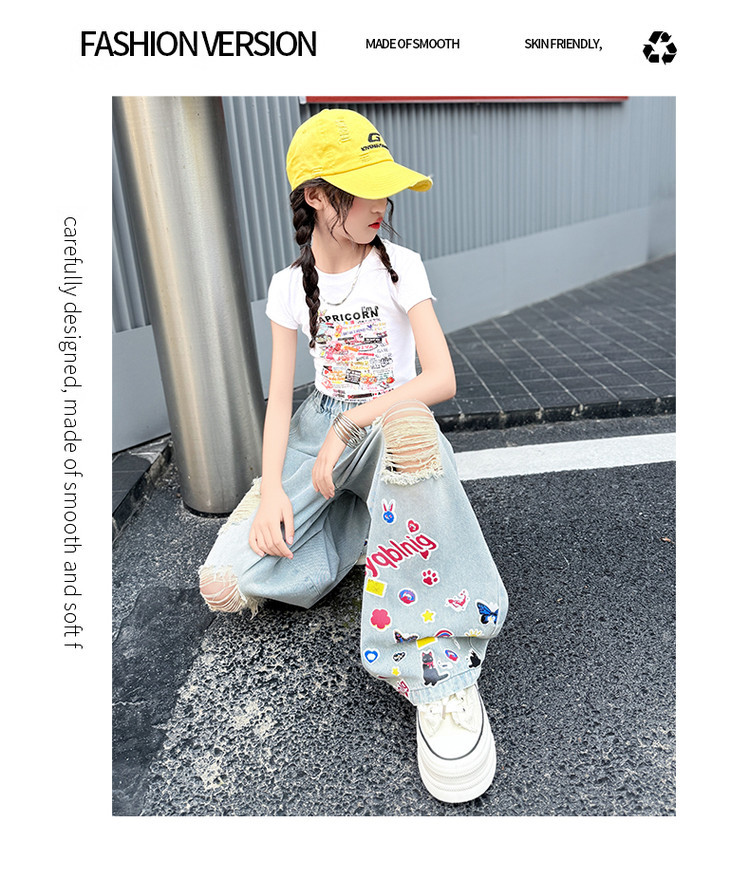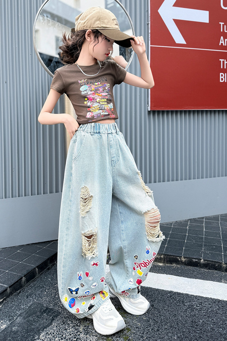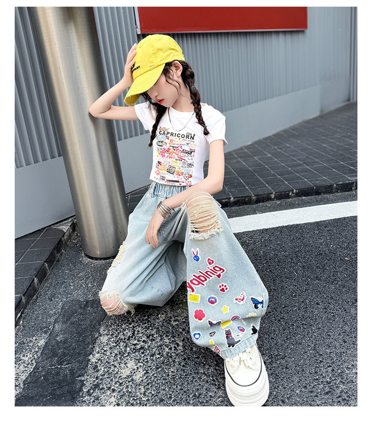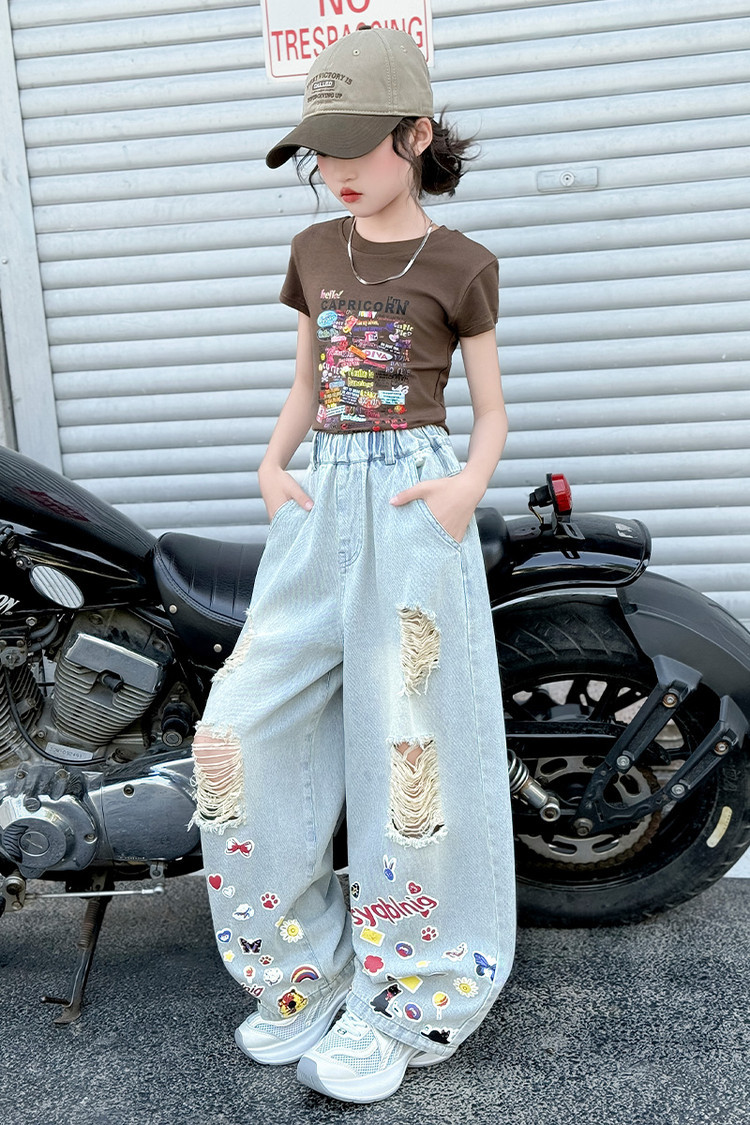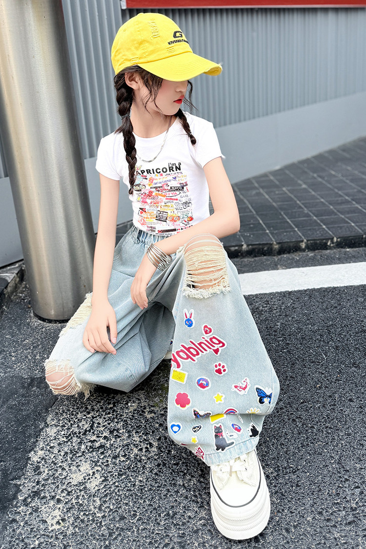 소녀 바지 여름 얇은 2025 새로운 도착 여름 원피스 미드 빅 키즈 스타일 느슨한 어린이 트렌디 한 청바지스토어 가기
