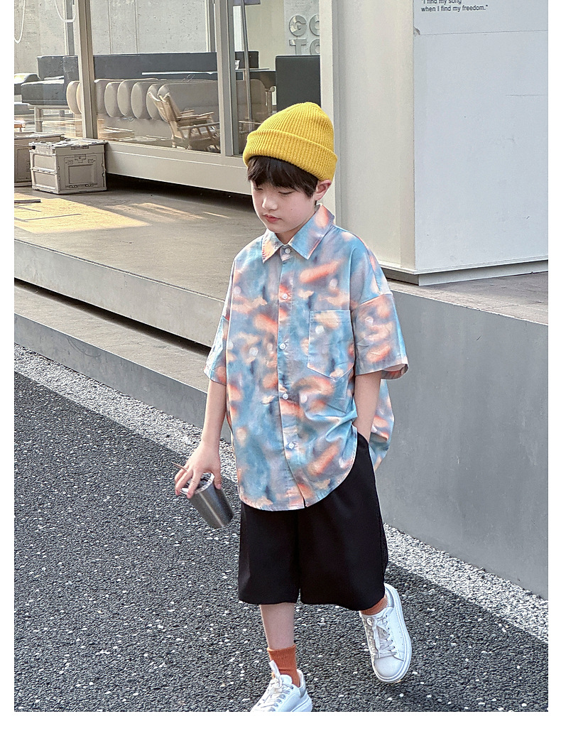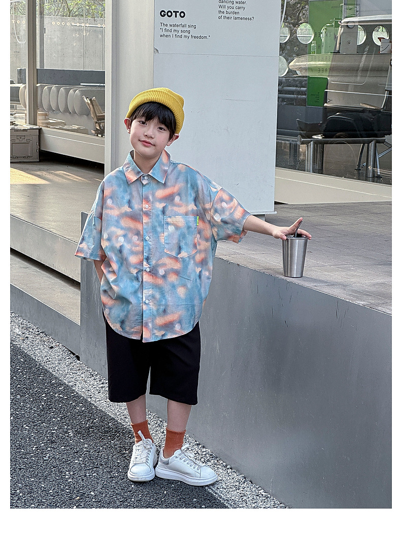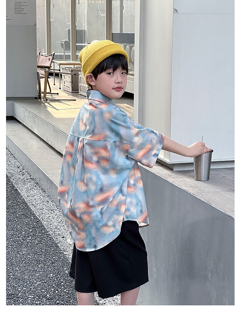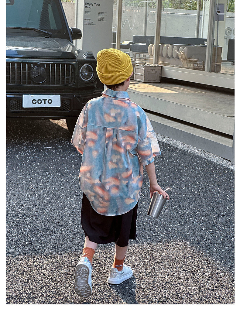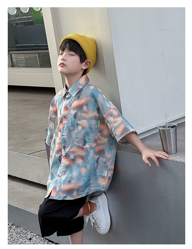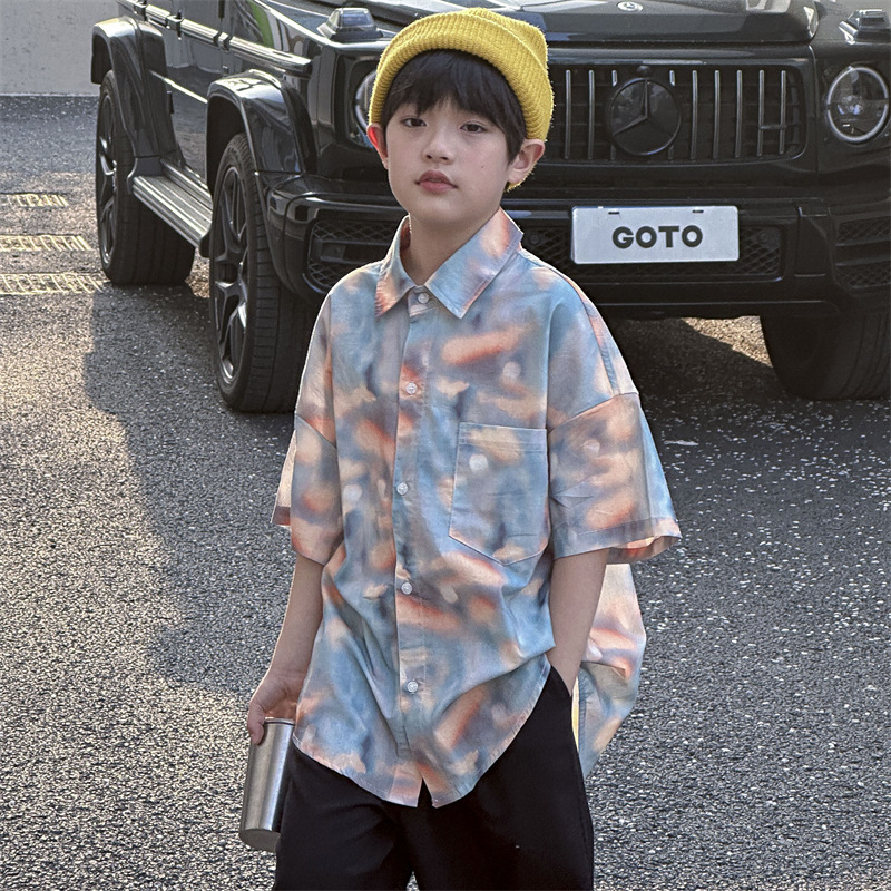 Panda Yuanyuan 2025 여름 새 소년 반팔 셔츠 면 어린이 여름 최고 중 큰 어린이 셔츠스토어 가기