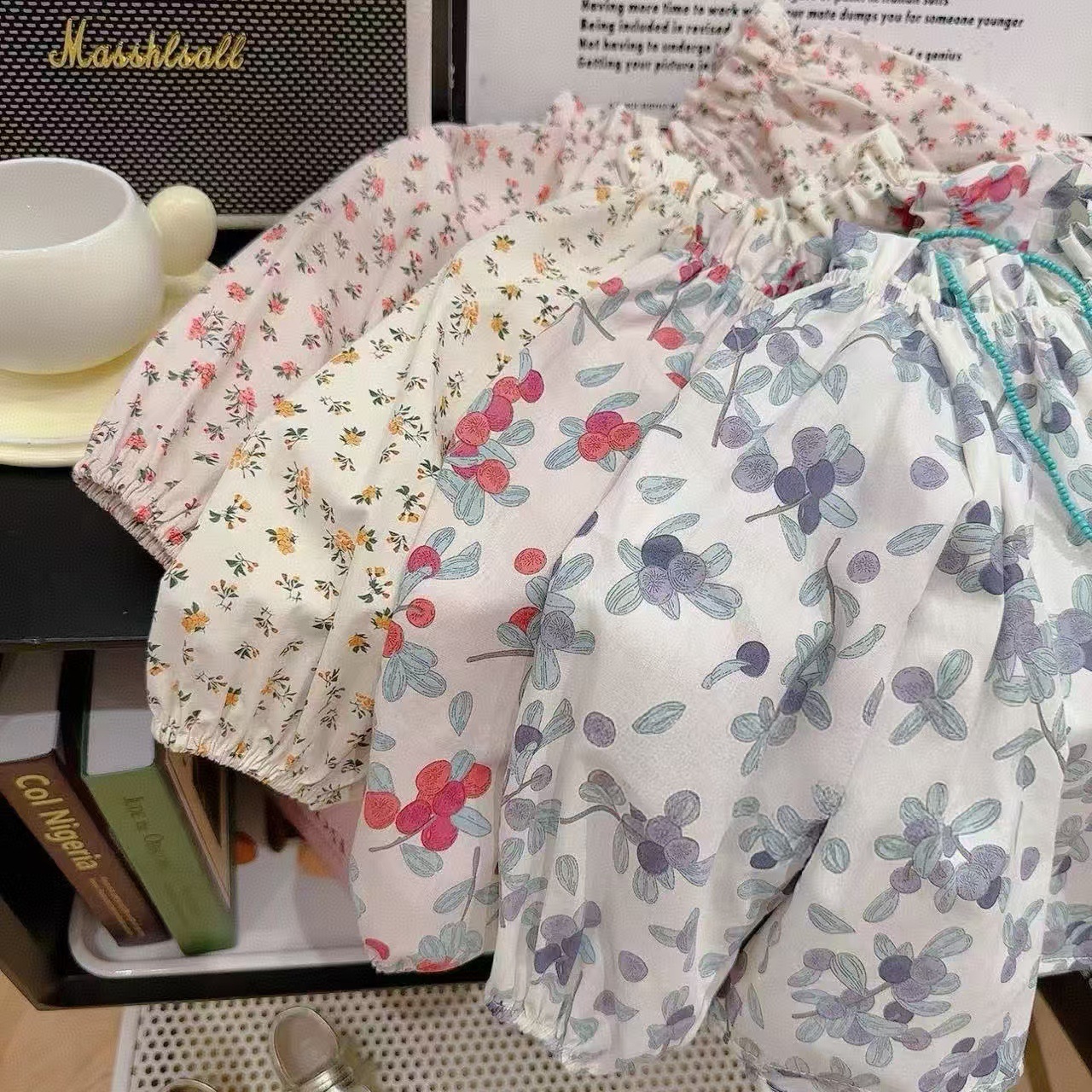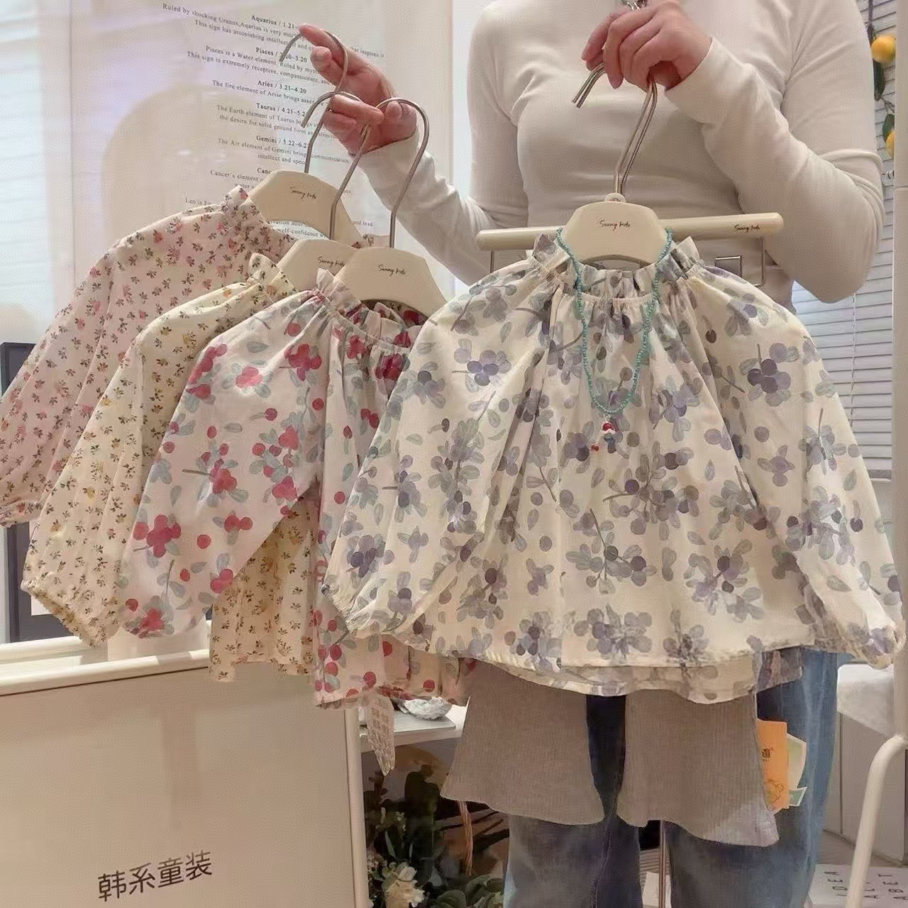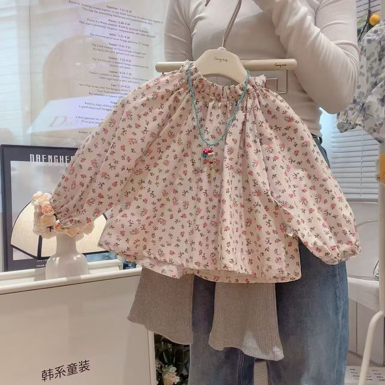 아기 소녀 셔츠 꽃 인형 셔츠 2025 봄 새 여자 탑 목가적 인 스타일 셔츠스토어 가기